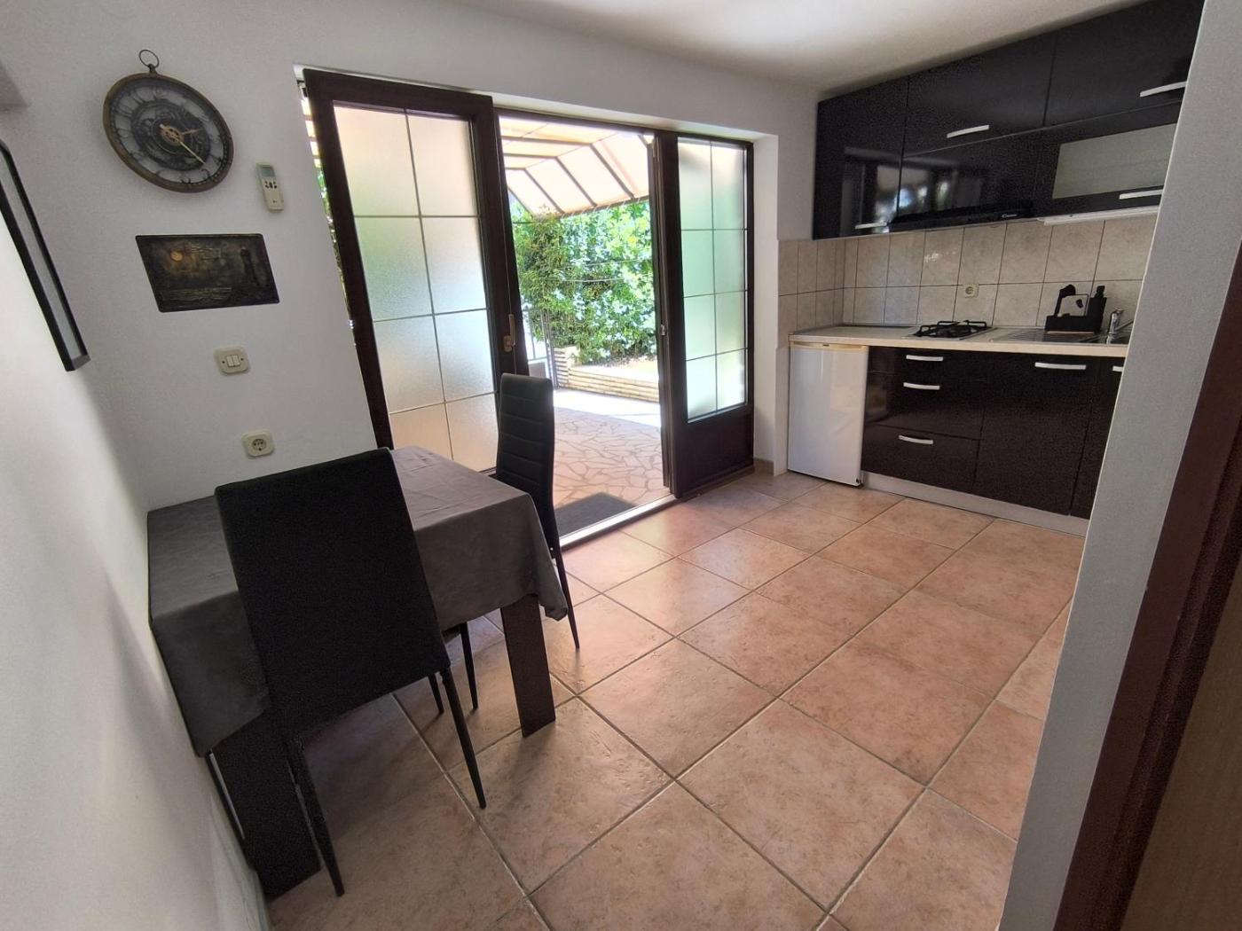 One-Bedroom Apartment. Featuring a private entrance, this air-conditioned apartment is comprised of a kitchen, 1 bedroom and 1 bathroom with a shower and a hairdryer. Guests will find a stovetop, a refrigerator and kitchenware in the kitchen. The apartment also has a barbecue. Boasting a terrace with garden views, this apartment also offers a tea and coffee maker and a flat-screen TV. The unit offers 1 bed.