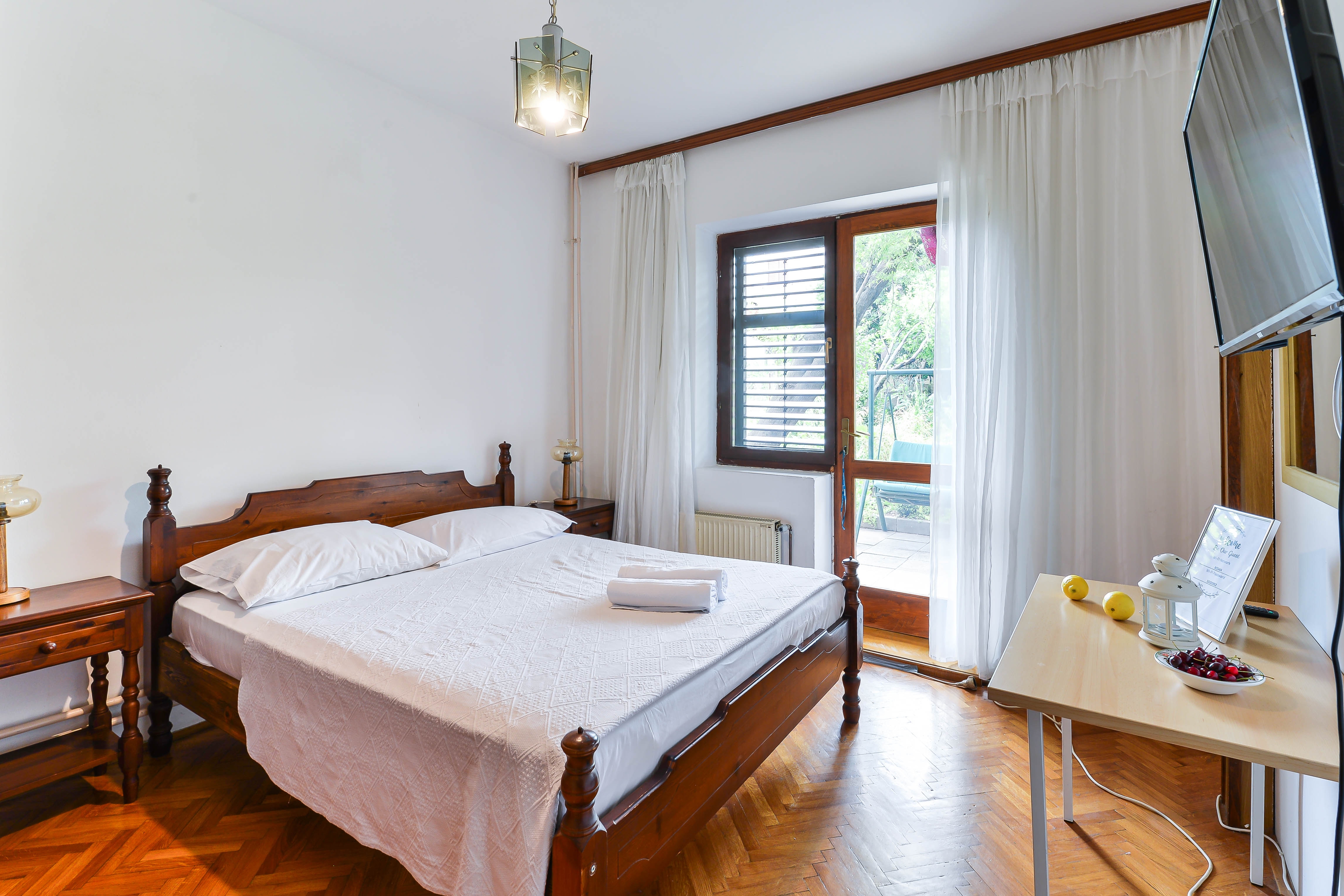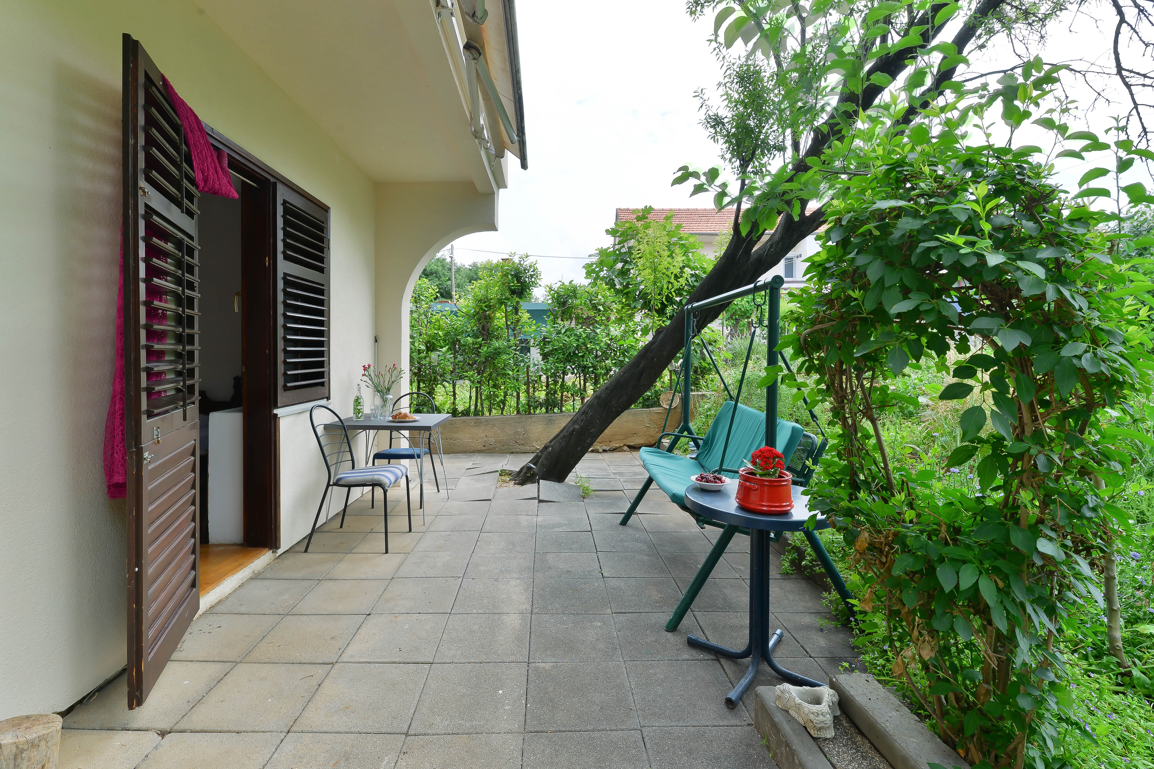 Apartment can accommodate 2 guests. Beds are situated in 1 sleeping rooms, within 20m2. Guests can use a private terrace to enjoy the warm summer evenings. Food can be prepared using barbecue which is shared with other guests too. INCLUDED IN THE PRICE: tourist tax, final cleaning, parking, internet, baby cot. OBLIGATORY ADDITIONAL COSTS: short stay fee (surcharge depending on a number of booked nights: 30% - 1, 20% - 2, 10% - 3). The availability of additional services for your chosen dates of stay, as well as their prices (if none are listed) must be checked ahead of time. Any additional services not shown in the price calculation are payable directly to the property owner and only if used by the visitor.