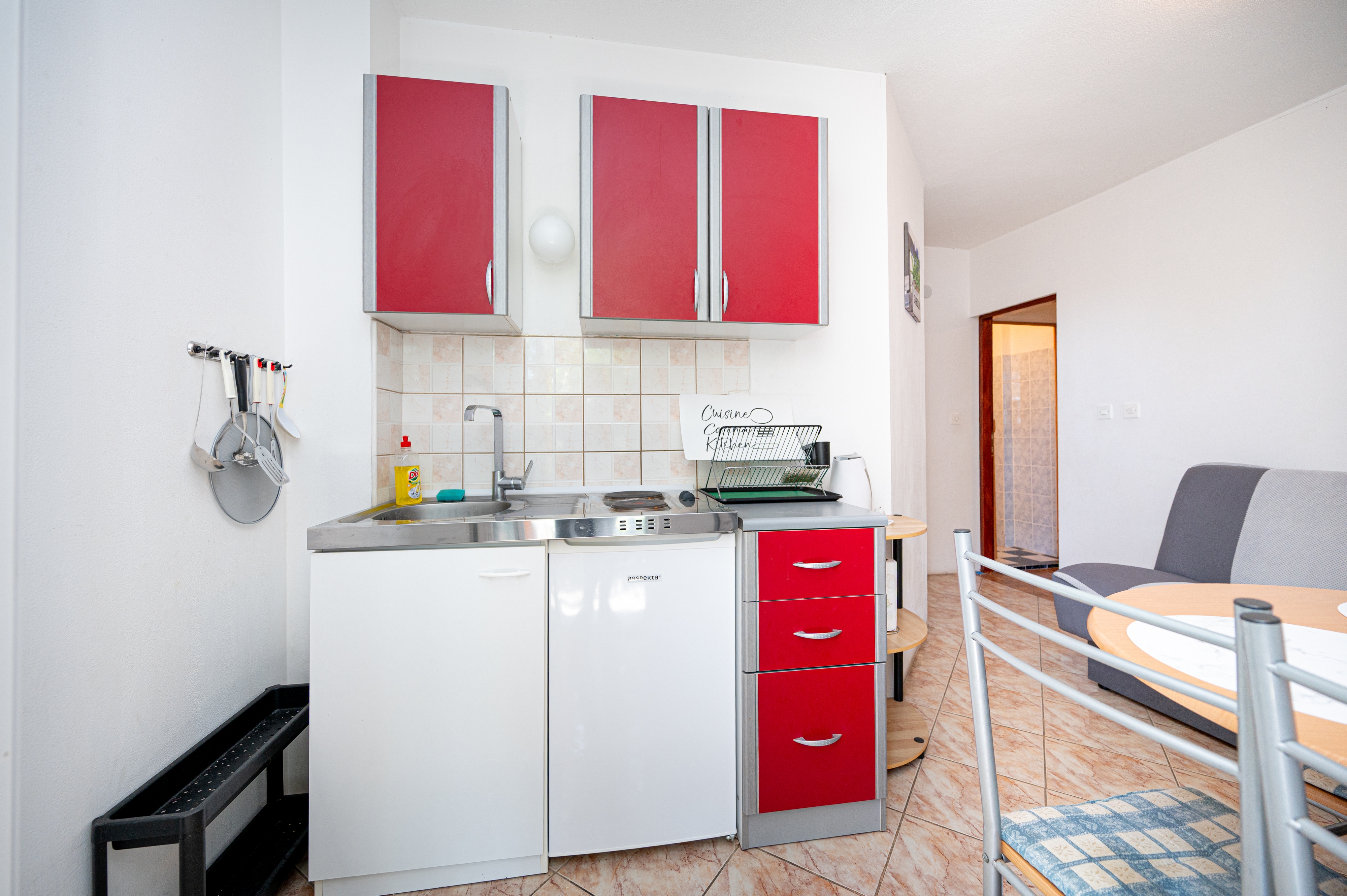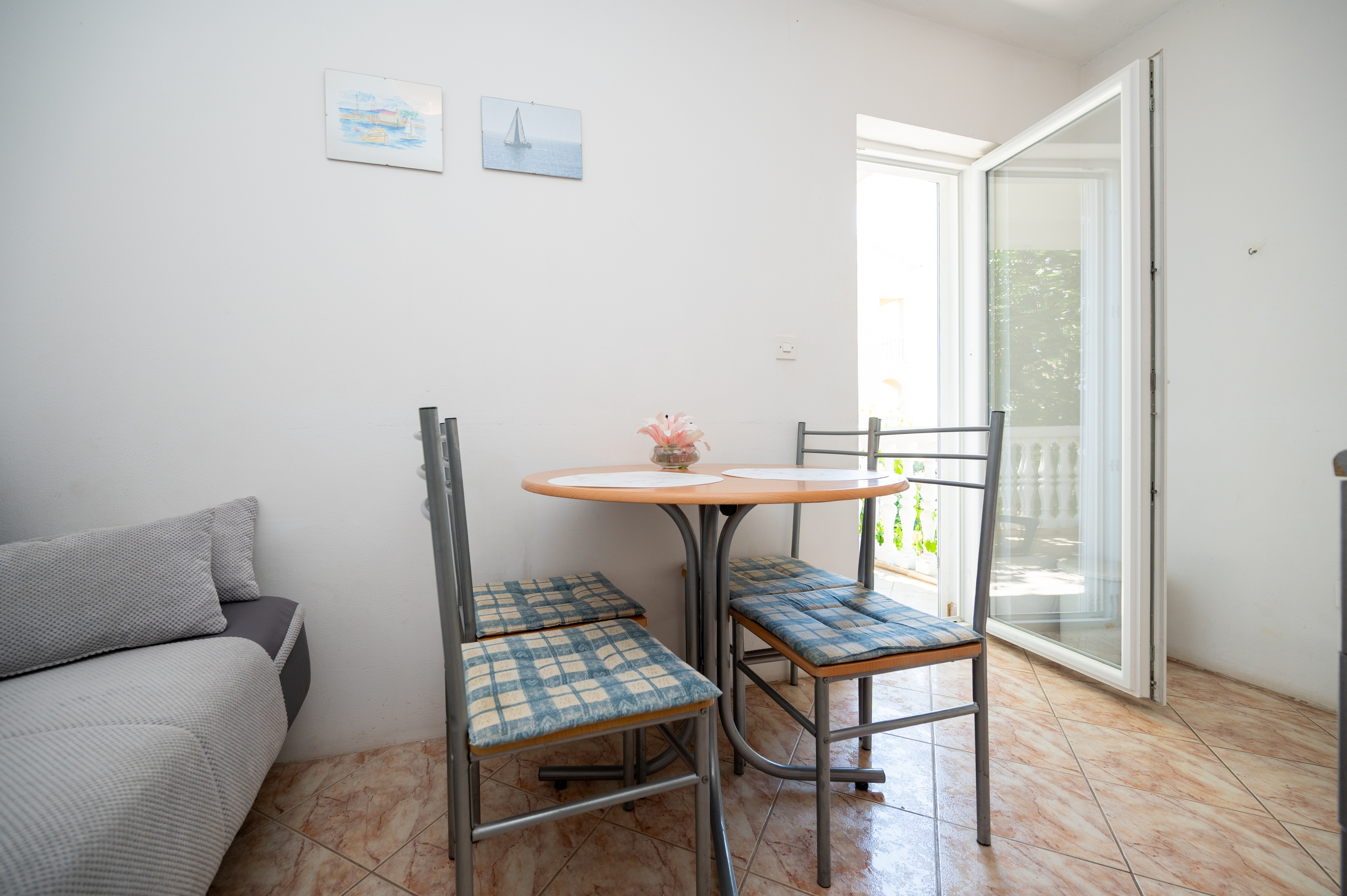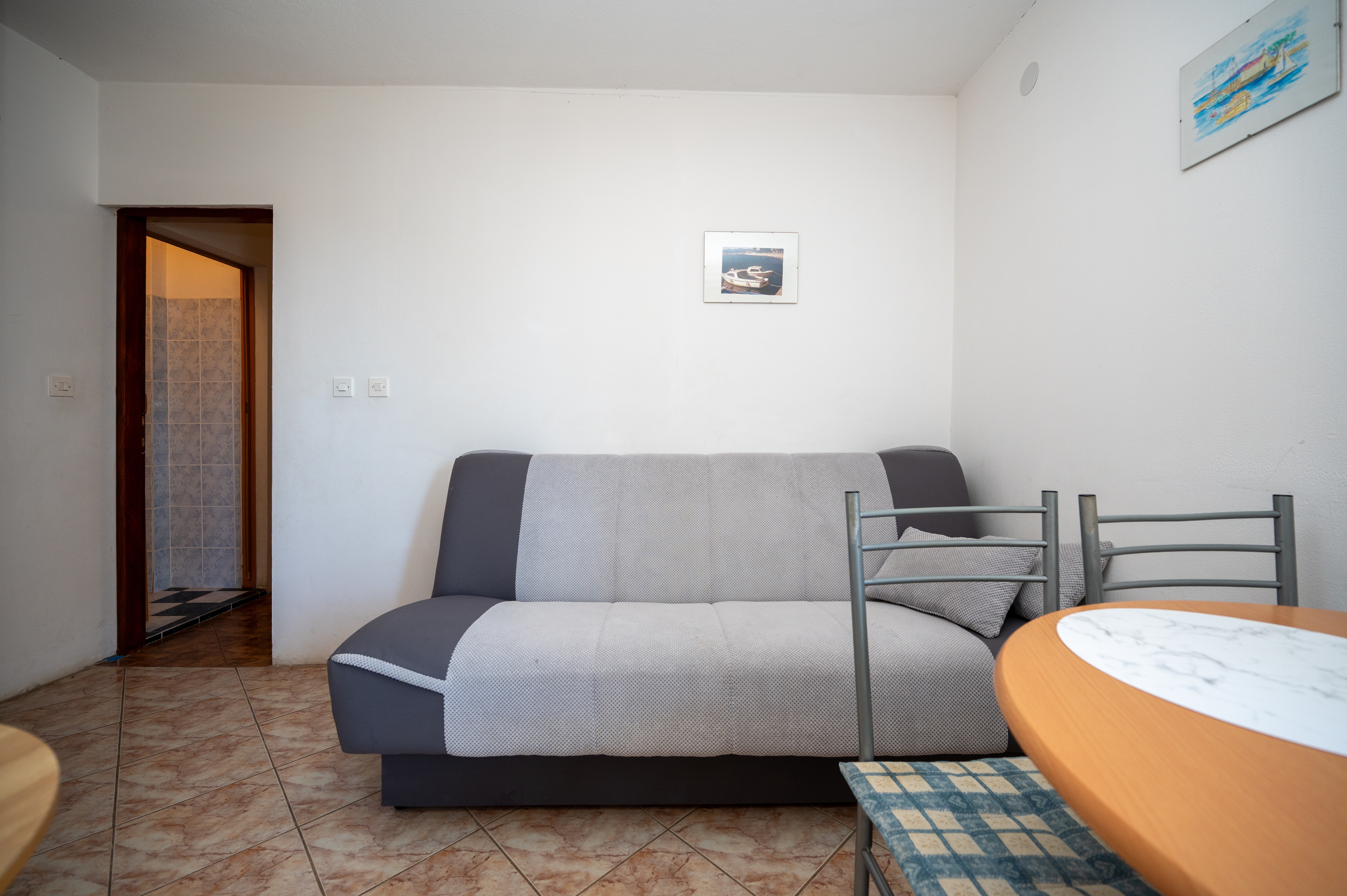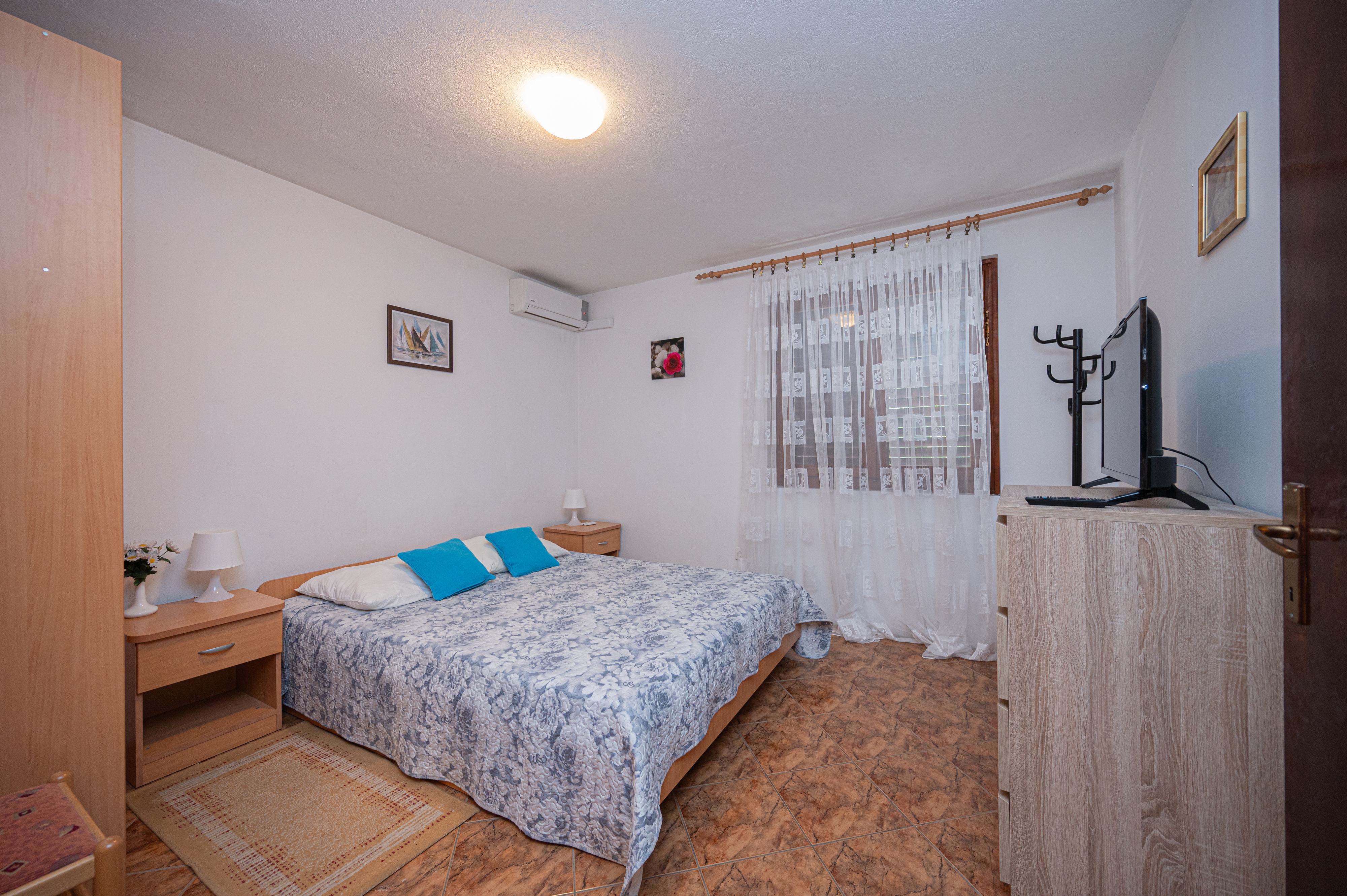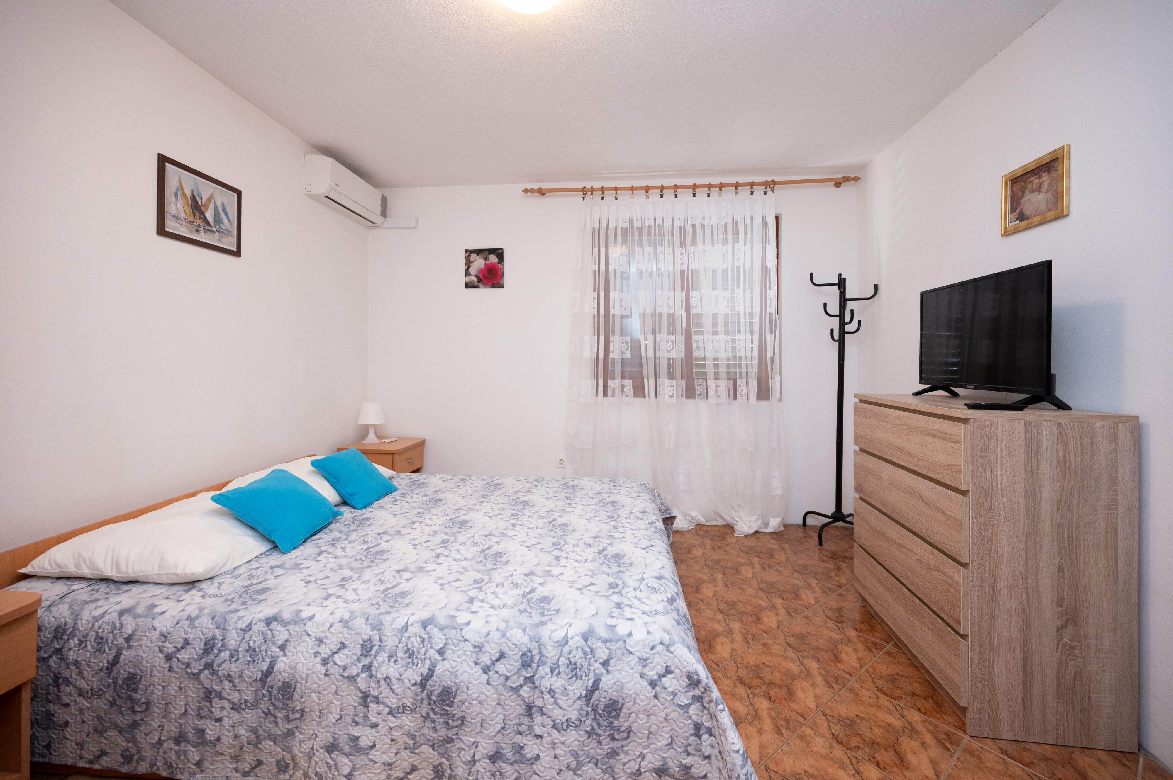 Apartment can accommodate 4 guests. Beds are situated in 2 sleeping rooms, but also in the living room, within 27m2. Guests can use a private terrace to enjoy the warm summer evenings. Food can be prepared using barbecue which is shared with other guests too. This accommodation unit welcomes pets at an additional charge. INCLUDED IN THE PRICE: tourist tax, final cleaning, air-conditioning, parking, internet, baby cot, iron, ironing board, hairdryer. OBLIGATORY ADDITIONAL COSTS: short stay fee (surcharge depending on a number of booked nights: 30% - 1, 20% - 2, 10% - 3). OPTIONAL ADDITIONAL COSTS: pets (€5.00 per night). The availability of additional services for your chosen dates of stay, as well as their prices (if none are listed) must be checked ahead of time. Any additional services not shown in the price calculation are payable directly to the property owner and only if used by the visitor.