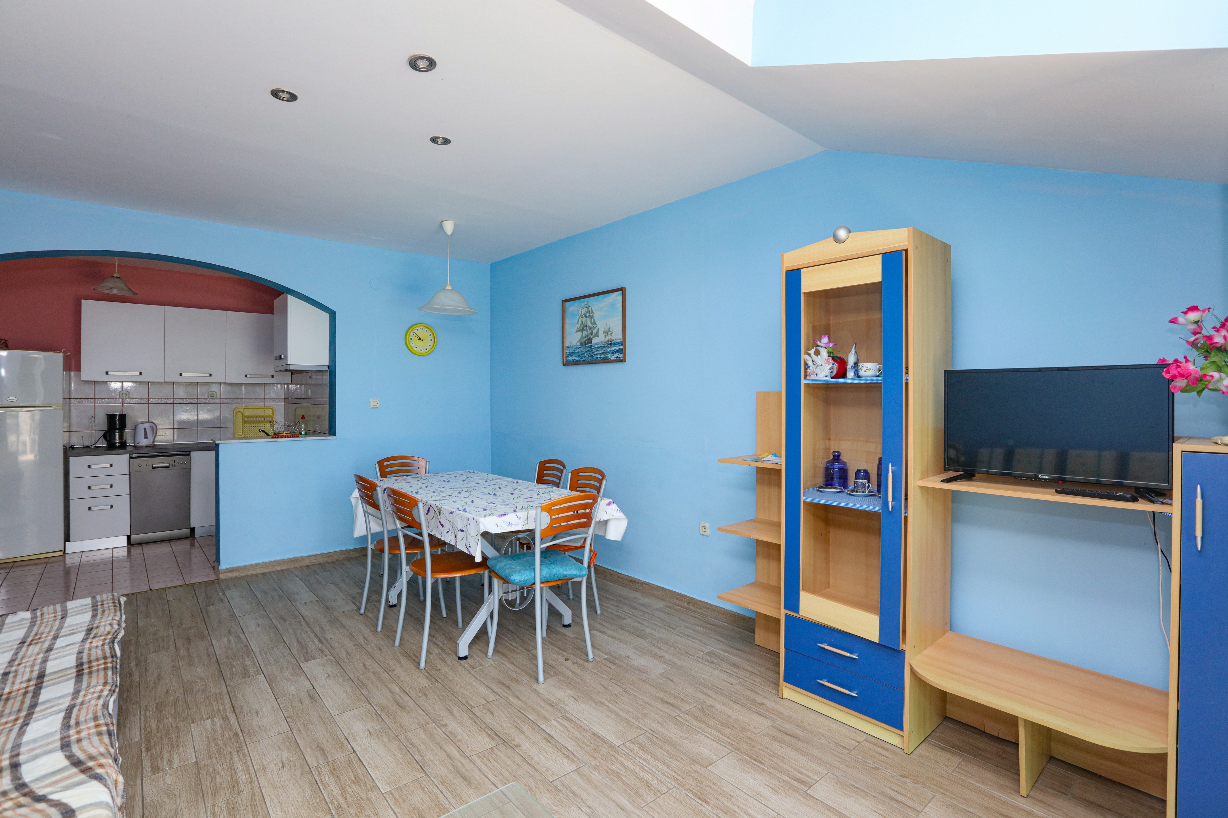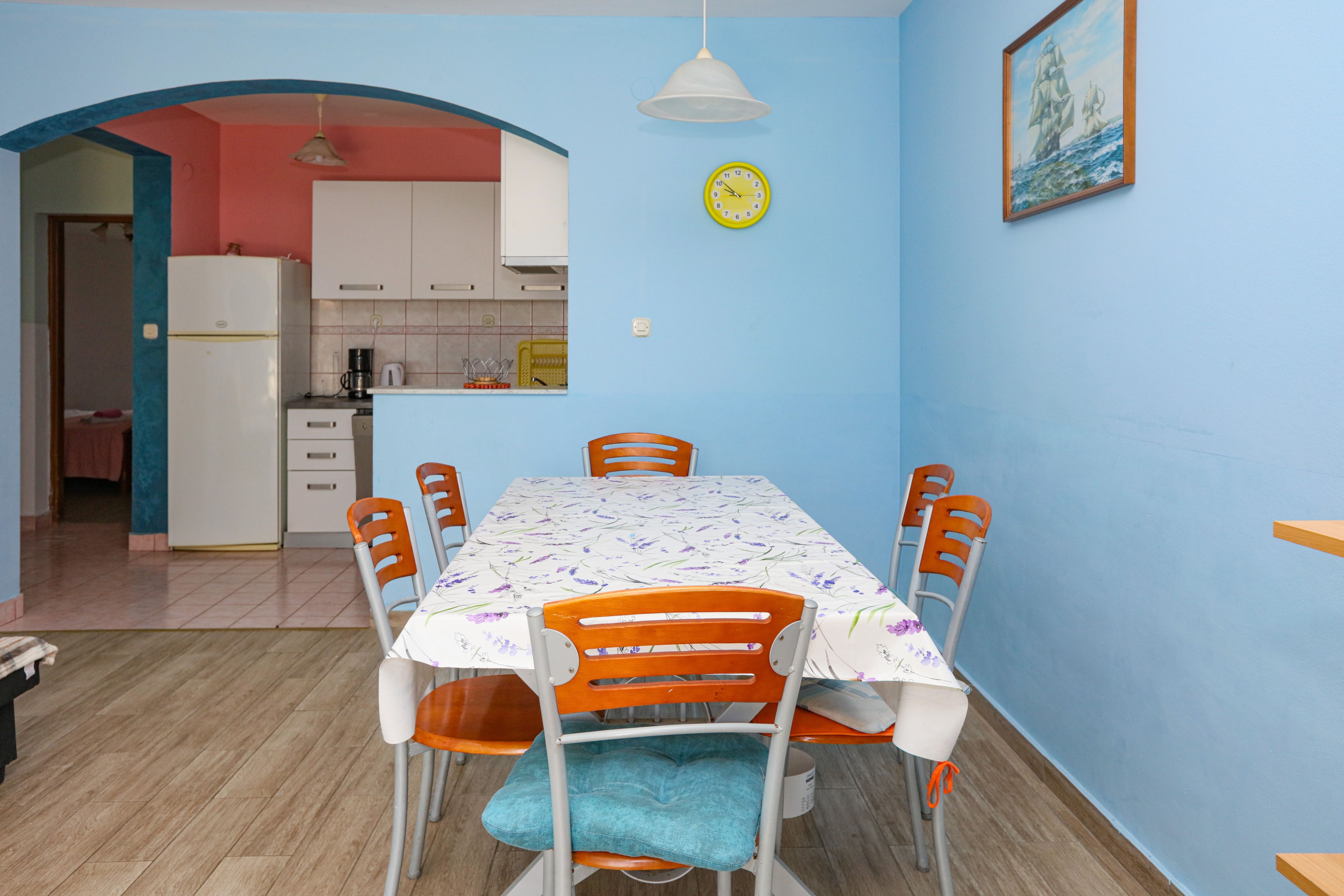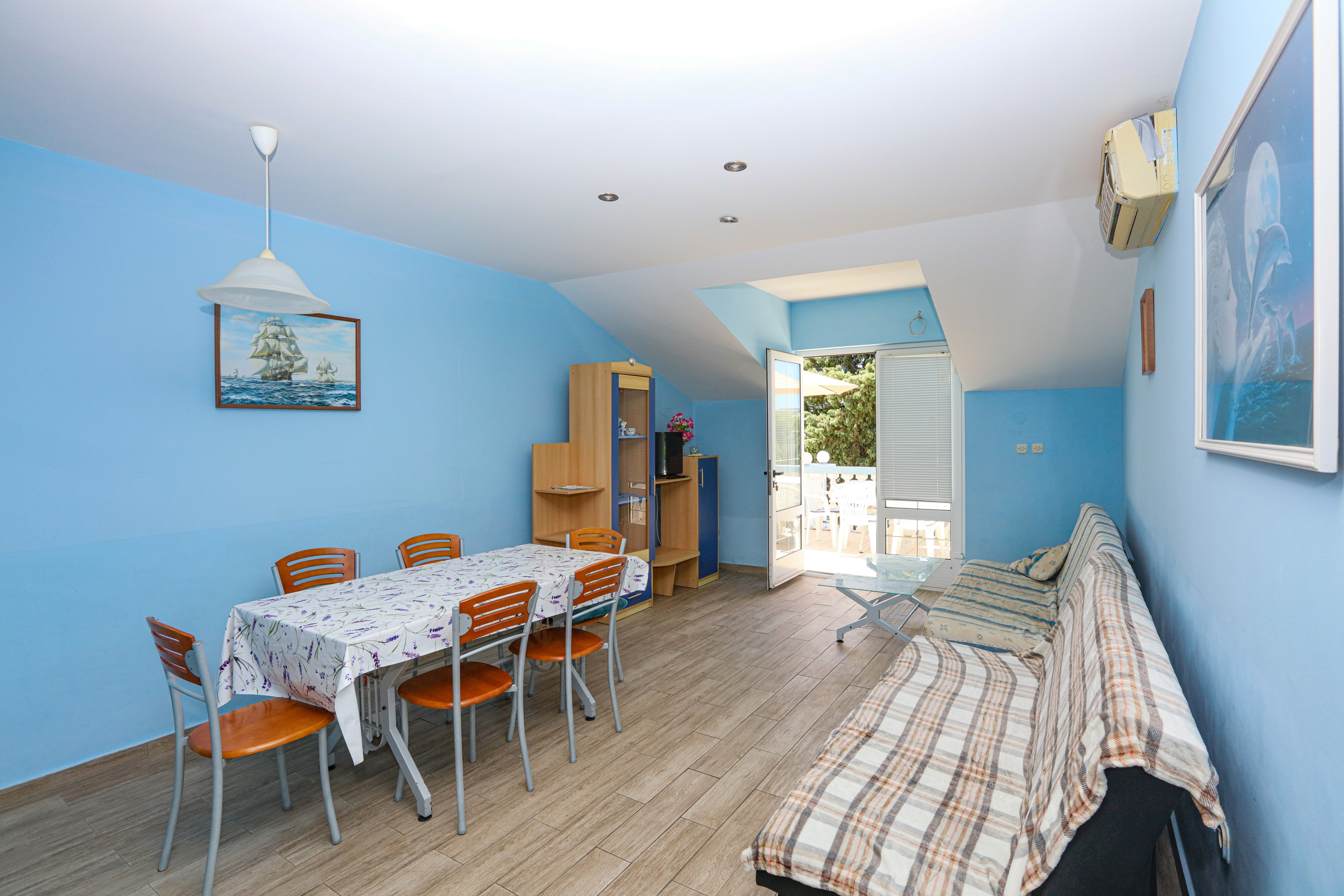 Apartment can accommodate 8 guests. Beds are situated in 2 sleeping rooms, but also in the living room, within 65m2. Guests can use a private terrace to enjoy the warm summer evenings. The apartment offers the sea view. Food can be prepared using barbecue which is shared with other guests too. This accommodation unit welcomes pets at an additional charge. INCLUDED IN THE PRICE: tourist tax, final cleaning, air-conditioning, parking, internet, laundry, iron, ironing board, hairdryer. OBLIGATORY ADDITIONAL COSTS: short stay fee (surcharge depending on a number of booked nights: 30% - 1, 20% - 2, 10% - 3). OPTIONAL ADDITIONAL COSTS: boat mooring (€7.00 per night), pets (€7.00 per night). The availability of additional services for your chosen dates of stay, as well as their prices (if none are listed) must be checked ahead of time. Any additional services not shown in the price calculation are payable directly to the property owner and only if used by the visitor. Discounts to the base price: free day 14=13 (for reservations of 14 or more days you get one free day for the stay until 31122026).