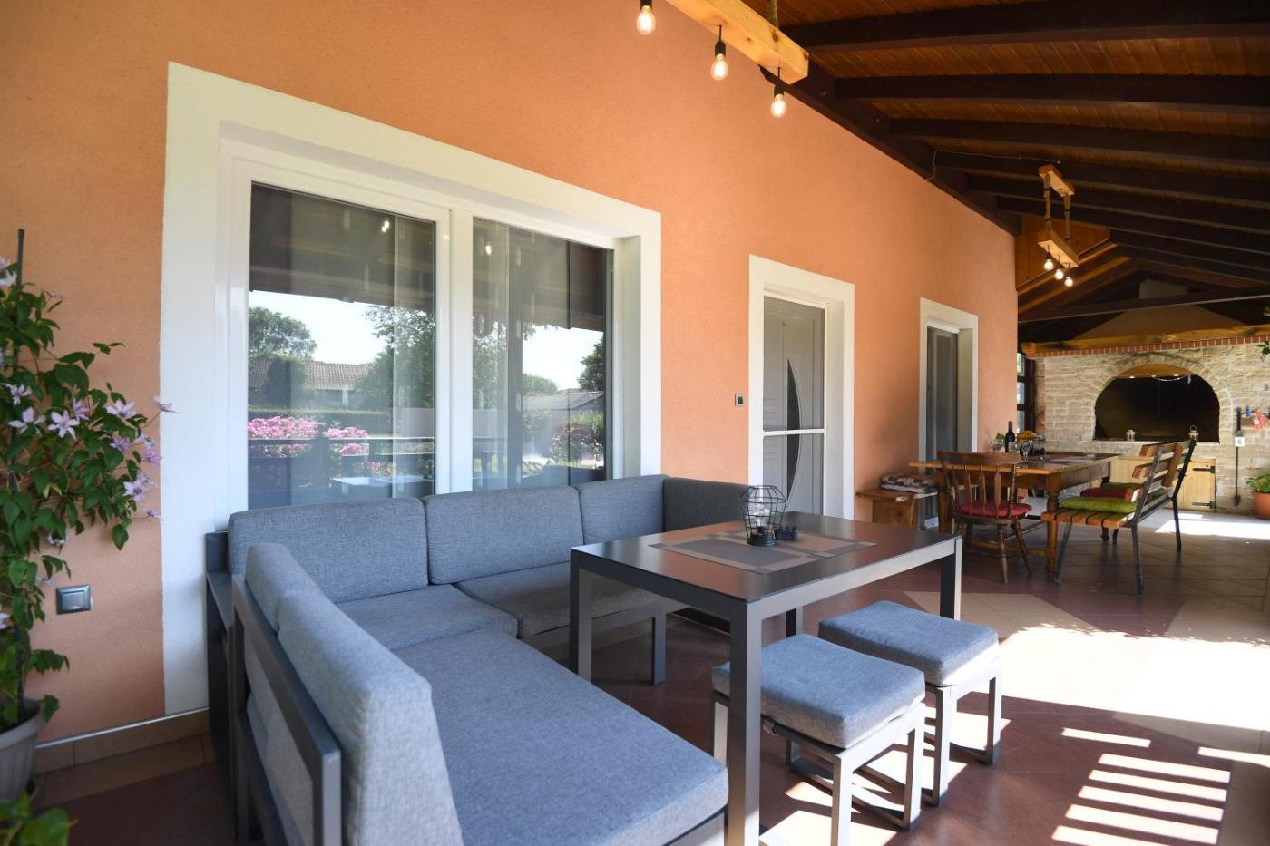 Villa. Boasting a private entrance, this air-conditioned villa features 1 living room, 4 separate bedrooms and 2 bathrooms with a shower. Guests will find a stovetop, a refrigerator, a dishwasher and kitchenware in the well-equipped kitchen. The villa also comes with a barbecue. Featuring a terrace with garden views, this villa also features a washing machine and a flat-screen TV with satellite channels. The unit has 6 beds.