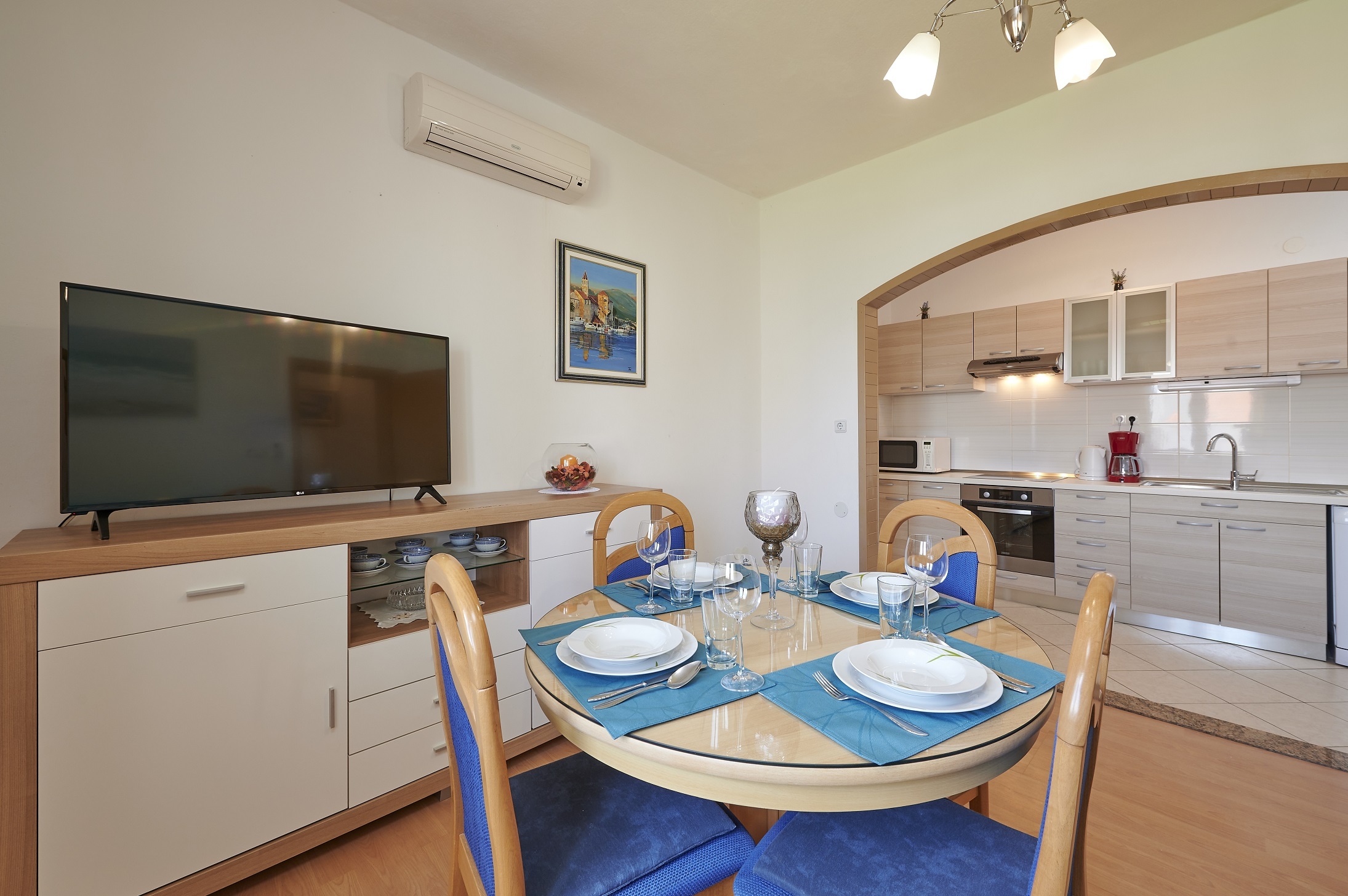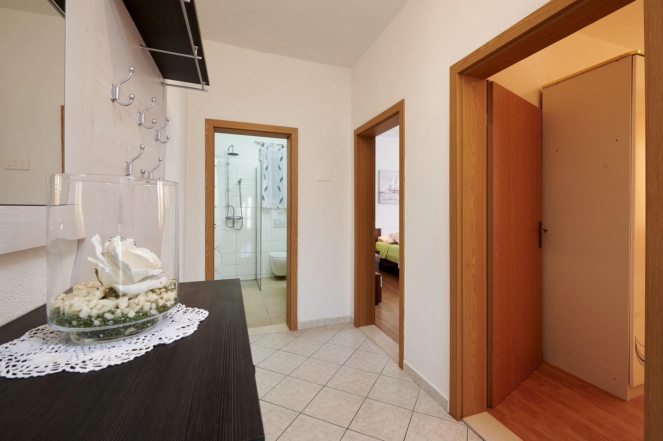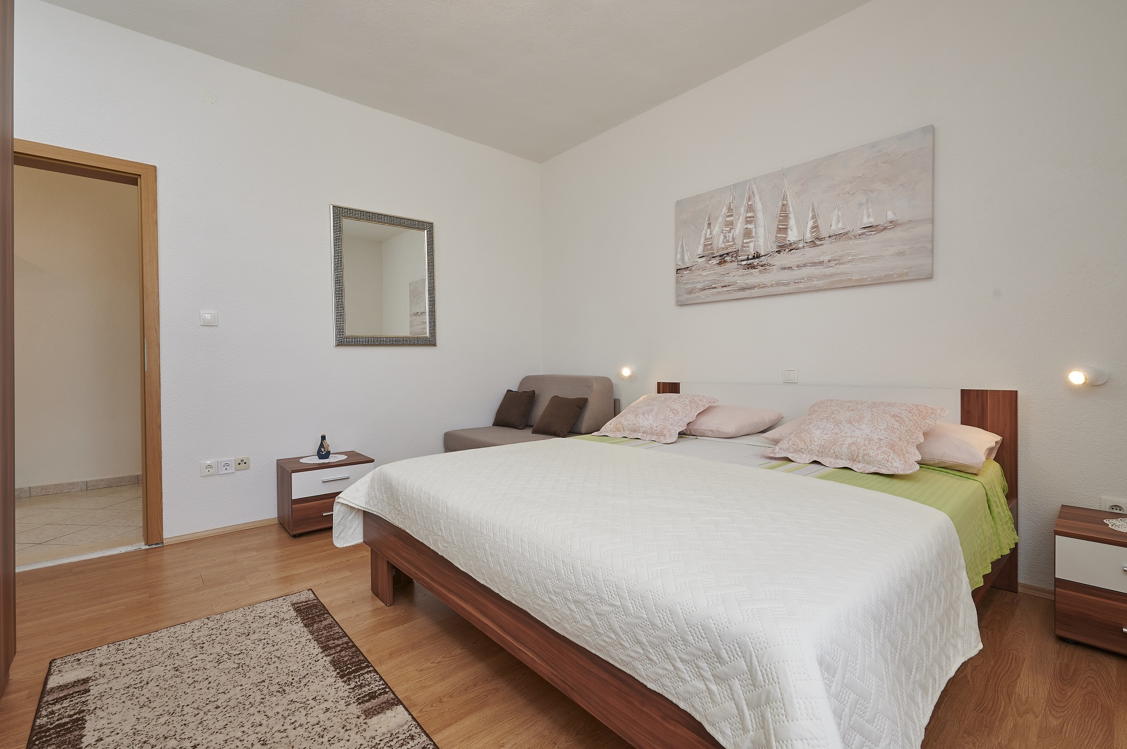 Apartment can accommodate 5 guests. Beds are situated in 2 sleeping rooms, but also in the living room, within 43m2. Guests can use a private terrace to enjoy the warm summer evenings. The apartment offers the sea view. Food can be prepared using barbecue which is shared with other guests too. INCLUDED IN THE PRICE: tourist tax, final cleaning, air-conditioning, parking, internet, baby cot, iron, ironing board, hairdryer. OBLIGATORY ADDITIONAL COSTS: short stay fee (surcharge depending on a number of booked nights: 30% - 1, 20% - 2, 10% - 3). The availability of additional services for your chosen dates of stay, as well as their prices (if none are listed) must be checked ahead of time. Any additional services not shown in the price calculation are payable directly to the property owner and only if used by the visitor.