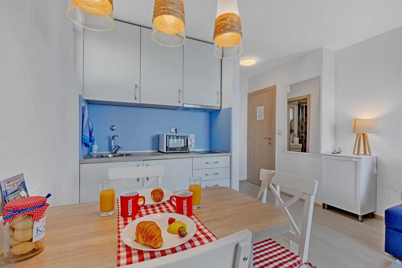 The apartment provides guests with a terrace, sea views, a seating area, a flat-screen TV, a fully equipped kitchen with a microwave and a fridge, and a private bathroom with shower and a hair dryer. There is also a stovetop, kitchenware and a kettle. At the apartment complex,units include bed linen and towels.