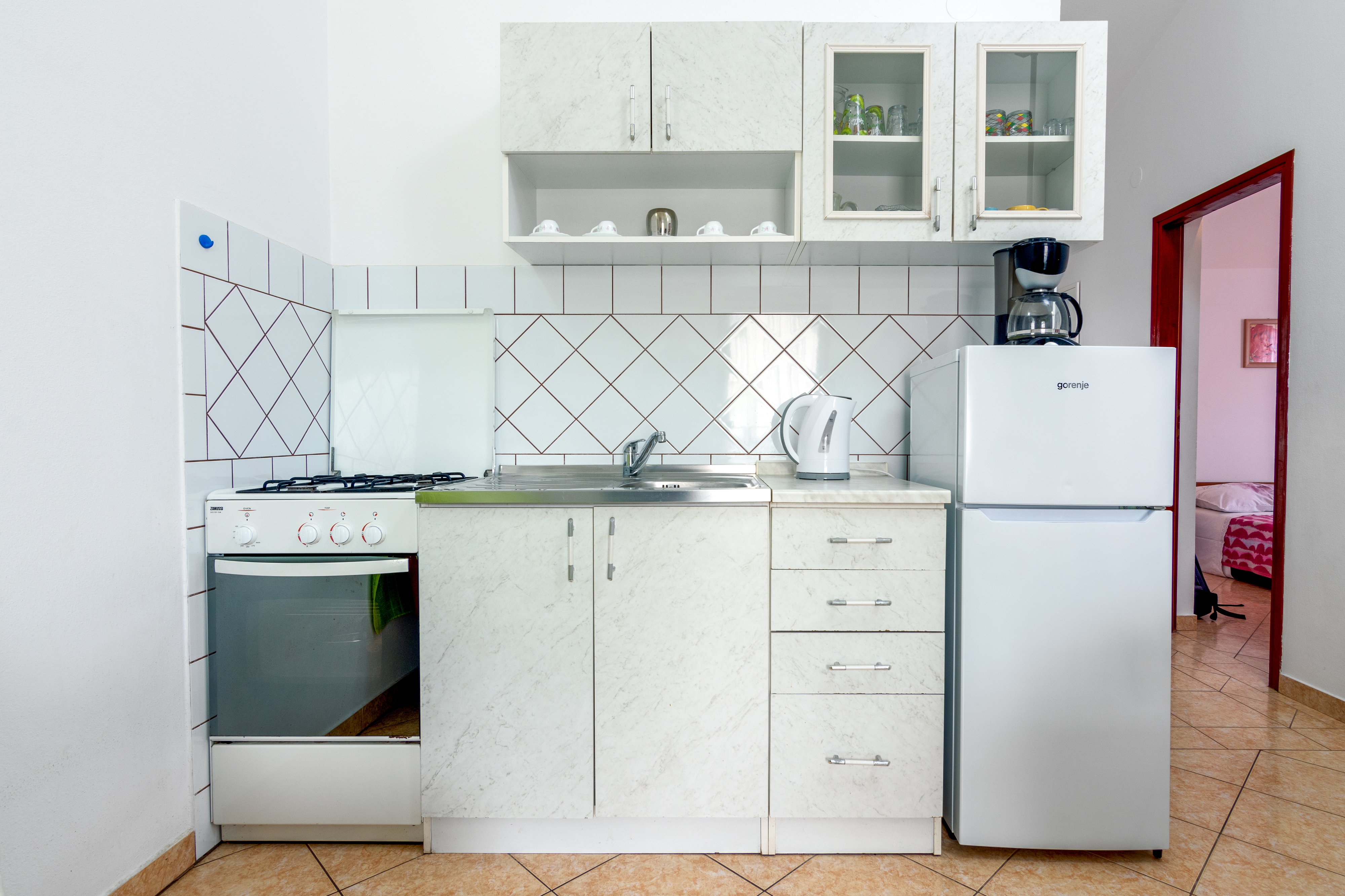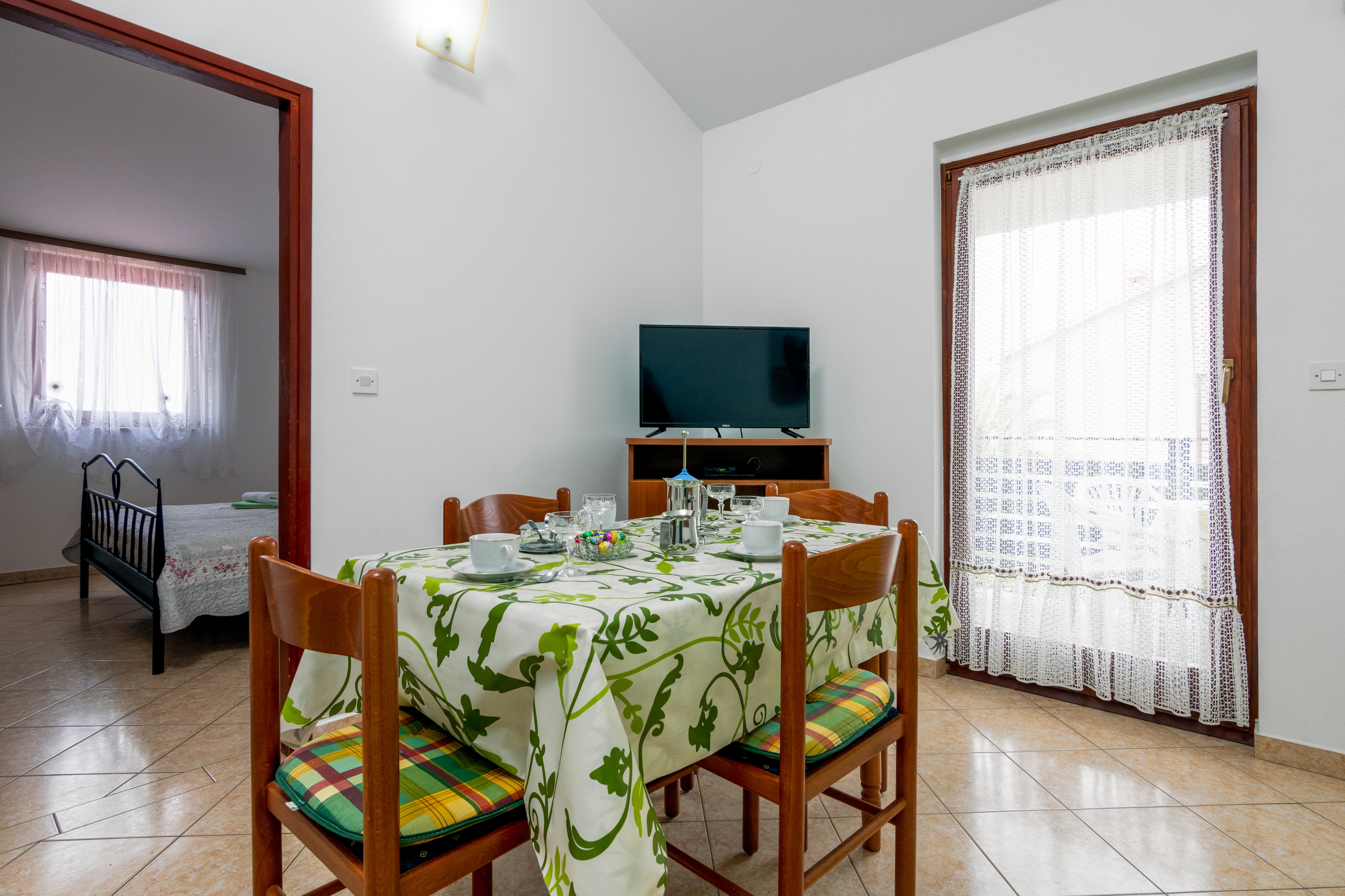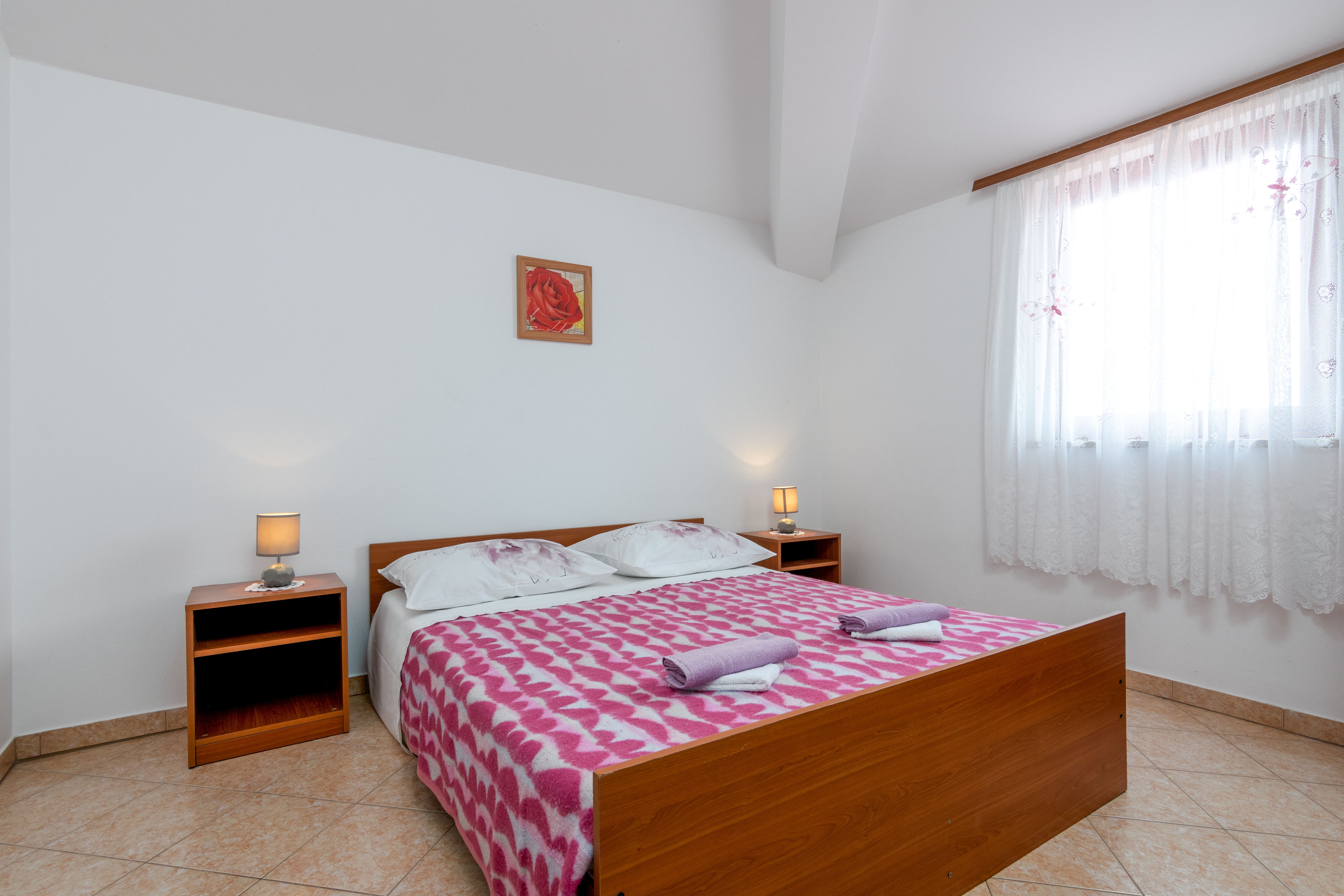 Apartment can accommodate 4 guests. Beds are situated in 2 sleeping rooms, within 47m2. Guests can use a private terrace to enjoy the warm summer evenings. Food can be prepared using barbecue which is shared with other guests too. Shared pool is on disposal during stay. This accommodation unit welcomes pets at an additional charge. INCLUDED IN THE PRICE: tourist tax, final cleaning, pool, parking, internet, baby cot, iron, ironing board, hairdryer. OBLIGATORY ADDITIONAL COSTS: short stay fee (surcharge depending on a number of booked nights: 30% - 1, 20% - 2, 10% - 3). OPTIONAL ADDITIONAL COSTS: air-conditioning (€5.00 per night), laundry (€10.00 washing), pets (€10.00 per night), additional bed (€10.00 per night). The availability of additional services for your chosen dates of stay, as well as their prices (if none are listed) must be checked ahead of time. Any additional services not shown in the price calculation are payable directly to the property owner and only if used by the visitor.