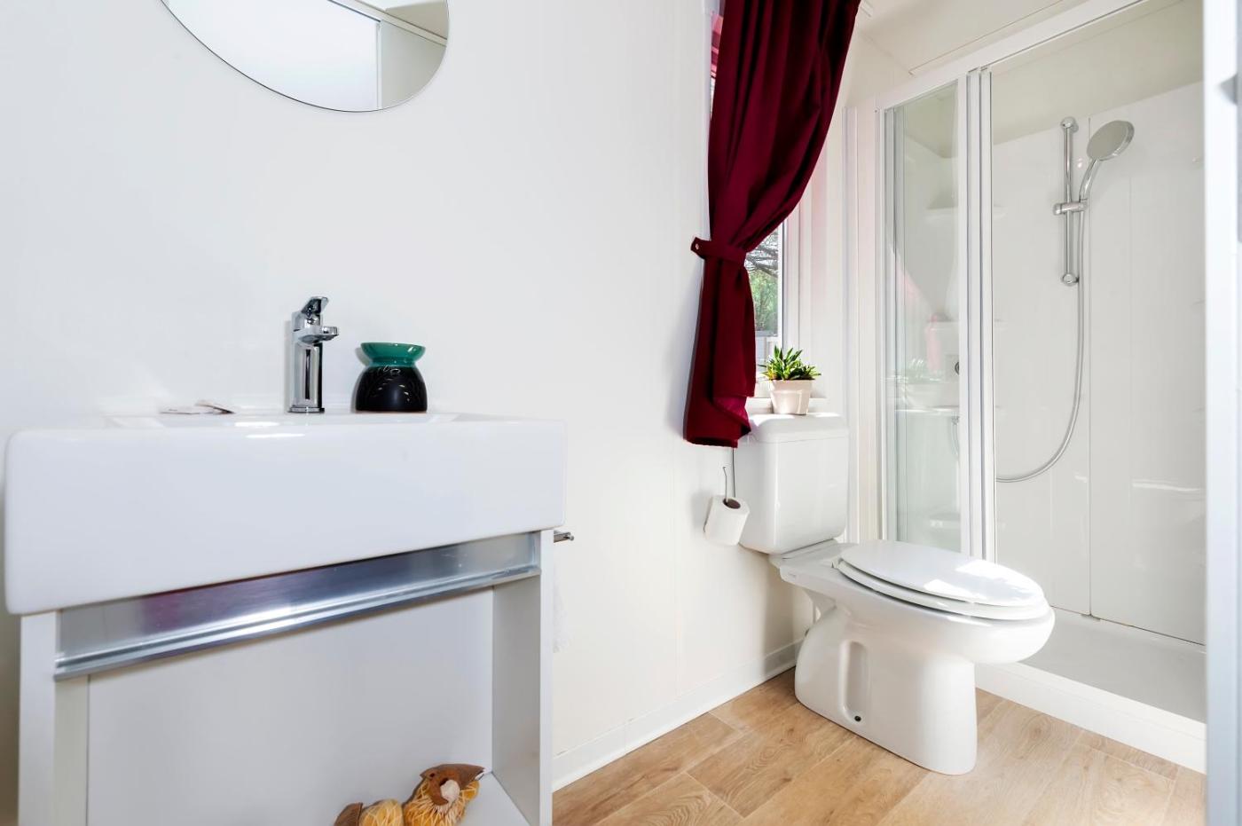 Comfort Mobile Home. Boasting a private entrance, this air-conditioned mobile home features 1 living room, 2 separate bedrooms and 2 bathrooms with a shower. The well-equipped kitchen has a stovetop, a refrigerator and a microwave. Featuring a terrace with garden views, this mobile home also features a tea and coffee maker and a flat-screen TV. The unit has 4 beds.
