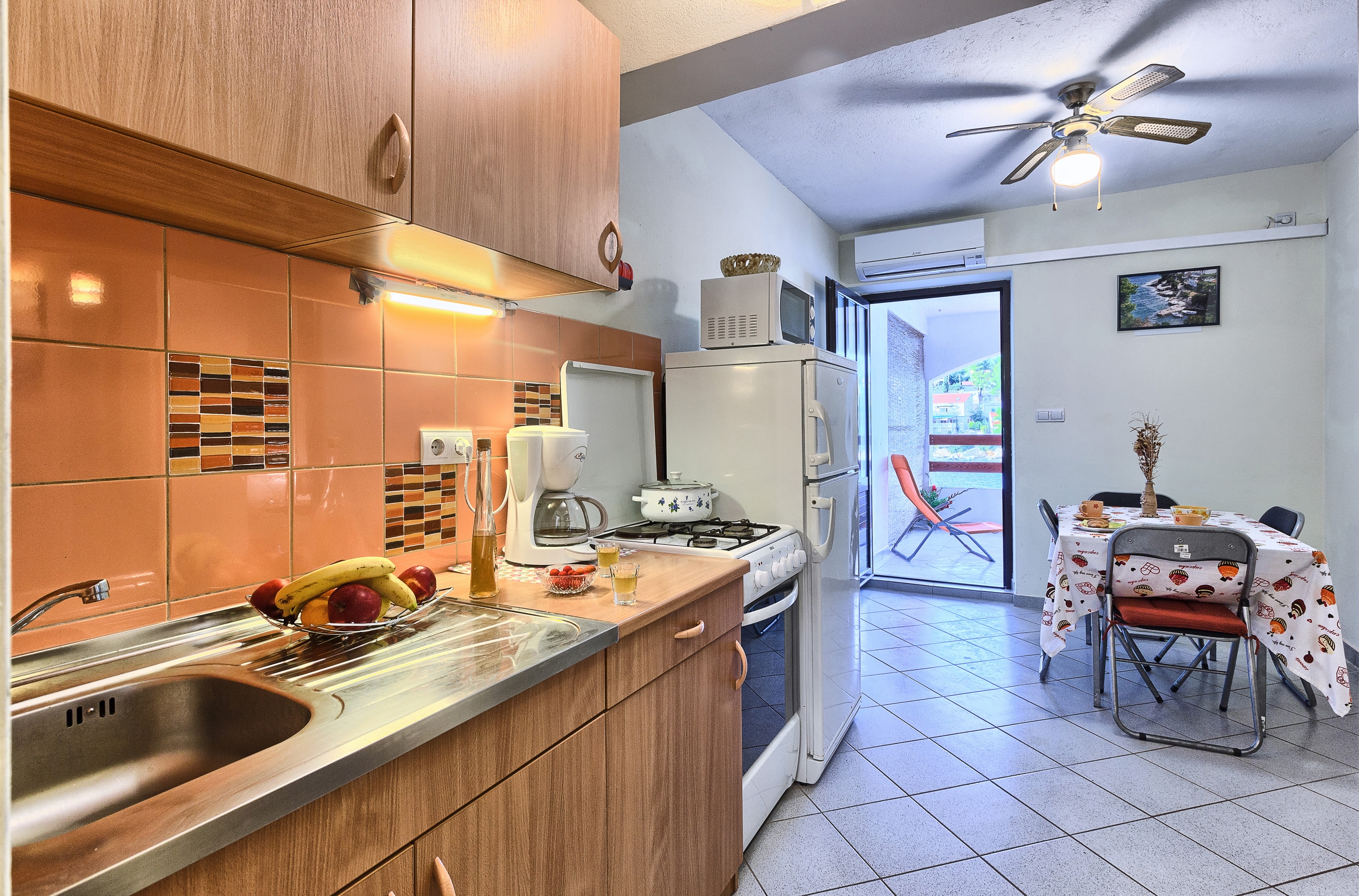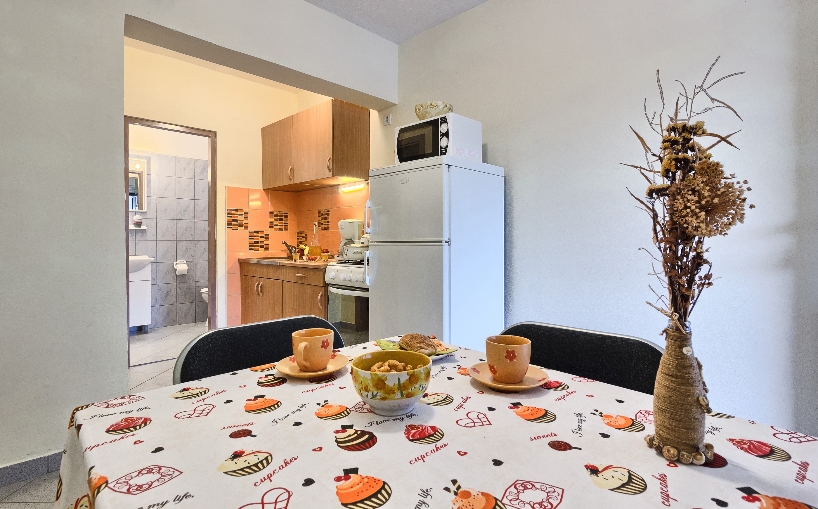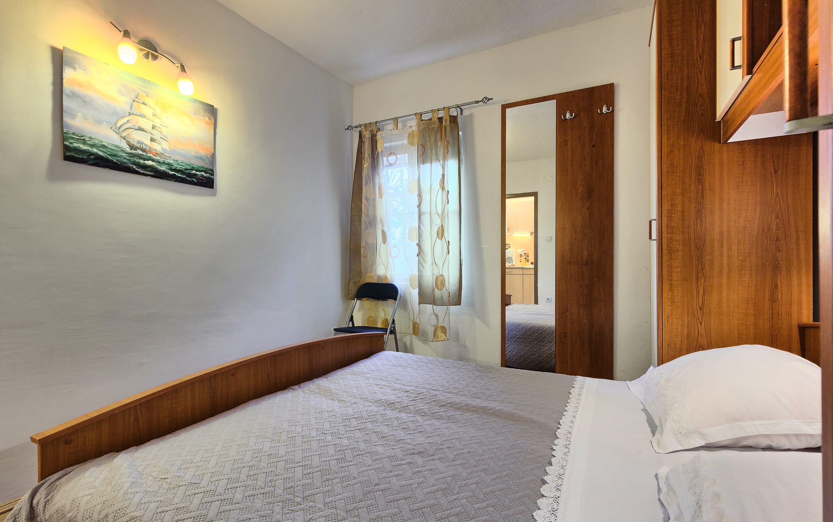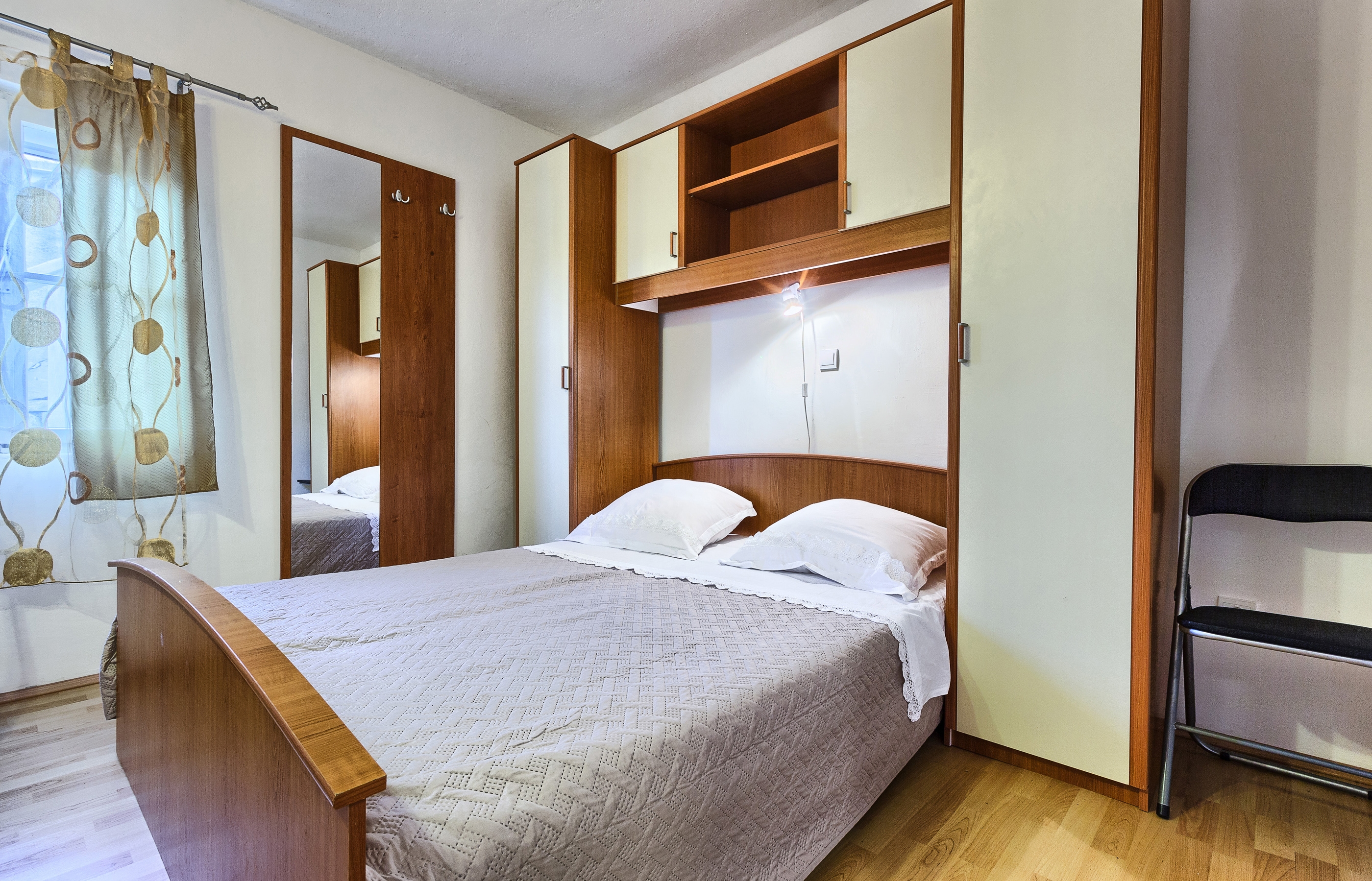 Apartment can accommodate 4 guests. Beds are situated in 2 sleeping rooms, within 33m2. Guests can use a private terrace to enjoy the warm summer evenings. The apartment offers the sea view. Food can be prepared using barbecue which is shared with other guests too. This accommodation unit welcomes pets at an additional charge. INCLUDED IN THE PRICE: tourist tax, final cleaning, air-conditioning, parking, internet, laundry, baby cot, iron, ironing board, hairdryer. OBLIGATORY ADDITIONAL COSTS: short stay fee (surcharge depending on a number of booked nights: 30% - 1, 20% - 2, 10% - 3). OPTIONAL ADDITIONAL COSTS: boat mooring (€10.00 per night), pets (€10.00 per night). The availability of additional services for your chosen dates of stay, as well as their prices (if none are listed) must be checked ahead of time. Any additional services not shown in the price calculation are payable directly to the property owner and only if used by the visitor.