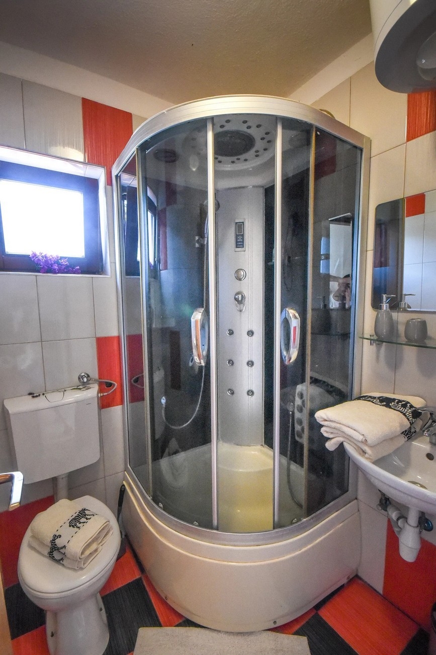 Apartment can accommodate 3 guests. Beds are situated in 1 sleeping rooms, but also in the living room, within 37m2. Guests can use a private terrace to enjoy the warm summer evenings. The apartment offers the sea view. Food can be prepared using barbecue which is shared with other guests too. Shared pool is on disposal during stay. This accommodation unit welcomes pets at no additional costs. INCLUDED IN THE PRICE: tourist tax, final cleaning, air-conditioning, pool, parking, internet, pets, baby cot, iron, hairdryer. OBLIGATORY ADDITIONAL COSTS: short stay fee (surcharge depending on a number of booked nights: 30% - 1, 20% - 2, 10% - 3). The availability of additional services for your chosen dates of stay, as well as their prices (if none are listed) must be checked ahead of time. Any additional services not shown in the price calculation are payable directly to the property owner and only if used by the visitor. Discounts to the base price: free day 14=13 (for reservations of 14 or more days you get one free day for the stay until 31122026).