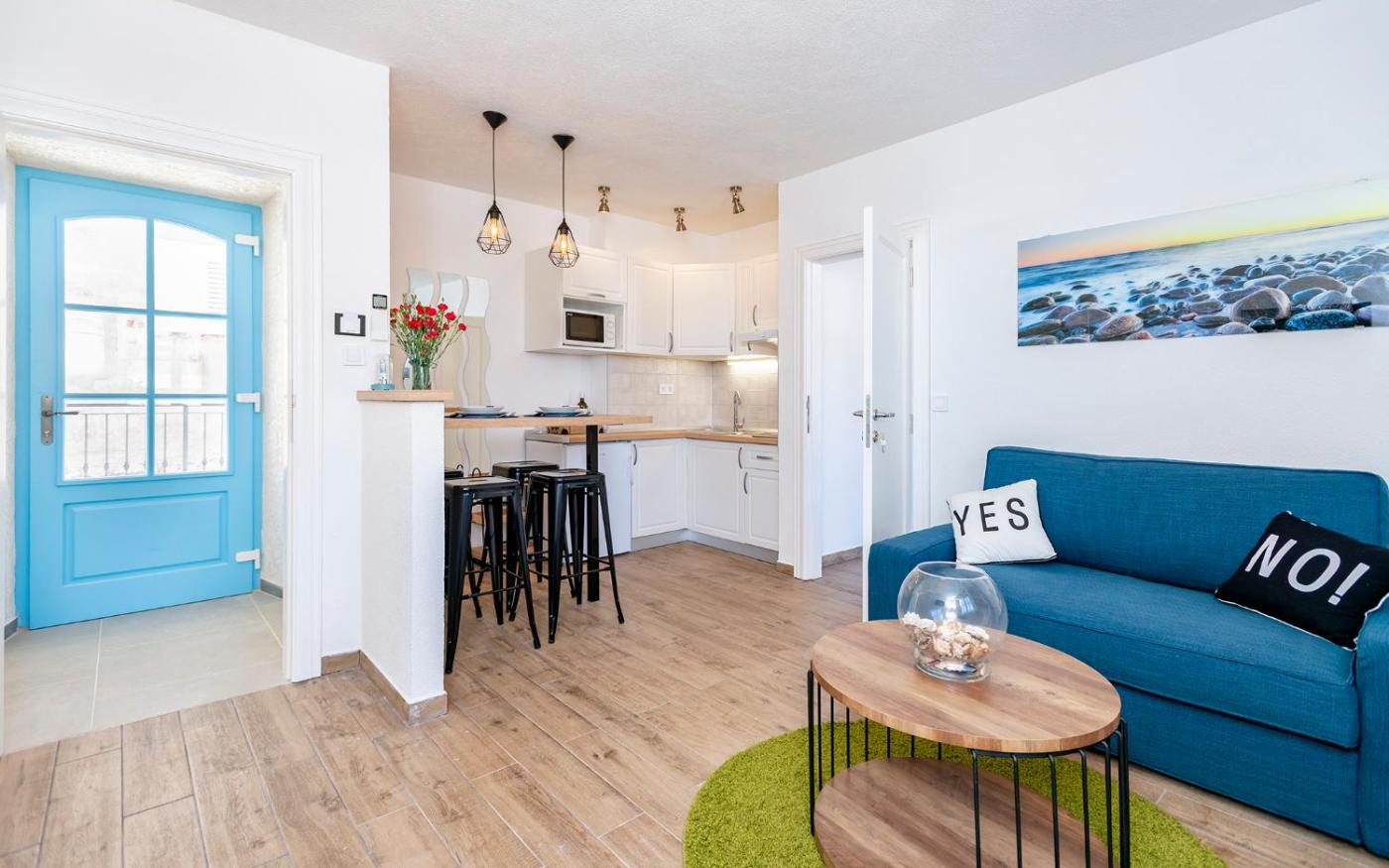 Apartment with Sea View. Boasting a private entrance, this air-conditioned apartment includes 1 living room, 1 separate bedroom and 1 bathroom with a walk-in shower and a hairdryer. In the fully equipped kitchen, guests will find a stovetop, a refrigerator, kitchenware and a microwave. The apartment offers a washing machine, soundproof walls, a seating area, a flat-screen TV with cable channels, as well as sea views. The unit has 2 beds.