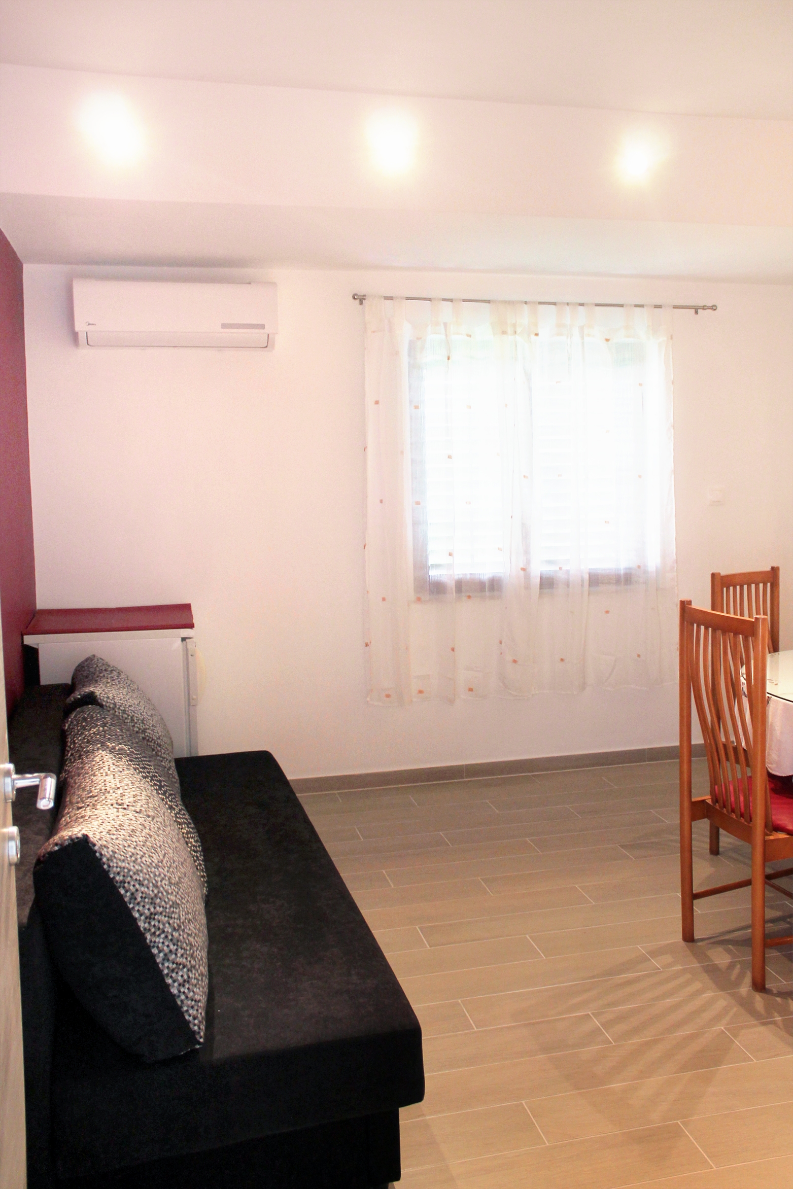 Apartment can accommodate 4 guests. Beds are situated in 1 sleeping rooms, but also in the dining room, within 37m2. Guests can use a private terrace to enjoy the warm summer evenings. Food can be prepared using barbecue which is shared with other guests too. INCLUDED IN THE PRICE: tourist tax, final cleaning, air-conditioning, parking, internet, baby cot, iron, ironing board, hairdryer. OBLIGATORY ADDITIONAL COSTS: short stay fee (surcharge depending on a number of booked nights: 30% - 1, 20% - 2, 10% - 3). OPTIONAL ADDITIONAL COSTS: central heating (€7.00 per night), laundry (€8.00 washing), 1 bed for children (€10.00 personnight). The availability of additional services for your chosen dates of stay, as well as their prices (if none are listed) must be checked ahead of time. Any additional services not shown in the price calculation are payable directly to the property owner and only if used by the visitor. Discounts to the base price: free day 14=13 (for reservations of 14 or more days you get one free day for the stay until 31122026).