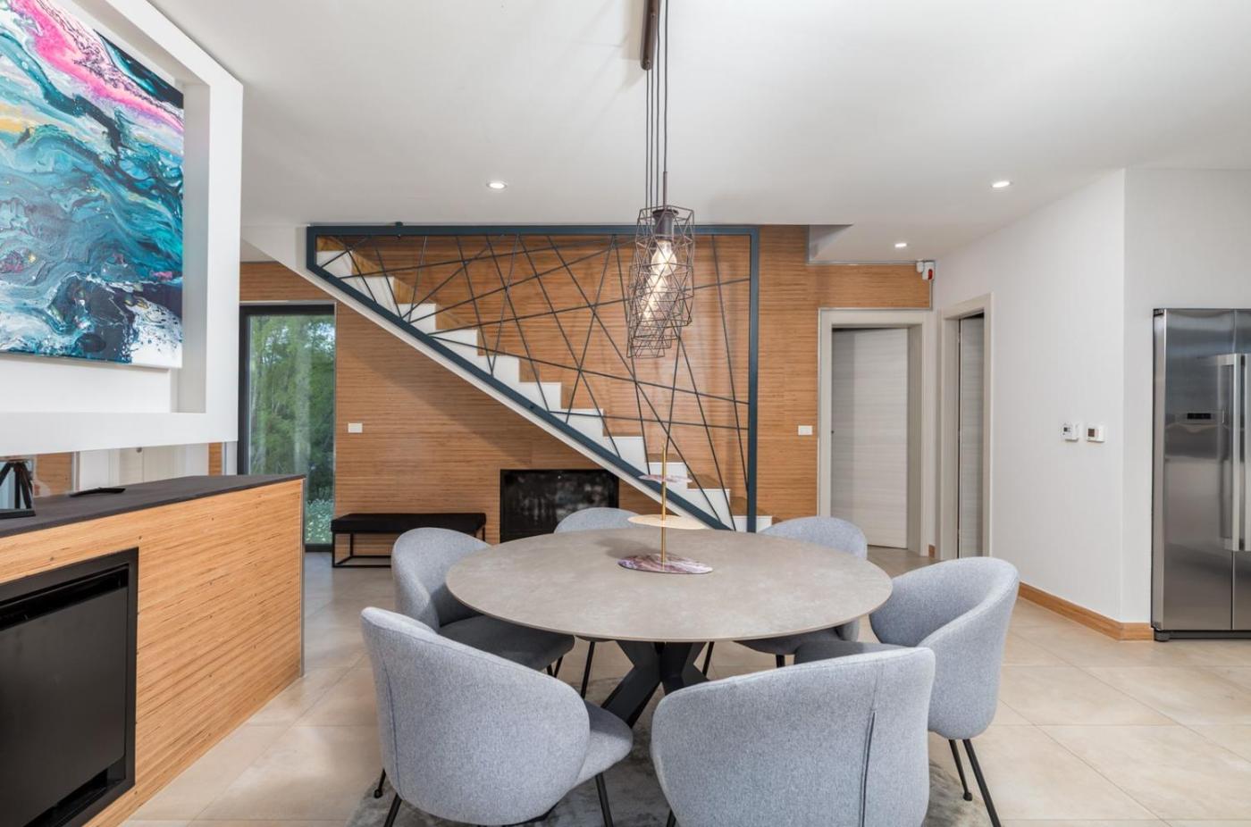 Villa with Private Pool. This luxurious villa features a private pool, a hot tub and a sauna. Featuring a private entrance, this air-conditioned villa comprises 1 living room, 4 separate bedrooms and 5 bathrooms with a shower and a hairdryer. Guests will find a refrigerator, a dishwasher, kitchenware and an oven in the fully equipped kitchen. The villa also provides guests with a barbecue. Boasting a balcony with garden views, this villa also provides a washing machine and a TV with satellite channels. The unit offers 5 beds.