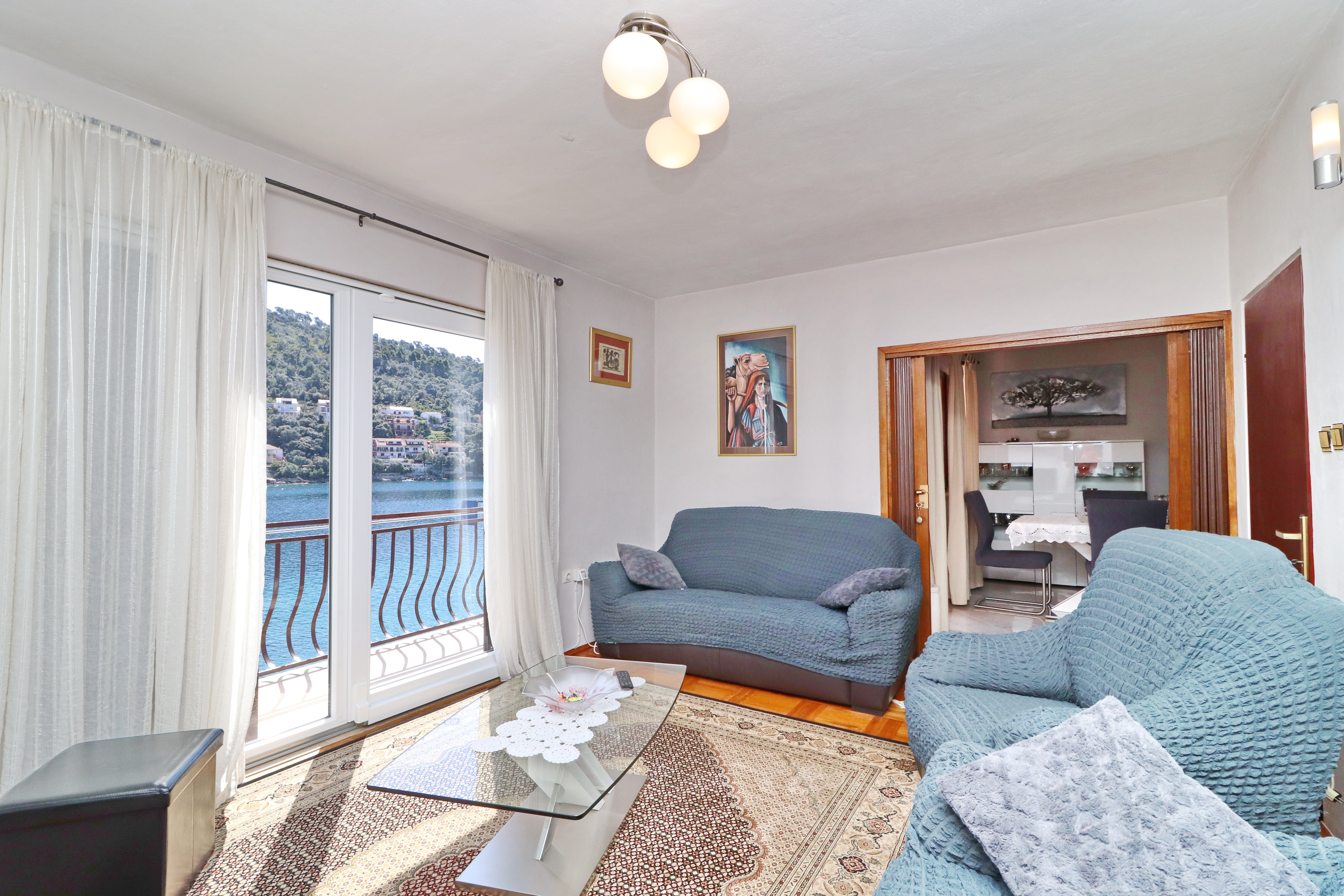 Apartment can accommodate 7 guests. Beds are situated in 3 sleeping rooms, but also in the living room, within 85m2. Guests can use a private terrace to enjoy the warm summer evenings. The apartment offers the sea view. Food can be prepared using barbecue which is shared with other guests too. INCLUDED IN THE PRICE: tourist tax, final cleaning, air-conditioning, parking, internet, boat mooring, iron, ironing board. OBLIGATORY ADDITIONAL COSTS: short stay fee (surcharge depending on a number of booked nights: 30% - 1, 20% - 2, 10% - 3). The availability of additional services for your chosen dates of stay, as well as their prices (if none are listed) must be checked ahead of time. Any additional services not shown in the price calculation are payable directly to the property owner and only if used by the visitor.