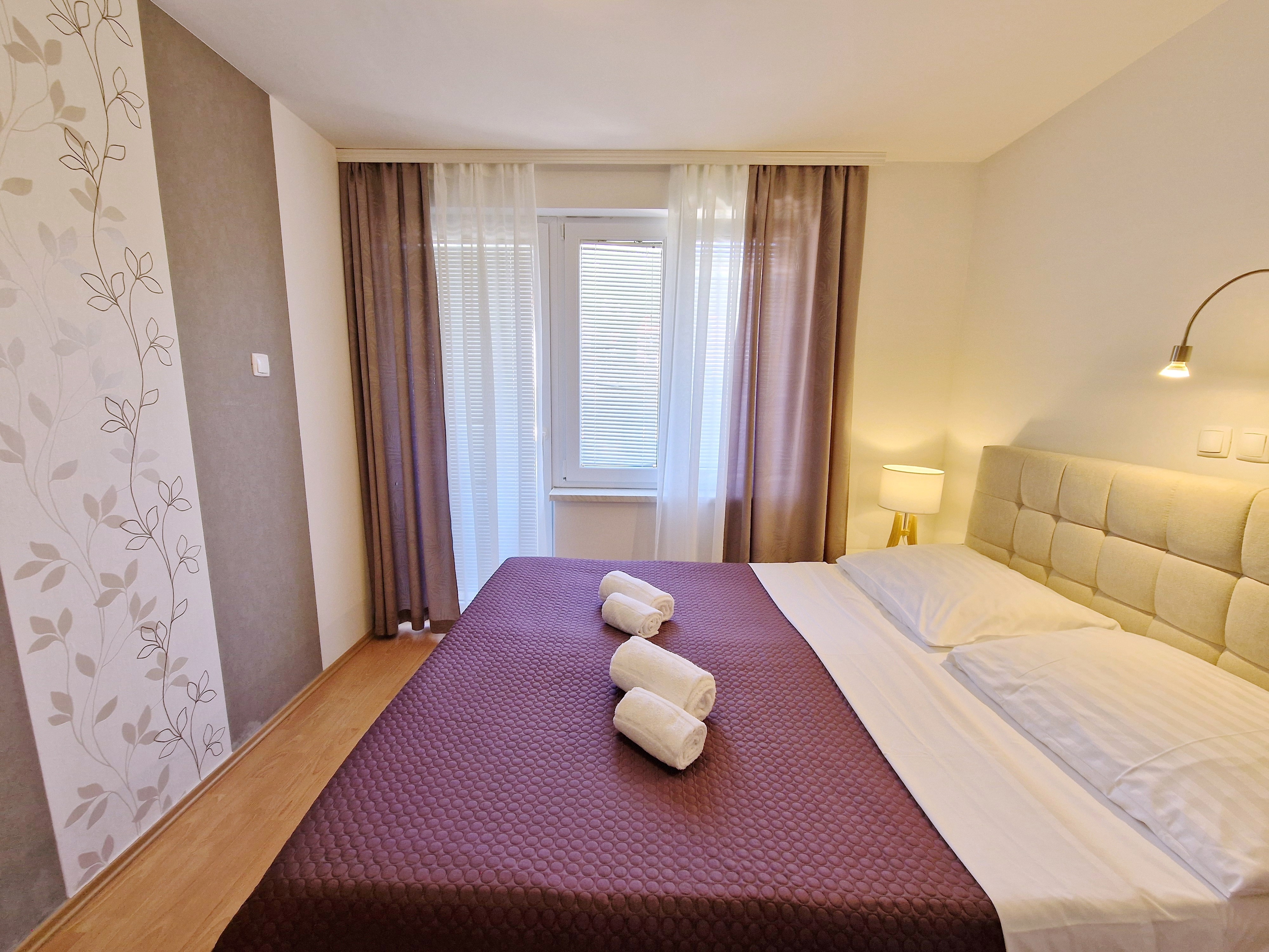 Apartment can accommodate 4 guests. Beds are situated in 2 sleeping rooms, within 57m2. Guests can use a private terrace to enjoy the warm summer evenings. INCLUDED IN THE PRICE: tourist tax, final cleaning, air-conditioning, parking, internet. OBLIGATORY ADDITIONAL COSTS: short stay fee (surcharge depending on a number of booked nights: 30% - 1, 20% - 2, 10% - 3). The availability of additional services for your chosen dates of stay, as well as their prices (if none are listed) must be checked ahead of time. Any additional services not shown in the price calculation are payable directly to the property owner and only if used by the visitor.