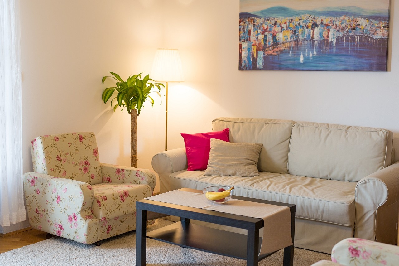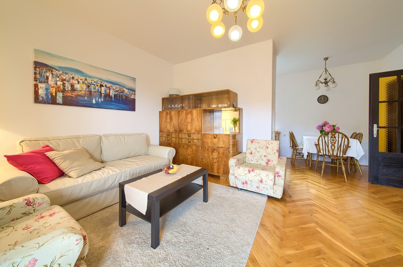 Apartment can accommodate 5 guests. Beds are situated in 2 sleeping rooms, but also in the living room, within 75m2. Guests can use a private terrace to enjoy the warm summer evenings. This accommodation unit welcomes pets at an additional charge. INCLUDED IN THE PRICE: tourist tax, final cleaning, air-conditioning, parking, internet. OBLIGATORY ADDITIONAL COSTS: short stay fee (surcharge depending on a number of booked nights: 30% - 1, 20% - 2, 10% - 3). OPTIONAL ADDITIONAL COSTS: pets (€10.00 per night). The availability of additional services for your chosen dates of stay, as well as their prices (if none are listed) must be checked ahead of time. Any additional services not shown in the price calculation are payable directly to the property owner and only if used by the visitor.