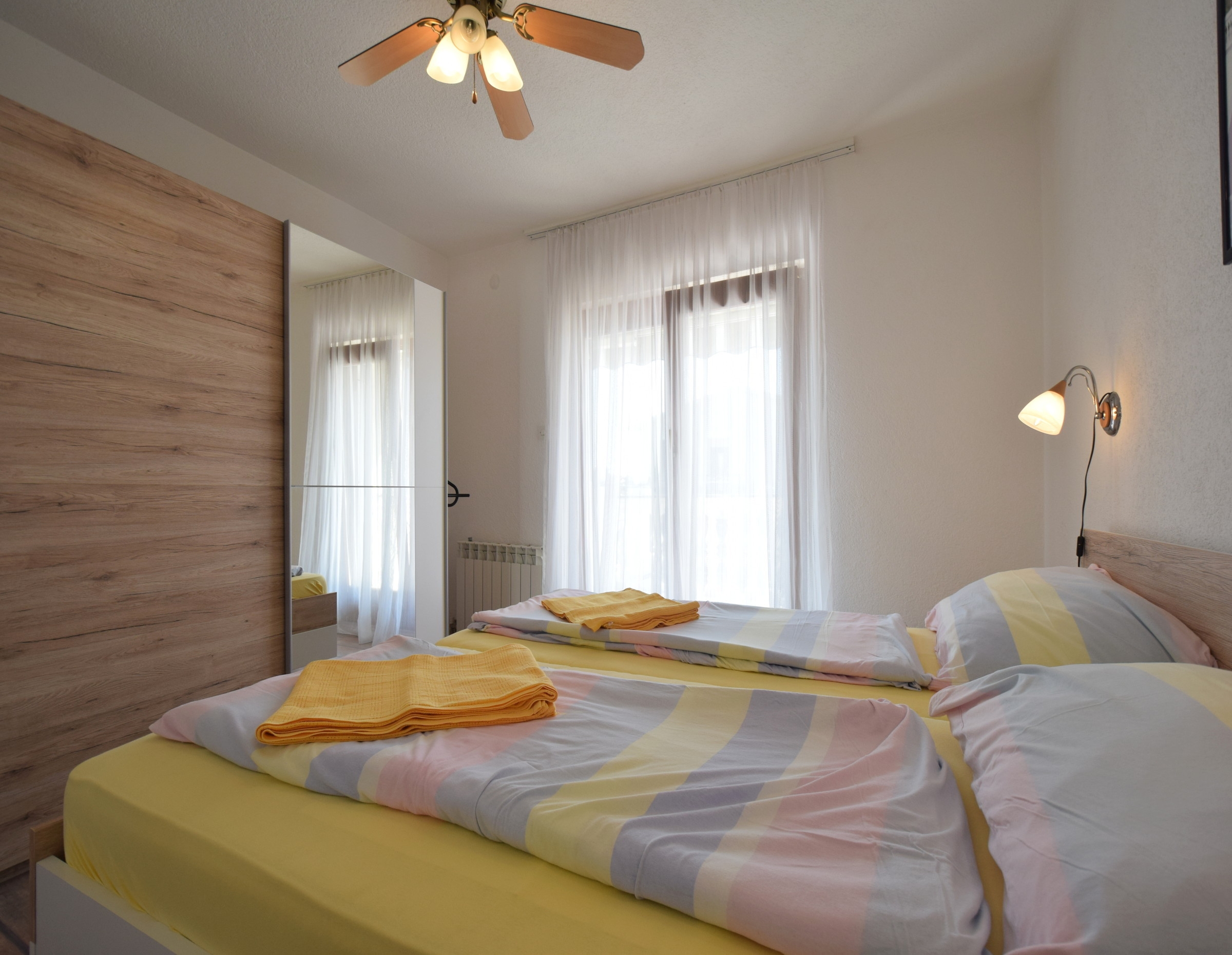 Apartment can accommodate 5 guests. Beds are situated in 2 sleeping rooms, but also in the living room, within 53m2. Guests can use a private terrace to enjoy the warm summer evenings. The apartment offers the sea view. Food can be prepared using barbecue which is shared with other guests too. This accommodation unit welcomes pets at an additional charge. INCLUDED IN THE PRICE: tourist tax, final cleaning, air-conditioning, parking, internet. OBLIGATORY ADDITIONAL COSTS: short stay fee (surcharge depending on a number of booked nights: 30% - 1, 20% - 2, 10% - 3). OPTIONAL ADDITIONAL COSTS: pets (€10.00 per night). The availability of additional services for your chosen dates of stay, as well as their prices (if none are listed) must be checked ahead of time. Any additional services not shown in the price calculation are payable directly to the property owner and only if used by the visitor.