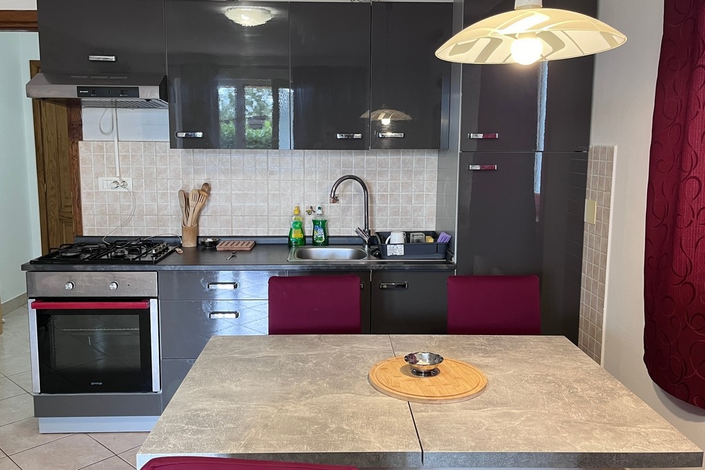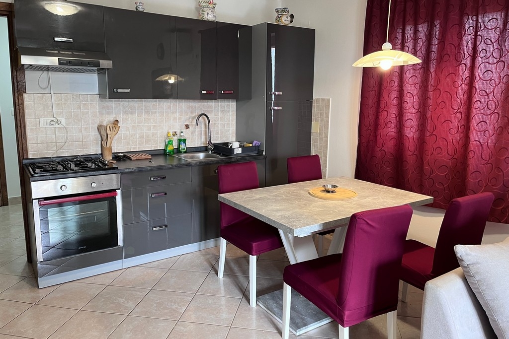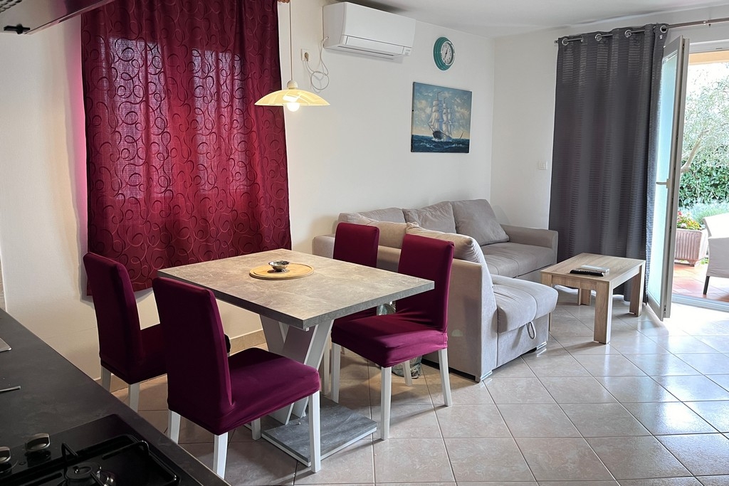 Apartment can accommodate 4 guests. Beds are situated in 1 sleeping rooms, but also in the living room, within 40m2. Guests can use a private terrace to enjoy the warm summer evenings. Food can be prepared using barbecue which is shared with other guests too. This accommodation unit welcomes pets at an additional charge. INCLUDED IN THE PRICE: tourist tax, final cleaning, air-conditioning, parking, internet. OPTIONAL ADDITIONAL COSTS: pets (€7.00 per night), additional bed (€15.00 per night). The availability of additional services for your chosen dates of stay, as well as their prices (if none are listed) must be checked ahead of time. Any additional services not shown in the price calculation are payable directly to the property owner and only if used by the visitor.