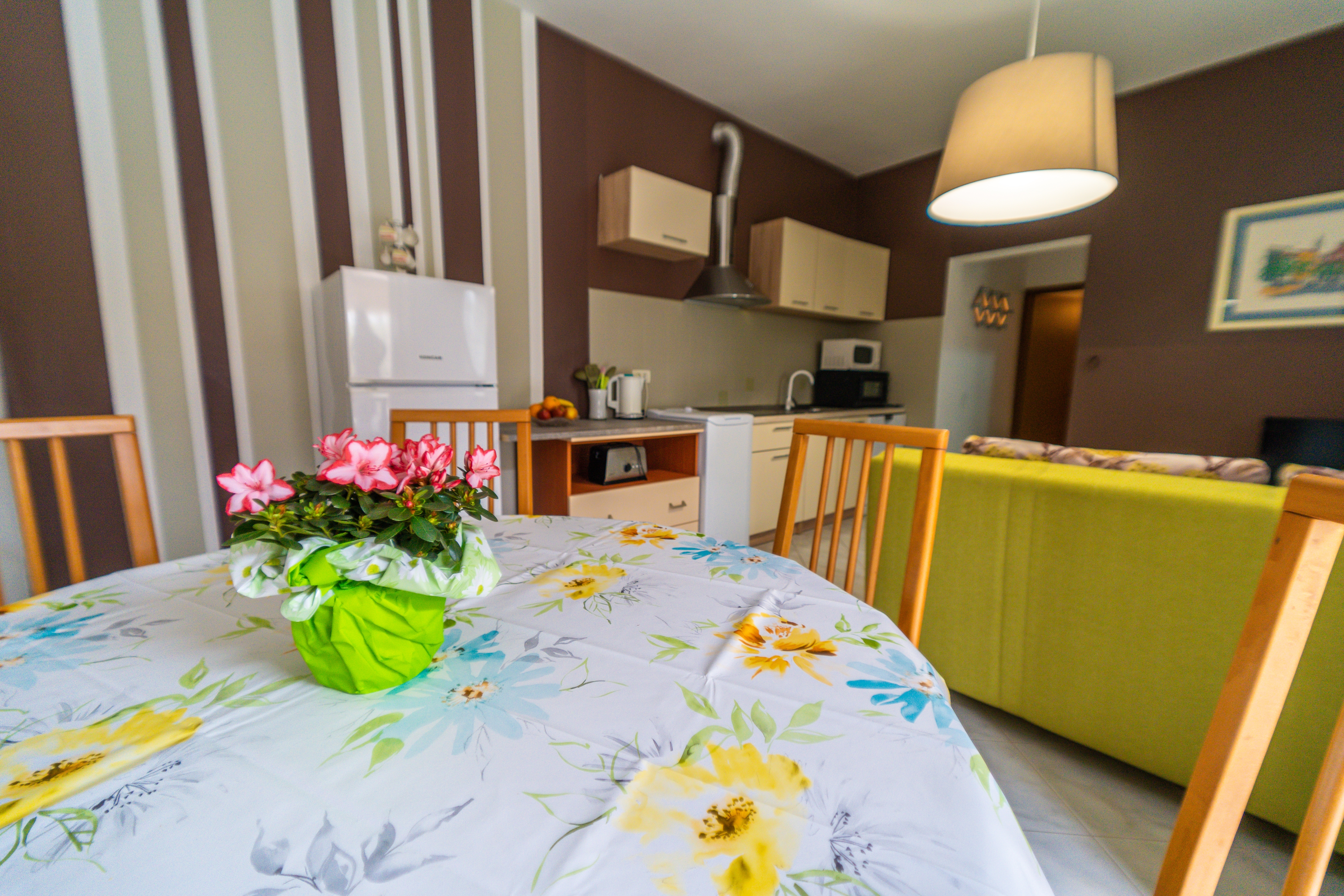 Apartment can accommodate 5 guests. Beds are situated in 2 sleeping rooms, but also in the living room, within 47m2. Guests can use a private terrace to enjoy the warm summer evenings. INCLUDED IN THE PRICE: tourist tax, final cleaning, air-conditioning, parking, internet, hairdryer. OBLIGATORY ADDITIONAL COSTS: short stay fee (surcharge depending on a number of booked nights: 30% - 1, 20% - 2, 10% - 3). The availability of additional services for your chosen dates of stay, as well as their prices (if none are listed) must be checked ahead of time. Any additional services not shown in the price calculation are payable directly to the property owner and only if used by the visitor.