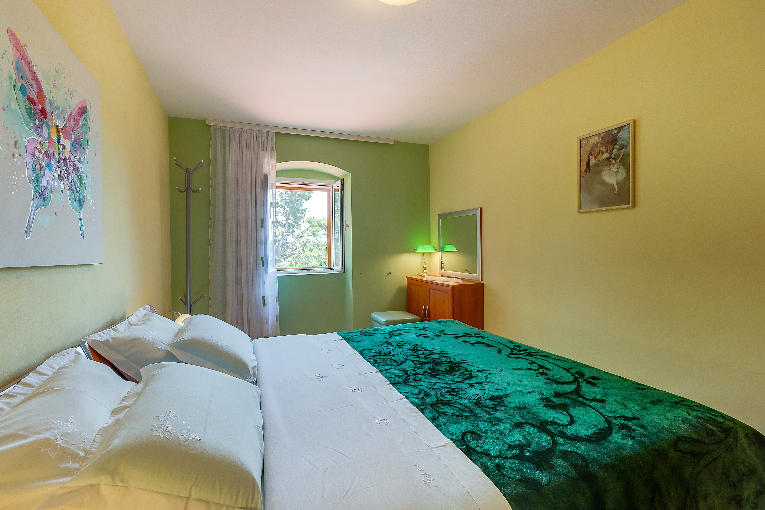 Apartment can accommodate 4 guests. Beds are situated in 2 sleeping rooms, within 58m2. Guests can use a private terrace to enjoy the warm summer evenings. Food can be prepared using barbecue which is shared with other guests too. INCLUDED IN THE PRICE: tourist tax, final cleaning, air-conditioning, parking, internet, hairdryer. OBLIGATORY ADDITIONAL COSTS: short stay fee (surcharge depending on a number of booked nights: 30% - 1, 20% - 2, 10% - 3). OPTIONAL ADDITIONAL COSTS: additional bed (€10.00 per night). The availability of additional services for your chosen dates of stay, as well as their prices (if none are listed) must be checked ahead of time. Any additional services not shown in the price calculation are payable directly to the property owner and only if used by the visitor.