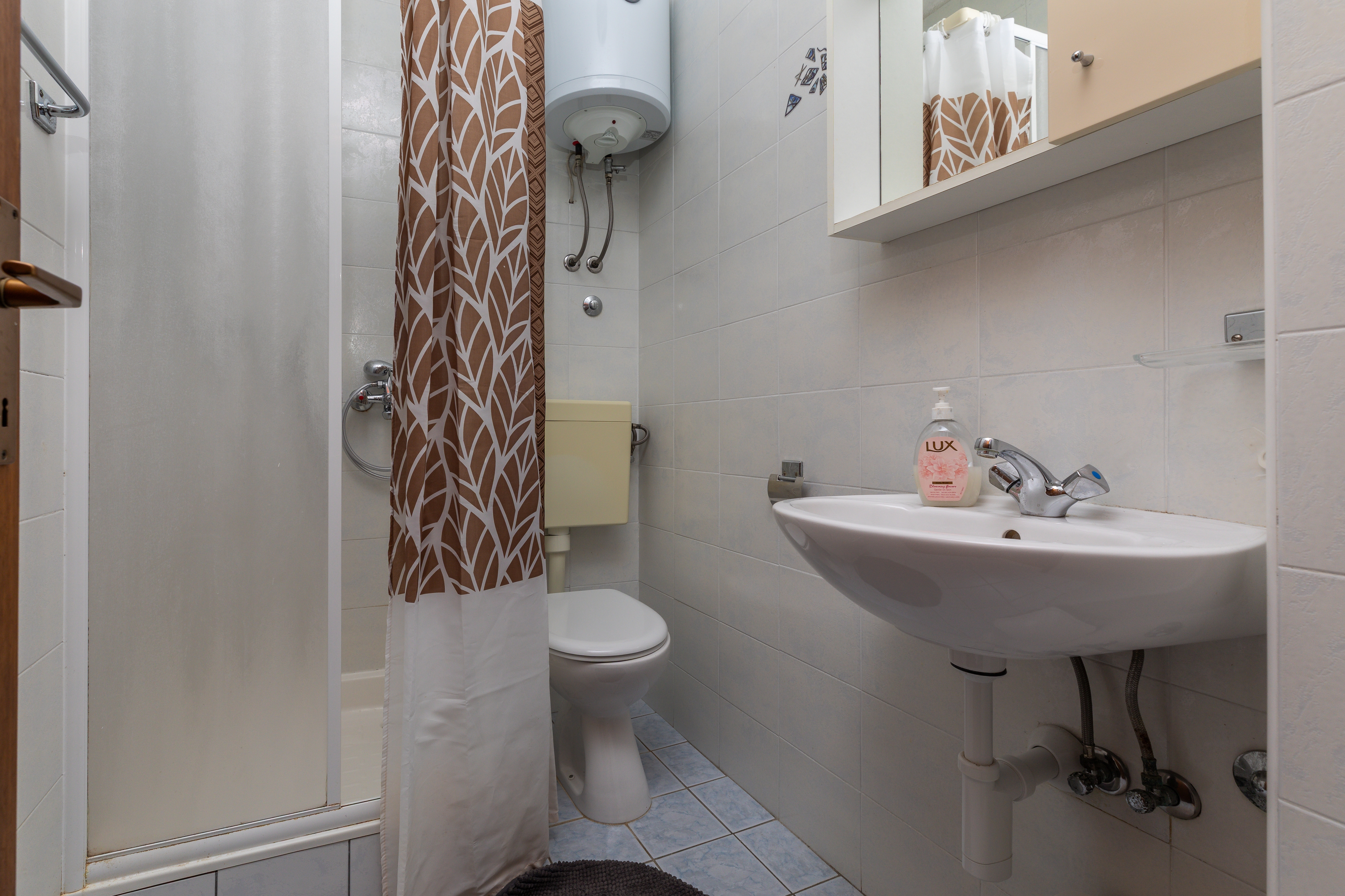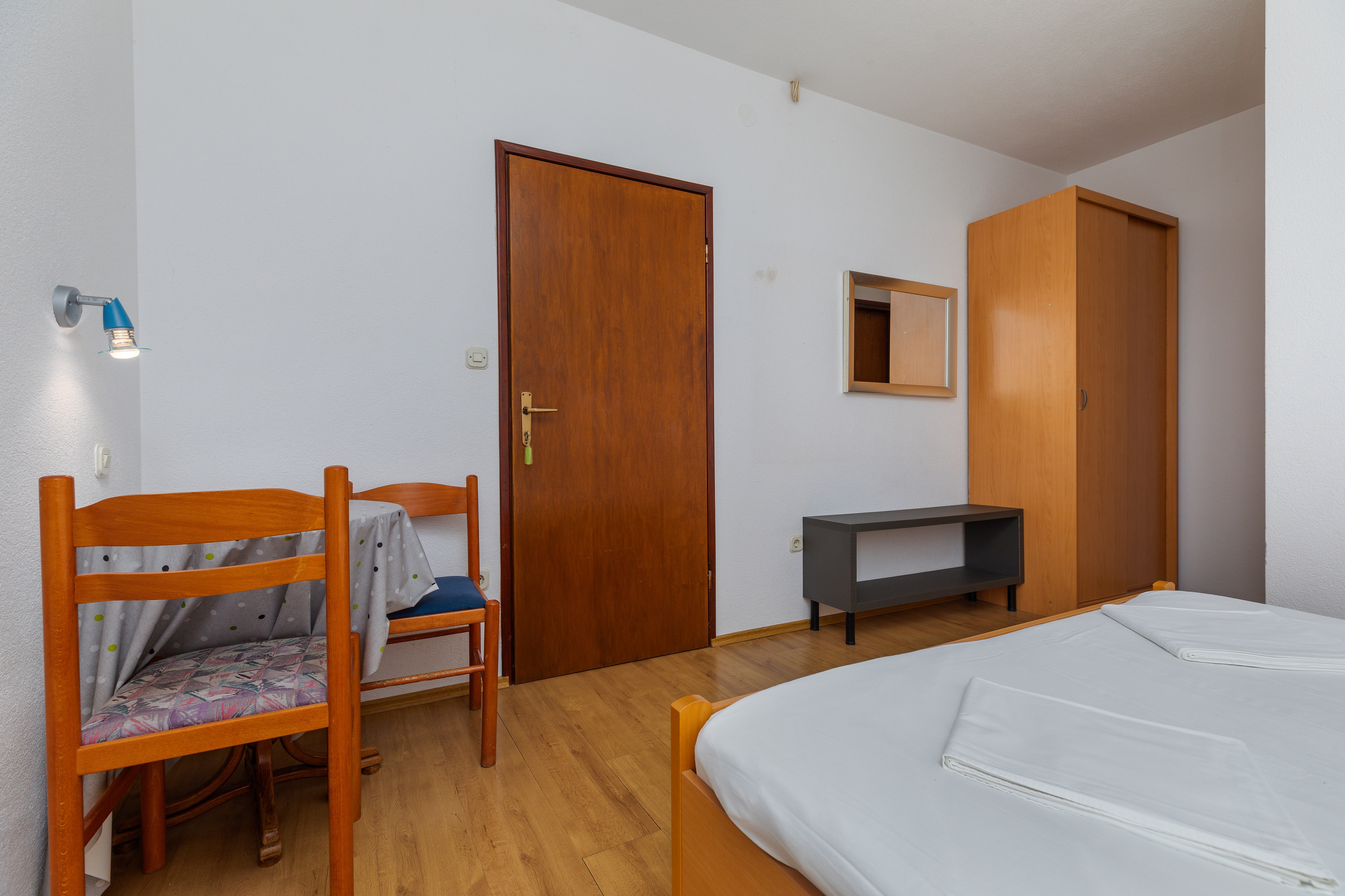 Room can accommodate 2 guests. Beds are situated in 1 sleeping rooms, within 17m2. Use of shared kitchen is possible. Guests can use a private balcony to enjoy the warm summer evenings. The room offers the sea view. Food can be prepared using barbecue which is shared with other guests too. Reserved accommodation unit is a room with its own bathroom and shared kitchen at no additional charge. INCLUDED IN THE PRICE: tourist tax, final cleaning, air-conditioning, shared kitchen, parking, internet, iron, ironing board, hairdryer. OPTIONAL ADDITIONAL COSTS: laundry (€5.00 washing). The availability of additional services for your chosen dates of stay, as well as their prices (if none are listed) must be checked ahead of time. Any additional services not shown in the price calculation are payable directly to the property owner and only if used by the visitor.