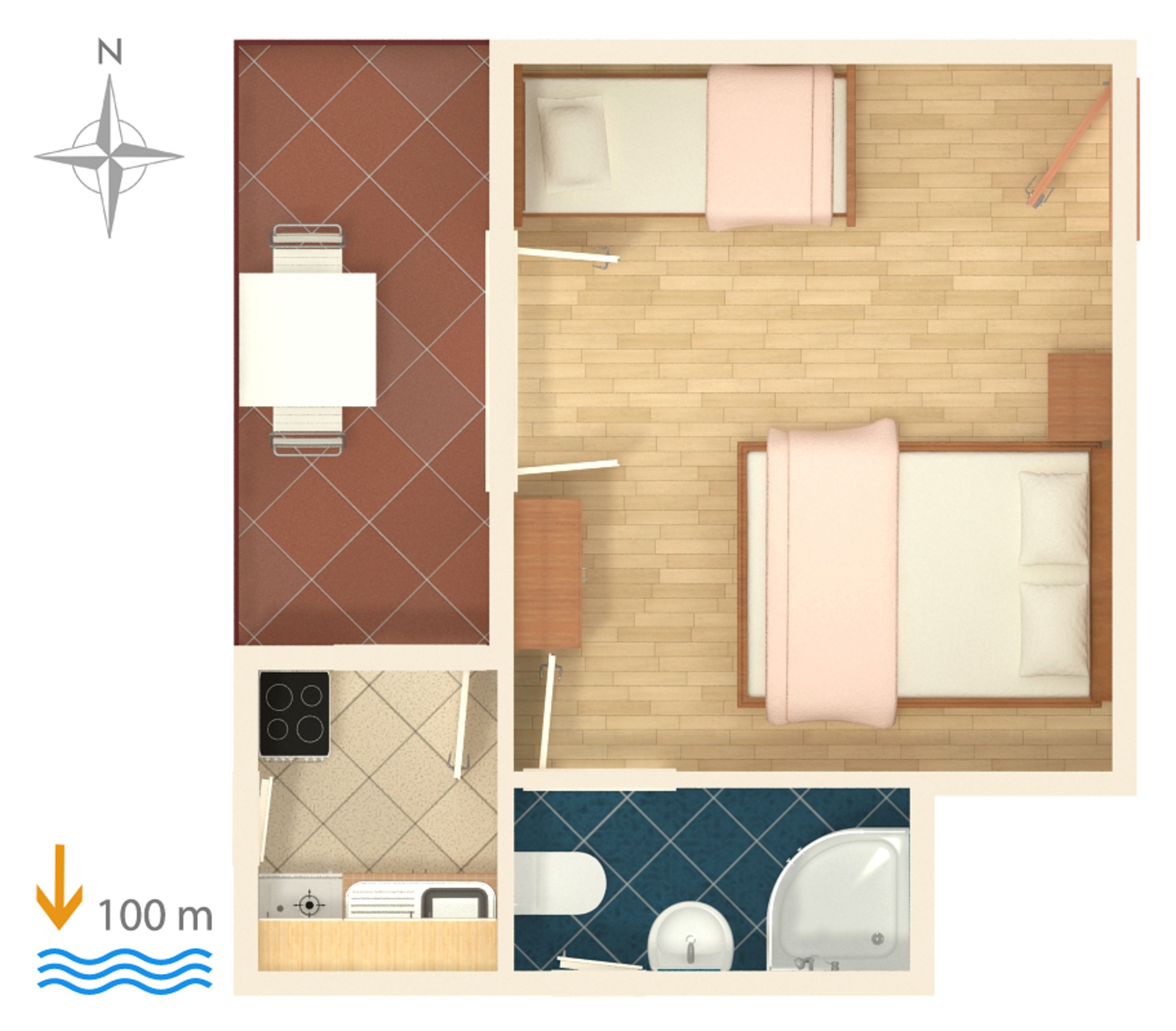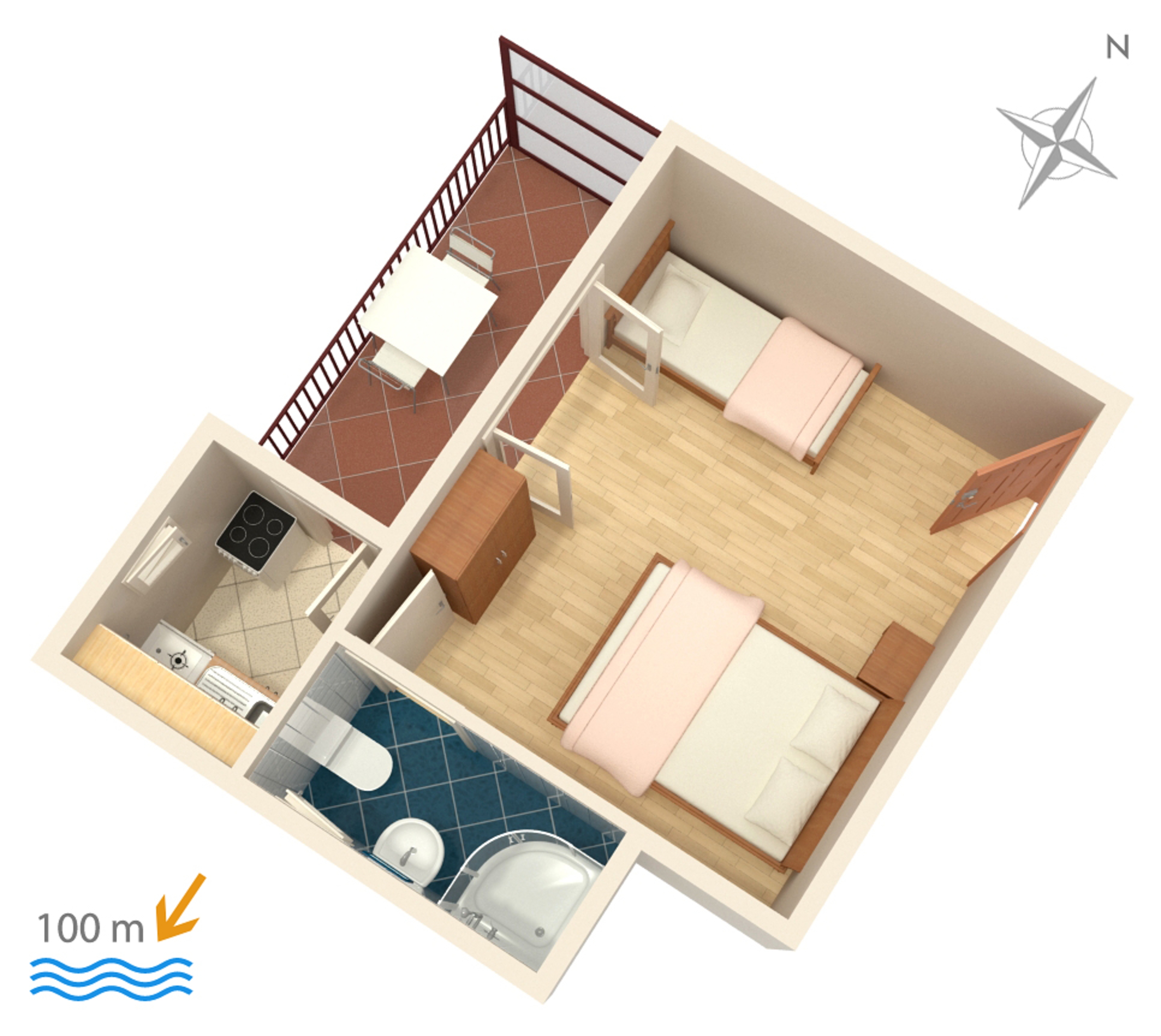 Studio flat can accommodate 3 guests. Beds are situated in 1 sleeping rooms, within 19m2. Guests can use a private balcony to enjoy the warm summer evenings. The studio offers the sea view. Food can be prepared using barbecue which is shared with other guests too. INCLUDED IN THE PRICE: tourist tax, final cleaning, air-conditioning, parking, internet, iron, ironing board, hairdryer. OBLIGATORY ADDITIONAL COSTS: short stay fee (surcharge depending on a number of booked nights: 30% - 1, 20% - 2, 10% - 3). The availability of additional services for your chosen dates of stay, as well as their prices (if none are listed) must be checked ahead of time. Any additional services not shown in the price calculation are payable directly to the property owner and only if used by the visitor.