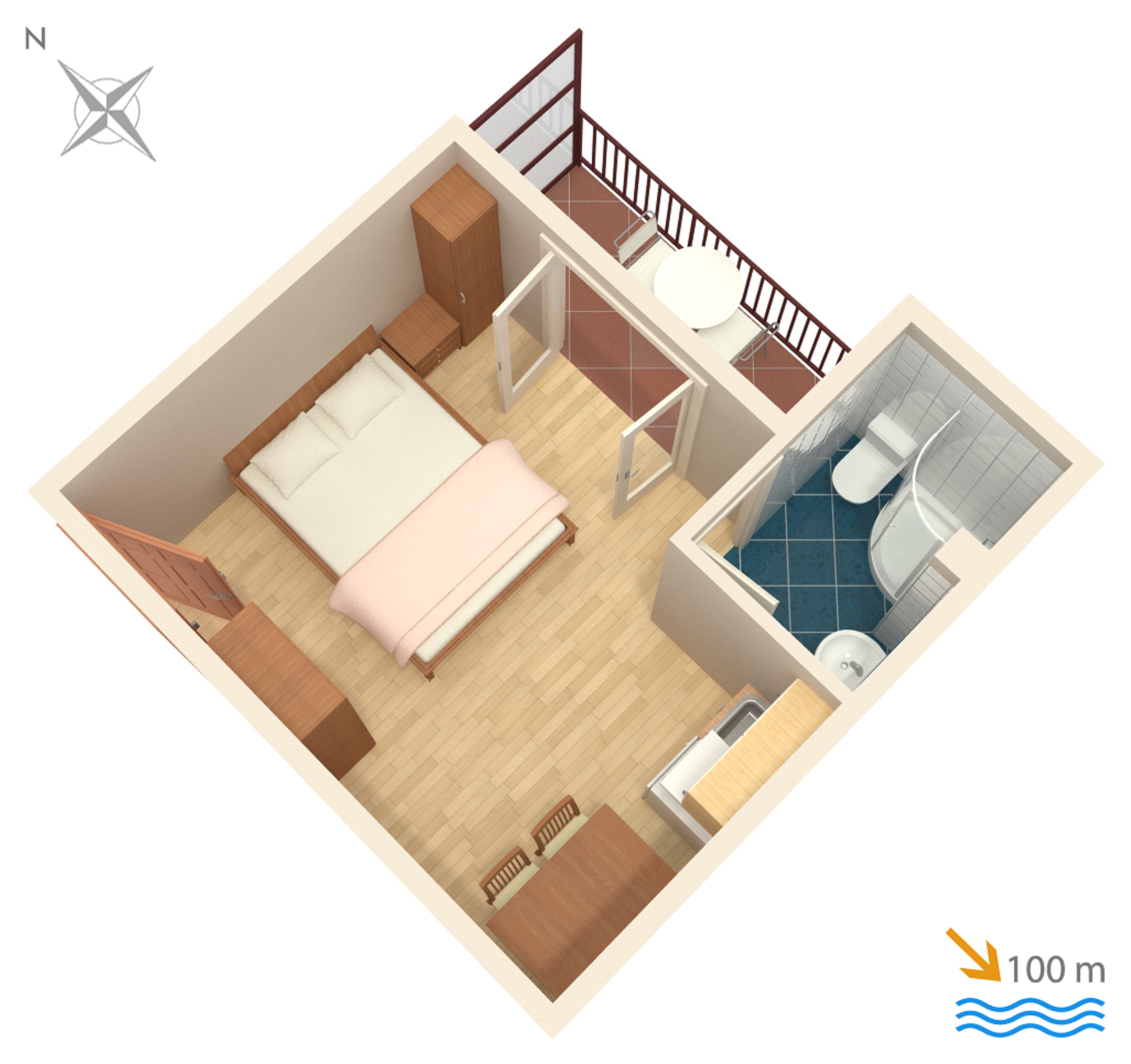 Studio flat can accommodate 2 guests. Beds are situated in 1 sleeping rooms, within 16m2. Guests can use a private balcony to enjoy the warm summer evenings. Food can be prepared using barbecue which is shared with other guests too. INCLUDED IN THE PRICE: tourist tax, final cleaning, air-conditioning, parking, internet, iron, ironing board, hairdryer. OBLIGATORY ADDITIONAL COSTS: short stay fee (surcharge depending on a number of booked nights: 30% - 1, 20% - 2, 10% - 3). The availability of additional services for your chosen dates of stay, as well as their prices (if none are listed) must be checked ahead of time. Any additional services not shown in the price calculation are payable directly to the property owner and only if used by the visitor.