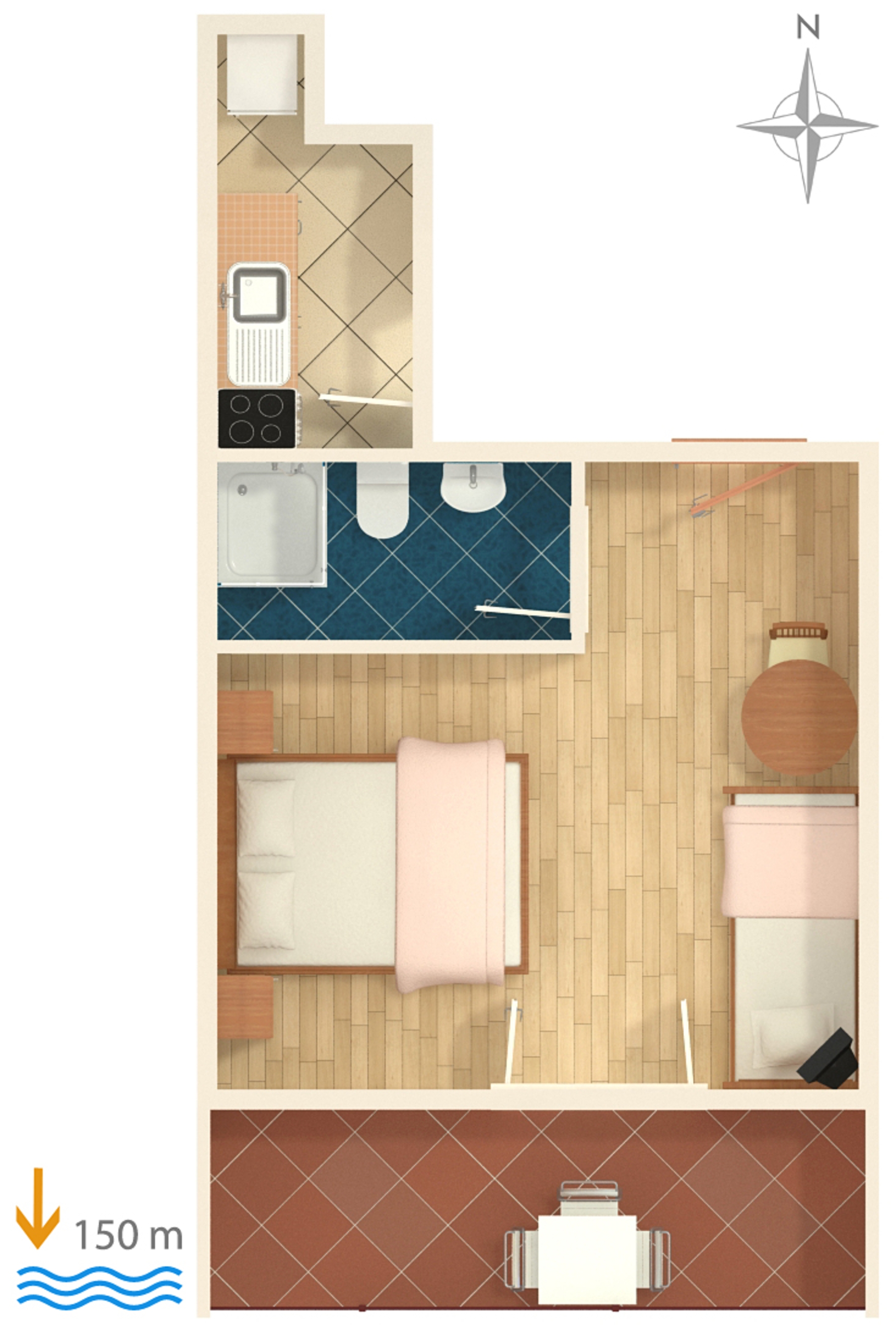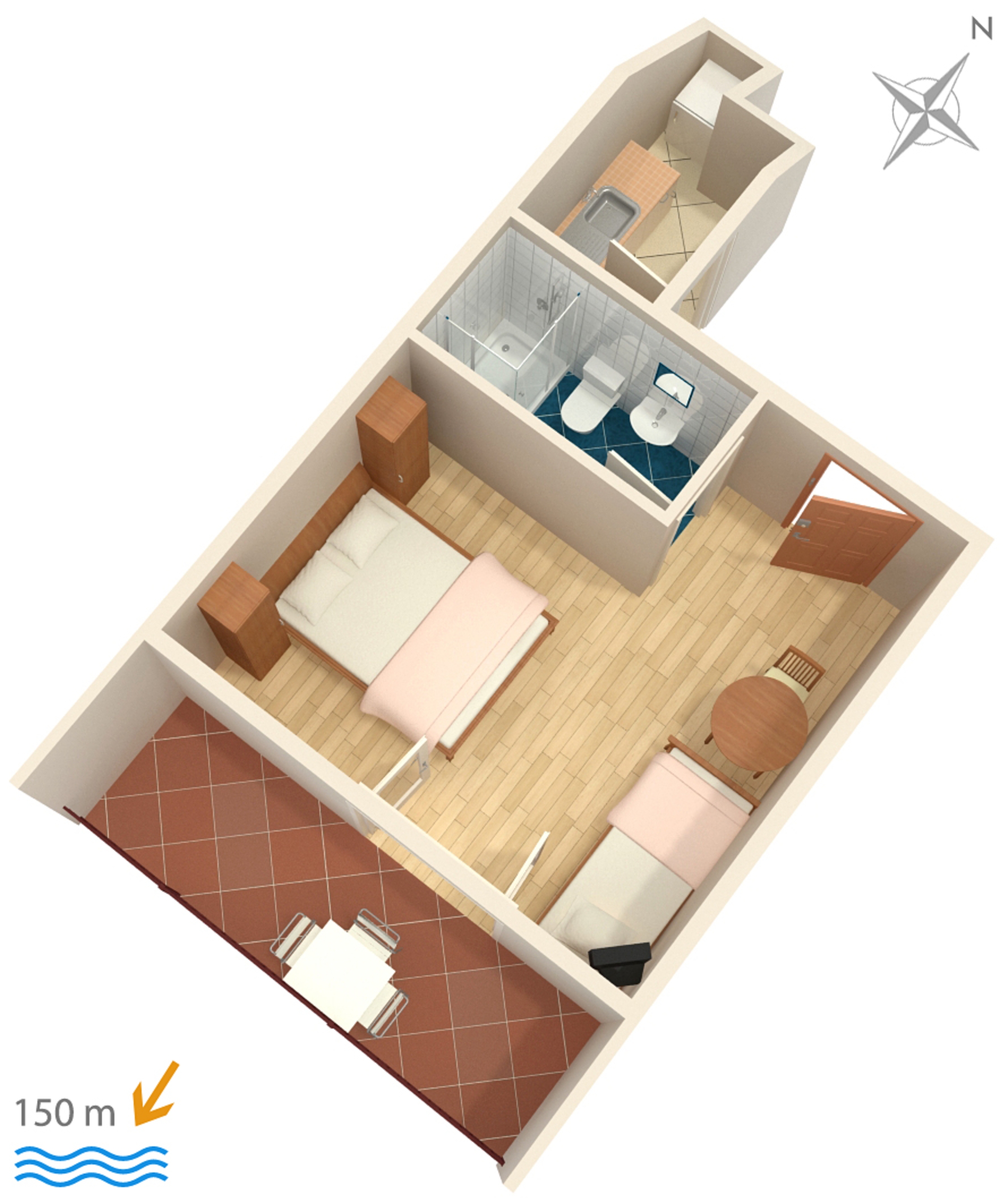 Studio flat can accommodate 3 guests. Beds are situated in 1 sleeping rooms, within 19m2. Guests can use a private balcony to enjoy the warm summer evenings. The studio offers the sea view. Some of the rooms of the accommodation unit are not connected with the rest of the unit. INCLUDED IN THE PRICE: tourist tax, final cleaning, air-conditioning, parking, internet. OBLIGATORY ADDITIONAL COSTS: short stay fee (surcharge depending on a number of booked nights: 30% - 1, 20% - 2, 10% - 3). The availability of additional services for your chosen dates of stay, as well as their prices (if none are listed) must be checked ahead of time. Any additional services not shown in the price calculation are payable directly to the property owner and only if used by the visitor.