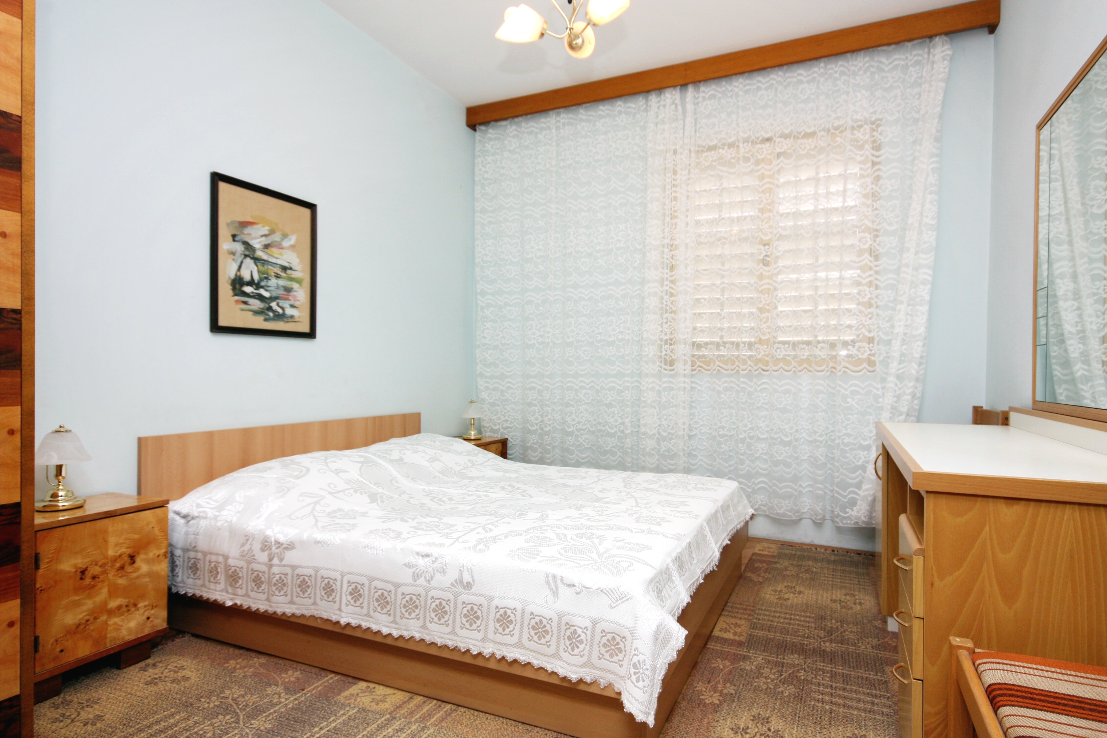 Apartment can accommodate 5 guests. Beds are situated in 2 sleeping rooms, within 63m2. Guests can use a private balcony to enjoy the warm summer evenings. The apartment offers the sea view. INCLUDED IN THE PRICE: tourist tax, final cleaning, air-conditioning, parking, internet, iron, ironing board. OPTIONAL ADDITIONAL COSTS: boat mooring (€10.00 per night). The availability of additional services for your chosen dates of stay, as well as their prices (if none are listed) must be checked ahead of time. Any additional services not shown in the price calculation are payable directly to the property owner and only if used by the visitor. Discounts to the base price: free day 14=13 (for reservations of 14 or more days you get one free day for the stay until 31122026).