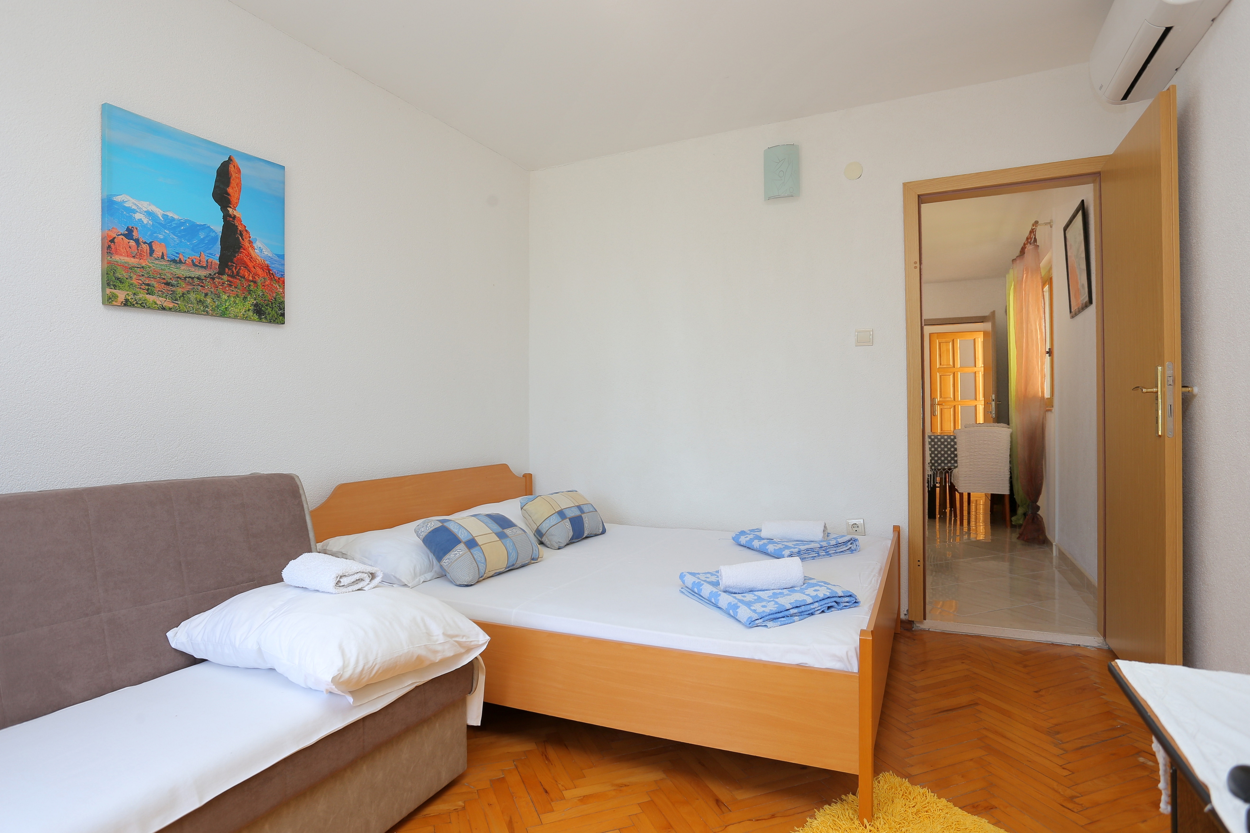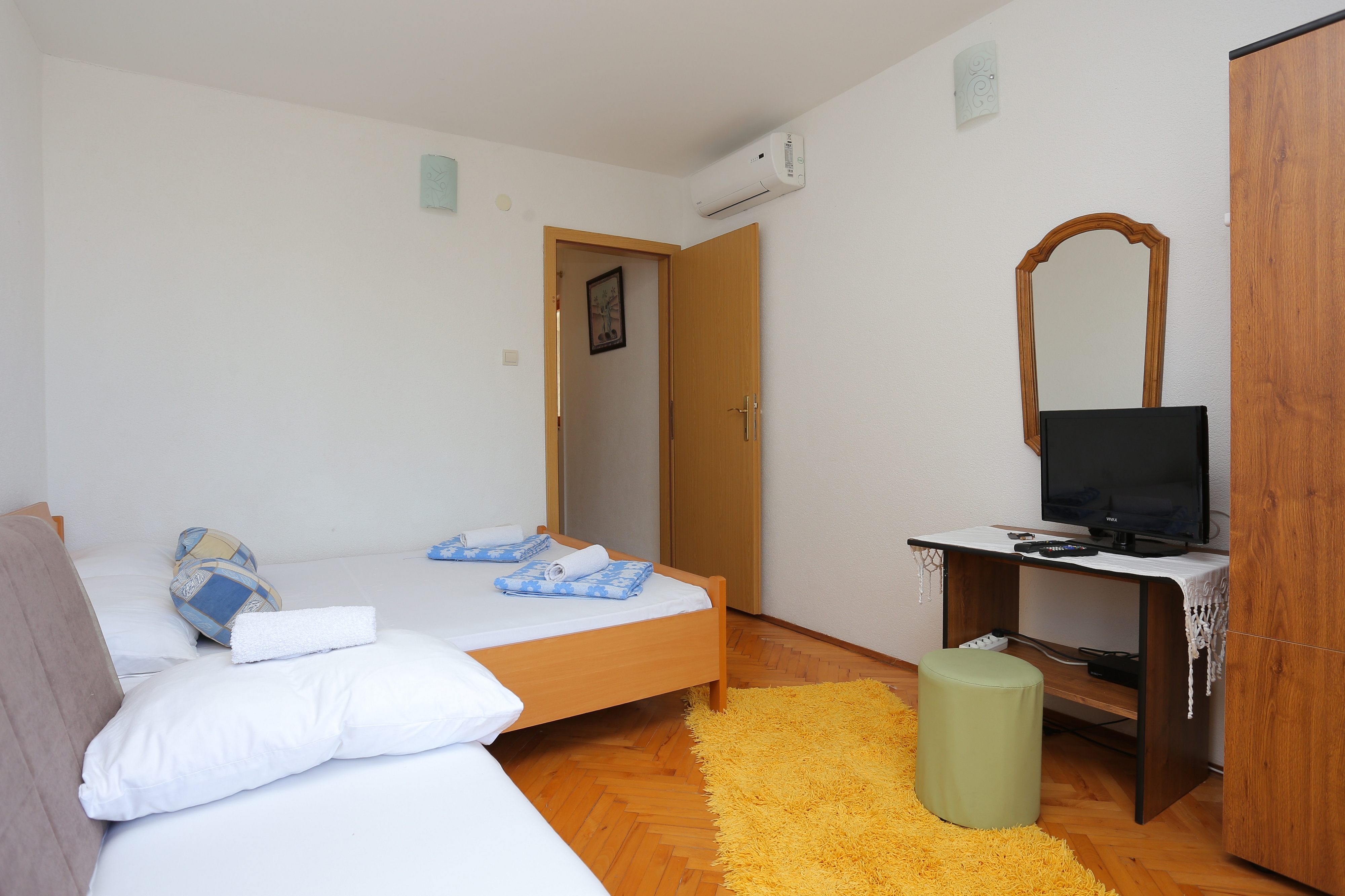 Apartment can accommodate 4 guests. Beds are situated in 1 sleeping rooms, within 29m2. Guests can use a private balcony to enjoy the warm summer evenings. The apartment offers the sea view. Food can be prepared using barbecue which is shared with other guests too. INCLUDED IN THE PRICE: tourist tax, final cleaning, air-conditioning, parking, internet, hairdryer, 1 bed for children (included in the price). OBLIGATORY ADDITIONAL COSTS: short stay fee (surcharge depending on a number of booked nights: 30% - 1, 20% - 2, 10% - 3). The availability of additional services for your chosen dates of stay, as well as their prices (if none are listed) must be checked ahead of time. Any additional services not shown in the price calculation are payable directly to the property owner and only if used by the visitor. Discounts to the base price: free day 14=13 (for reservations of 14 or more days you get one free day for the stay until 31122026).