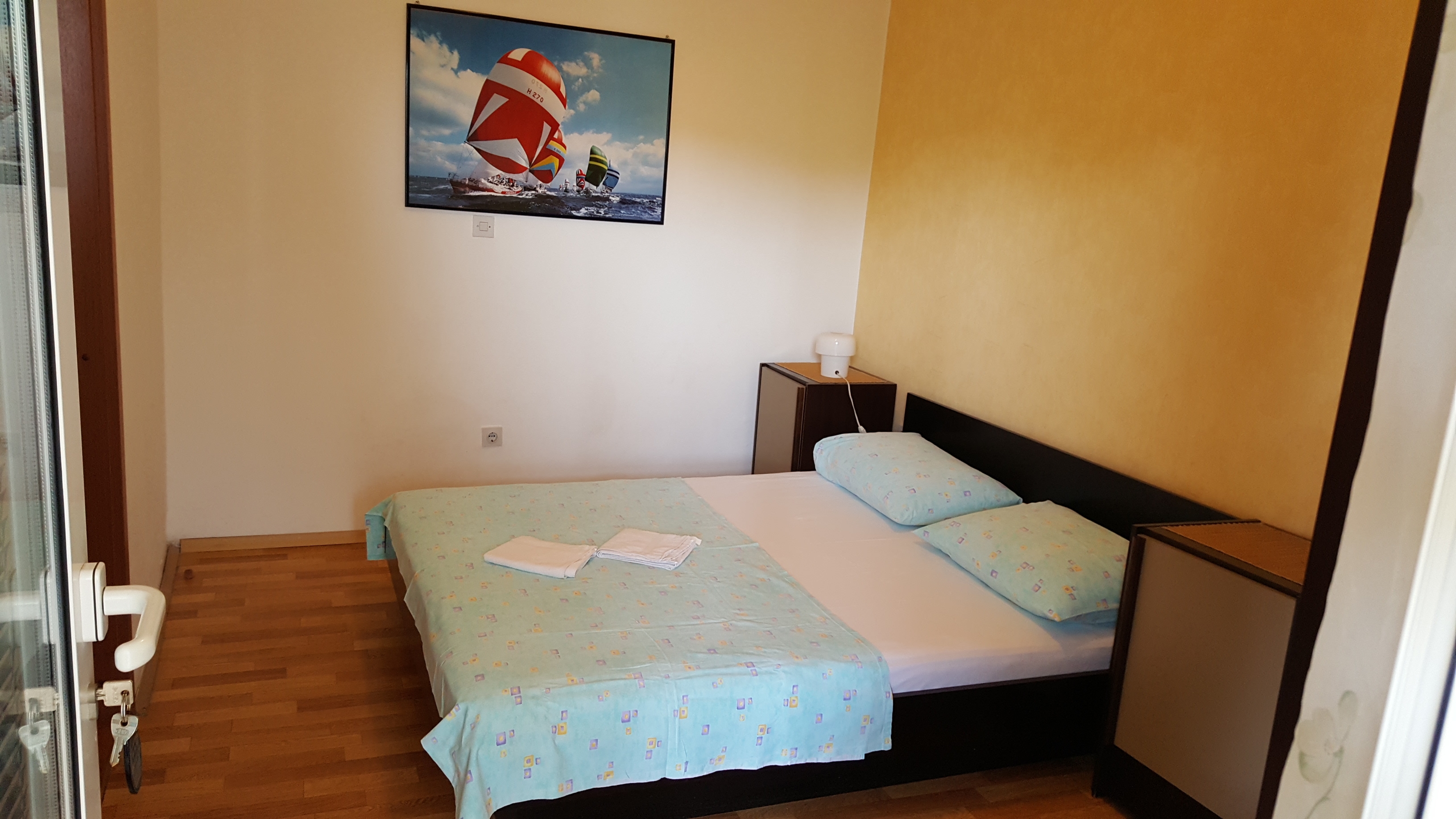 Apartment can accommodate 3 guests. Beds are situated in 1 sleeping rooms, but also in the living room, within 27m2. Guests can use a private terrace to enjoy the warm summer evenings. Food can be prepared using barbecue which is shared with other guests too. This accommodation unit welcomes pets at an additional charge. Other guests or hosts pass through the terrace of the booked accommodation unit. Notthe rooms of the booked accommodation unit are connectedone whole. INCLUDED IN THE PRICE: tourist tax, final cleaning, air-conditioning, parking, internet, hairdryer. OBLIGATORY ADDITIONAL COSTS: short stay fee (surcharge depending on a number of booked nights: 30% - 1, 20% - 2, 10% - 3). OPTIONAL ADDITIONAL COSTS: laundry (€5.00 washing), pets (€5.00 per night). The availability of additional services for your chosen dates of stay, as well as their prices (if none are listed) must be checked ahead of time. Any additional services not shown in the price calculation are payable directly to the property owner and only if used by the visitor.