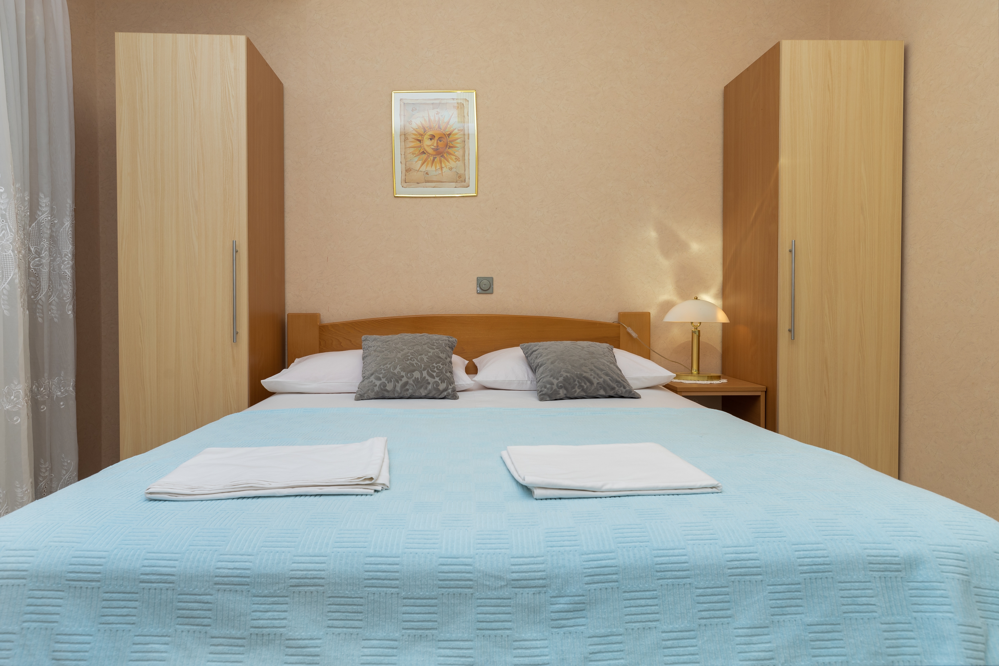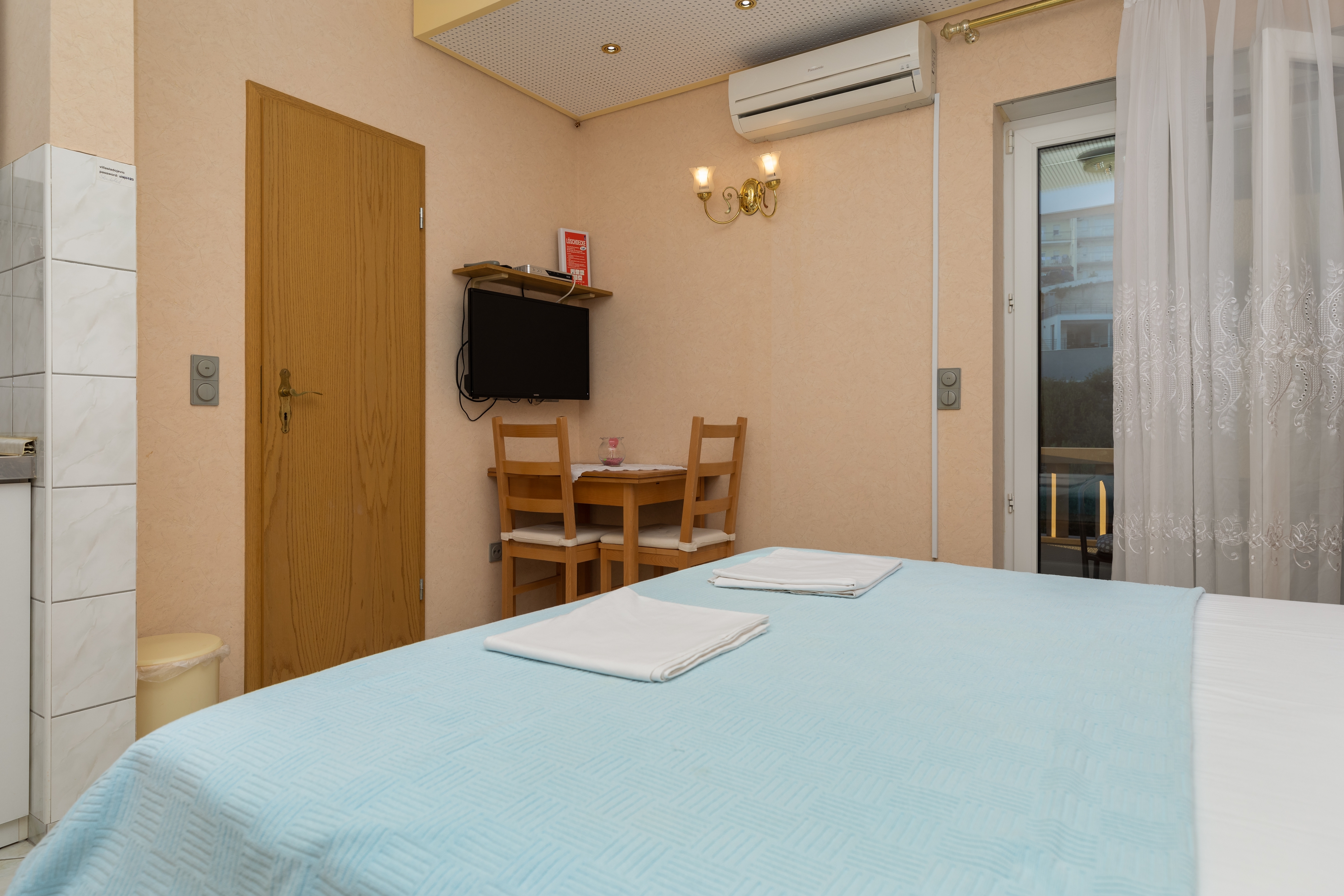 Studio flat can accommodate 2 guests. Beds are situated in 1 sleeping rooms, within 16m2. Guests can use a private balcony to enjoy the warm summer evenings. Food can be prepared using barbecue which is shared with other guests too. INCLUDED IN THE PRICE: tourist tax, final cleaning, air-conditioning, parking, internet, iron, ironing board. OBLIGATORY ADDITIONAL COSTS: short stay fee (surcharge depending on a number of booked nights: 30% - 1, 20% - 2, 10% - 3). OPTIONAL ADDITIONAL COSTS: central heating (€5.00 per night), laundry (€7.00 washing). The availability of additional services for your chosen dates of stay, as well as their prices (if none are listed) must be checked ahead of time. Any additional services not shown in the price calculation are payable directly to the property owner and only if used by the visitor. Discounts to the base price: free day 14=13 (for reservations of 14 or more days you get one free day for the stay until 31122026).
