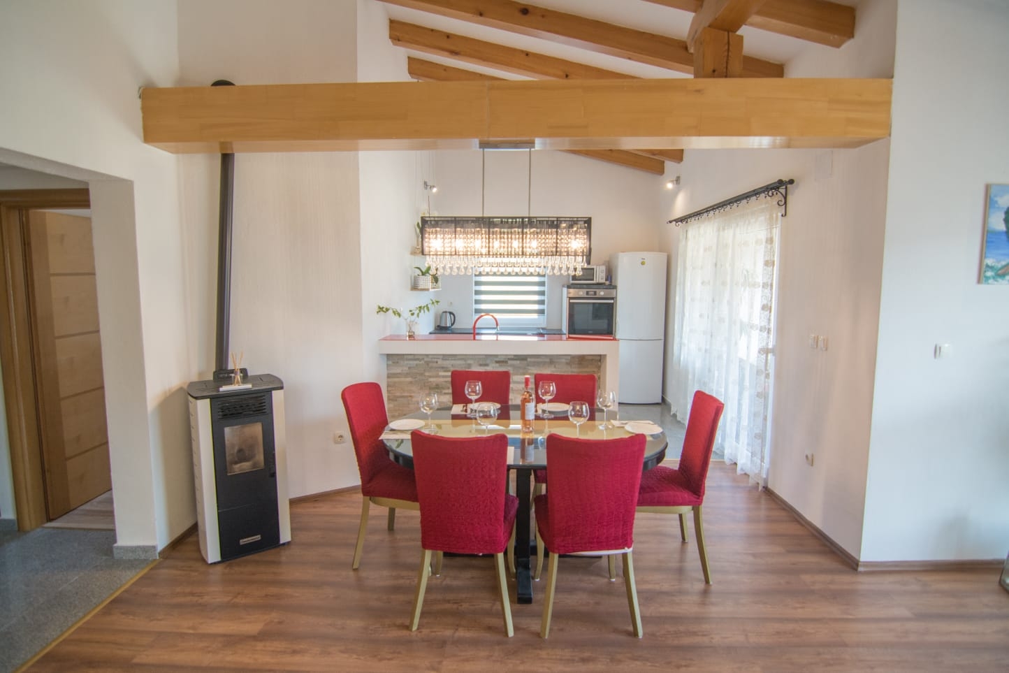 Apartment can accommodate 6 guests. Beds are situated in 3 sleeping rooms, but also in the living room, within 86m2. Guests can use a private terrace to enjoy the warm summer evenings. For full enjoyment and relaxation there is a private barbecue for this accommodation guests only. During stay, there is a private pool for relaxation and pleasure. INCLUDED IN THE PRICE: tourist tax, final cleaning, air-conditioning, pool, parking, internet, iron, ironing board, hairdryer. The availability of additional services for your chosen dates of stay, as well as their prices (if none are listed) must be checked ahead of time. Any additional services not shown in the price calculation are payable directly to the property owner and only if used by the visitor.