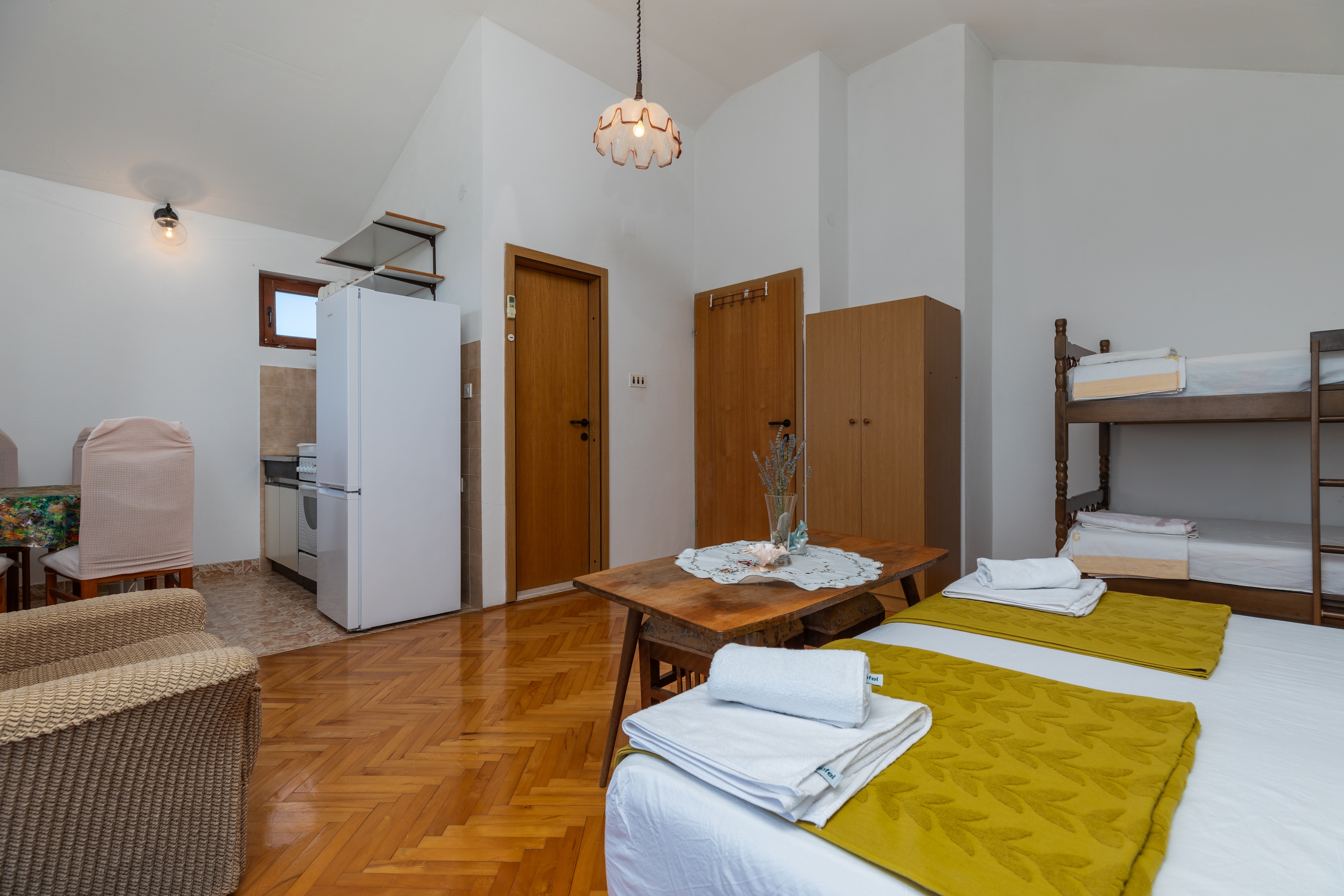 House 21608 in the town of Marušići, Omiš - Central Dalmatia has accommodation units of type Studio flat (2) and is 300 m away from the sea. The nearest beach to this accommodation is a pebble beach. As the house is dividedseveral accommodation units, other guests will most likely be present during your stay. The hosts will be in the house during your holiday. The house owner is under no obligation to accept additional persons and pets that were not stated in the reservation request and it is necessary to report them in advance.AMENITIES Courtyard (300m2), Parking lot (Number of parking spaces: 2, Distance from the house: In the courtyard), Barbecue: shared, WiFi Internet, Laundry service, Hairdryer, Iron, Ironing board LOCATION AND ACCESS Facility is situated near the Adriatic highway The Adriatic highway between the property and the beach Car access possible: Yes The facility is not located in quiet surroundings The facility is partly surrounded by vegetation DISTANCES Sea: 300 m Beach: 300 m Center: 13 km Shop: 100 m Urgent medical care: 13 km Pharmacy: 13 km ATMBank machine: 1.7 km Tourist info: 1.7 km