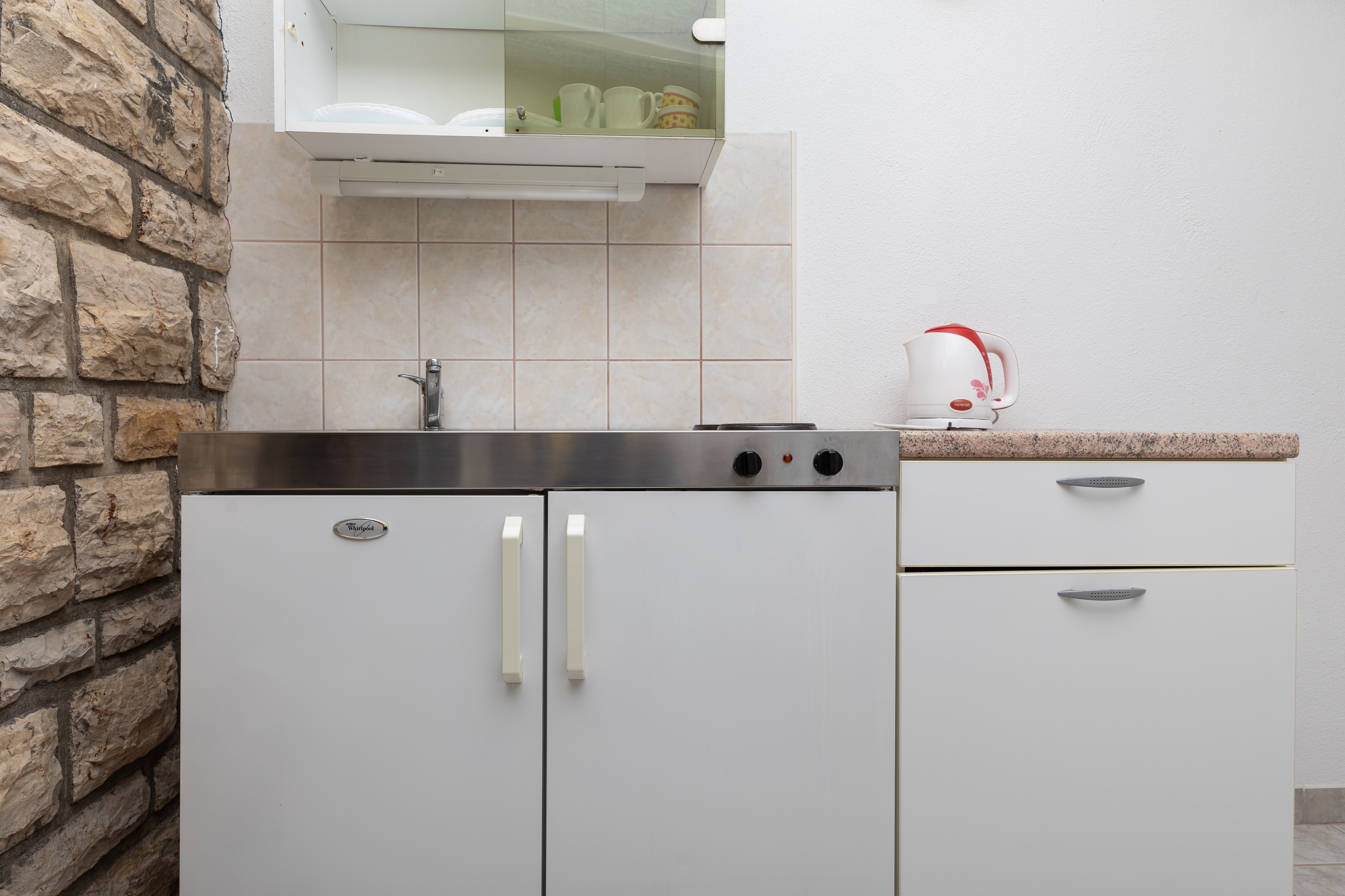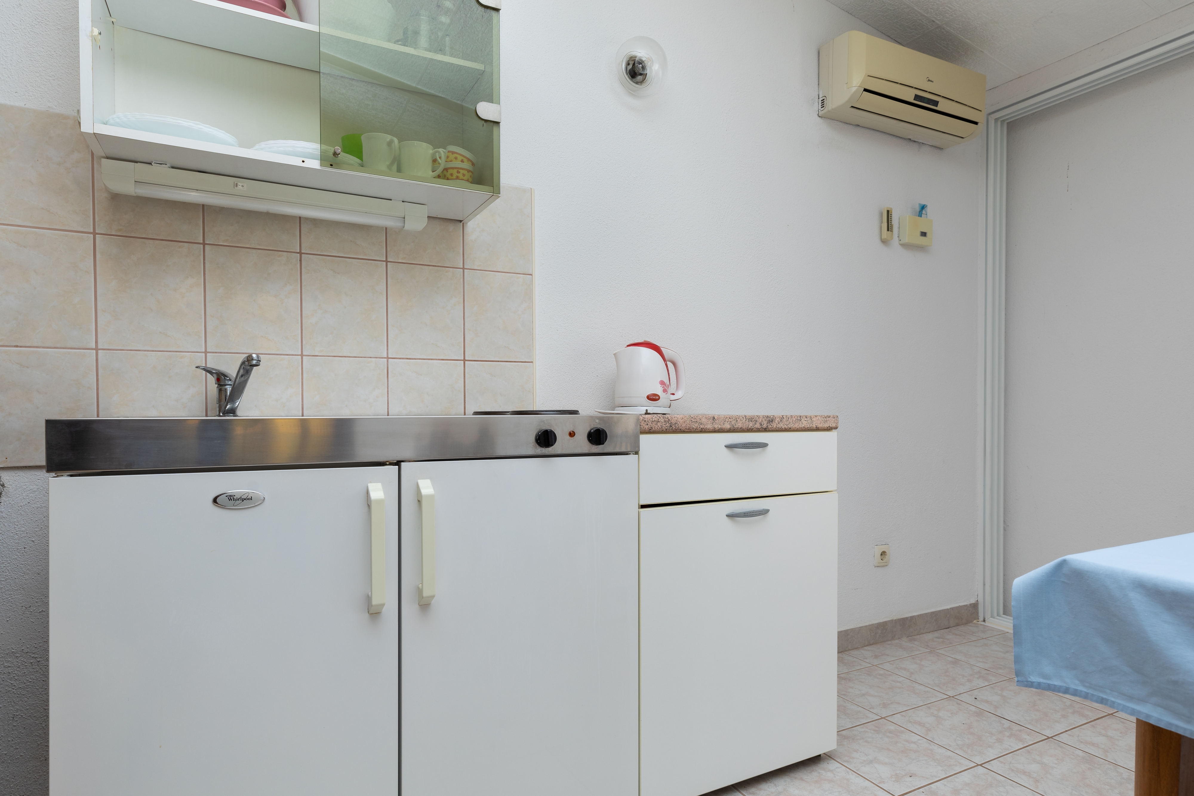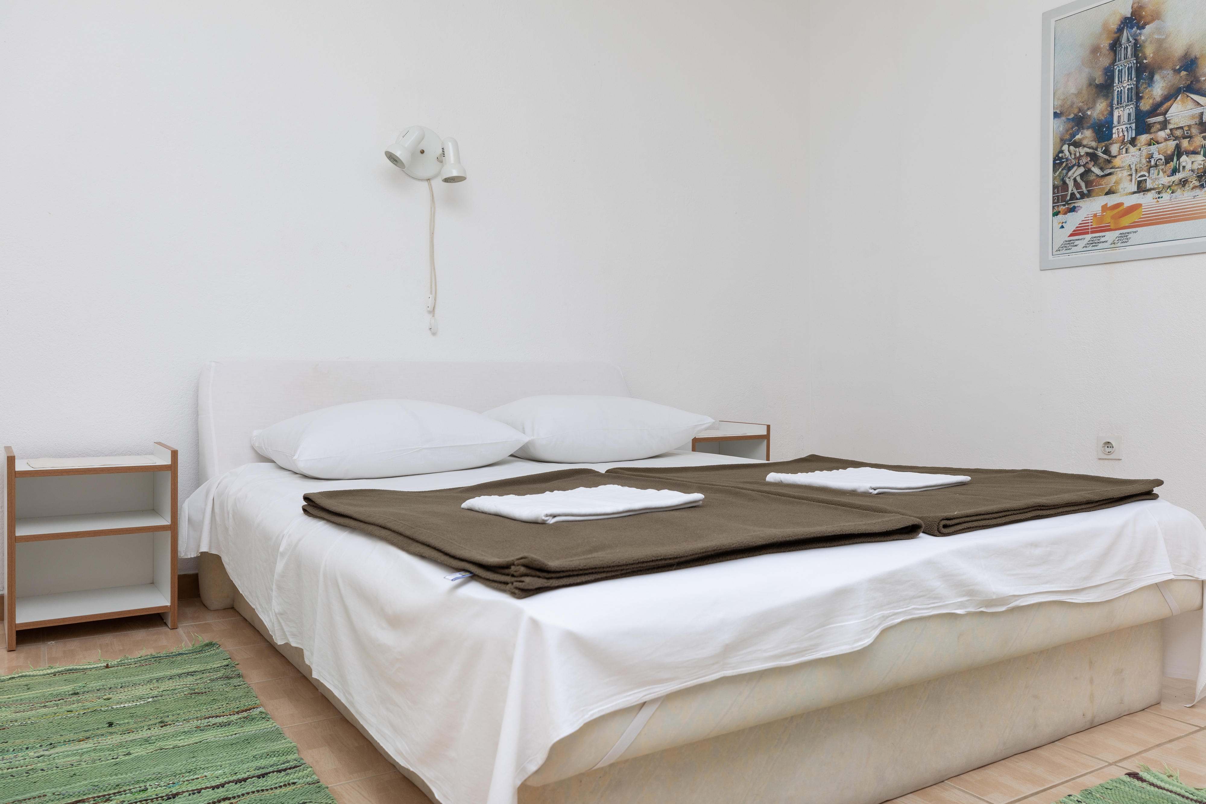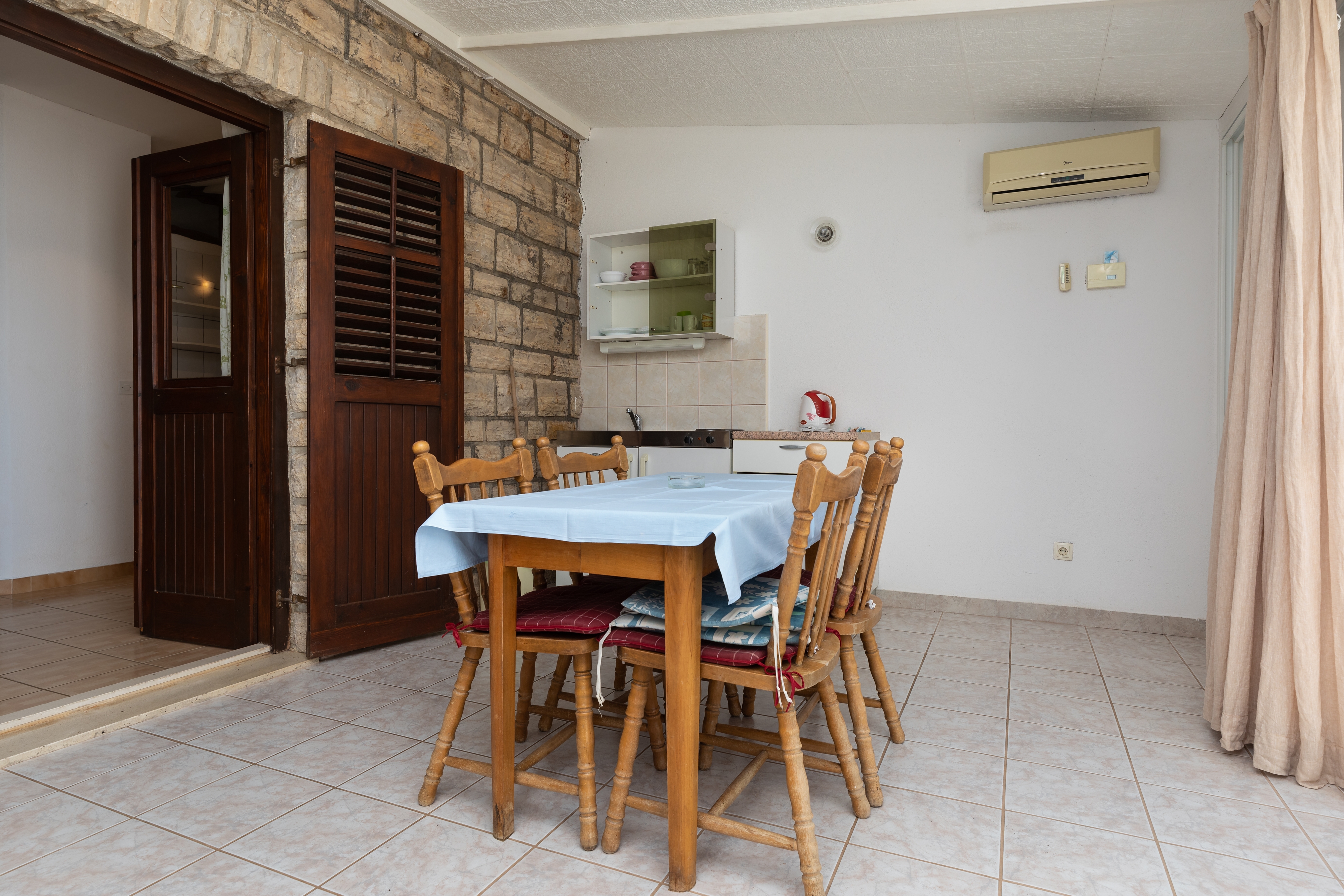 Apartment can accommodate 2 guests. Beds are situated in 1 sleeping rooms, within 38m2. Guests can use a private terrace to enjoy the warm summer evenings. The apartment offers the sea view. Food can be prepared using barbecue which is shared with other guests too. This accommodation unit welcomes pets at an additional charge. INCLUDED IN THE PRICE: tourist tax, final cleaning, parking, internet, laundry, baby cot, iron, hairdryer, sunshade. OBLIGATORY ADDITIONAL COSTS: short stay fee (surcharge depending on a number of booked nights: 30% - 1, 20% - 2, 10% - 3). OPTIONAL ADDITIONAL COSTS: air-conditioning (€0.30 per hour), pets (€5.00 per night), additional bed (€5.00 per night). The availability of additional services for your chosen dates of stay, as well as their prices (if none are listed) must be checked ahead of time. Any additional services not shown in the price calculation are payable directly to the property owner and only if used by the visitor.