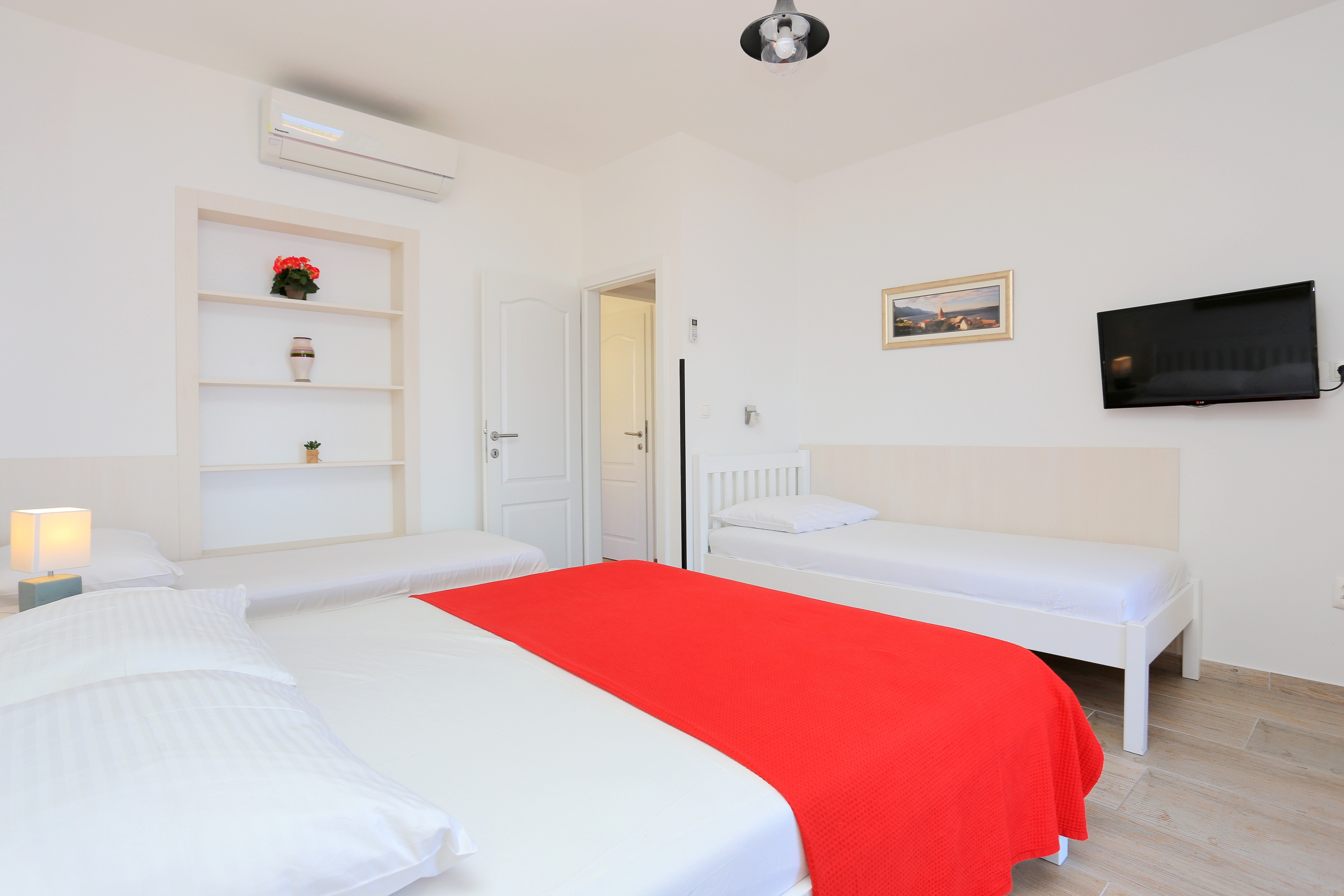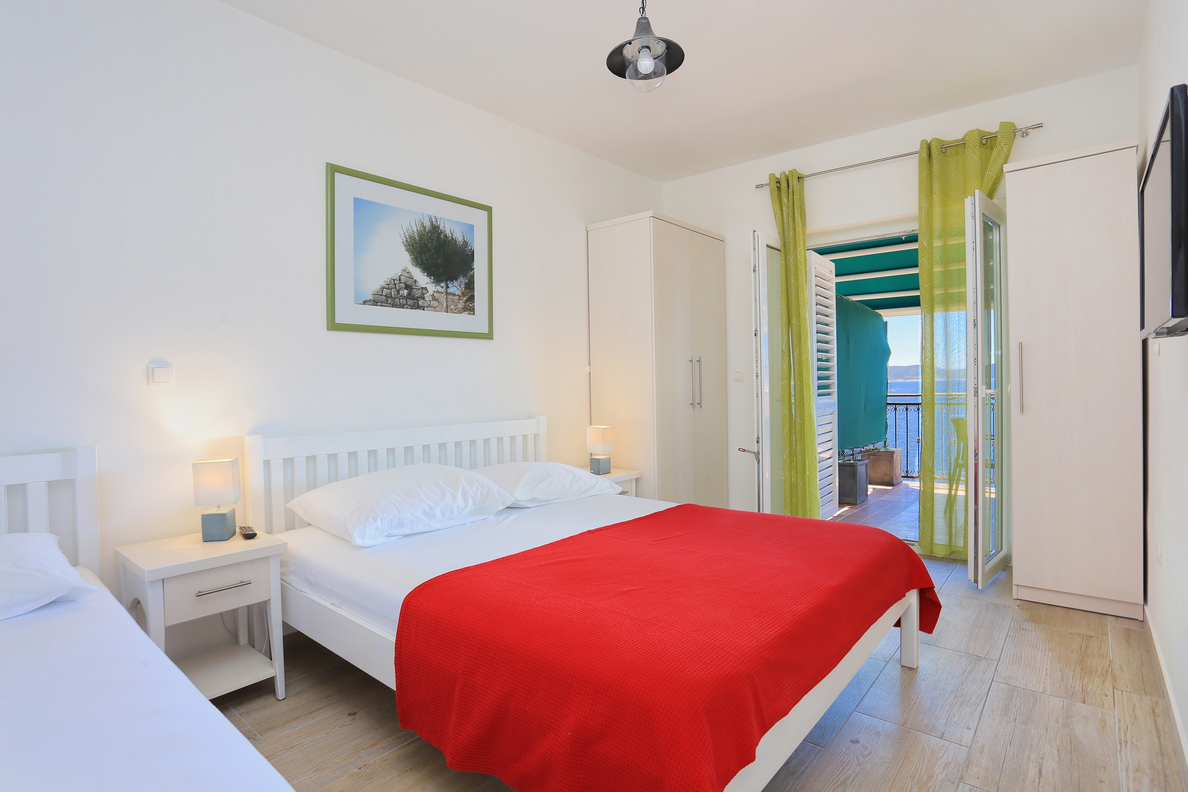 Apartment can accommodate 6 guests. Beds are situated in 2 sleeping rooms, within 47m2. Guests can use a private terrace to enjoy the warm summer evenings. The apartment offers the sea view. INCLUDED IN THE PRICE: tourist tax, final cleaning, air-conditioning, parking, internet, boat mooring, baby cot, iron, ironing board, hairdryer, sunshade, sunchairs. OBLIGATORY ADDITIONAL COSTS: short stay fee (surcharge depending on a number of booked nights: 30% - 1, 20% - 2, 10% - 3). The availability of additional services for your chosen dates of stay, as well as their prices (if none are listed) must be checked ahead of time. Any additional services not shown in the price calculation are payable directly to the property owner and only if used by the visitor. Discounts to the base price: free day 28=25 (for stays of 28 days or more, we give you 3 days free of charge for the stay until 31122026).