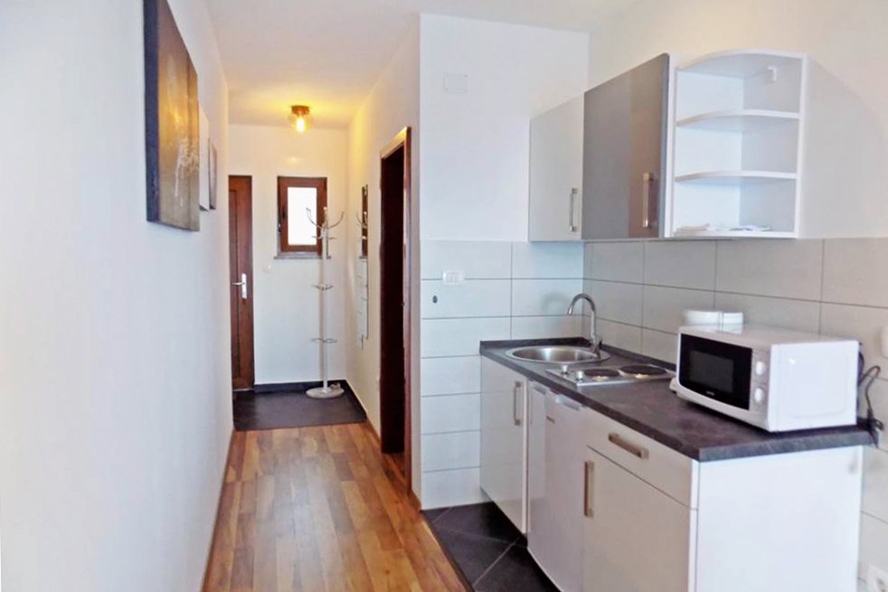 Apartment can accommodate 3 guests. Beds are situated in 1 sleeping rooms, but also in the living room, within 31m2. Guests can use a private terrace to enjoy the warm summer evenings. The apartment offers the sea view. Food can be prepared using barbecue which is shared with other guests too. INCLUDED IN THE PRICE: tourist tax, final cleaning, parking, internet, iron, ironing board, hairdryer, portable barbecue. OBLIGATORY ADDITIONAL COSTS: short stay fee (surcharge depending on a number of booked nights: 30% - 1, 20% - 2, 10% - 3). OPTIONAL ADDITIONAL COSTS: air-conditioning (€7.00 per night). The availability of additional services for your chosen dates of stay, as well as their prices (if none are listed) must be checked ahead of time. Any additional services not shown in the price calculation are payable directly to the property owner and only if used by the visitor.