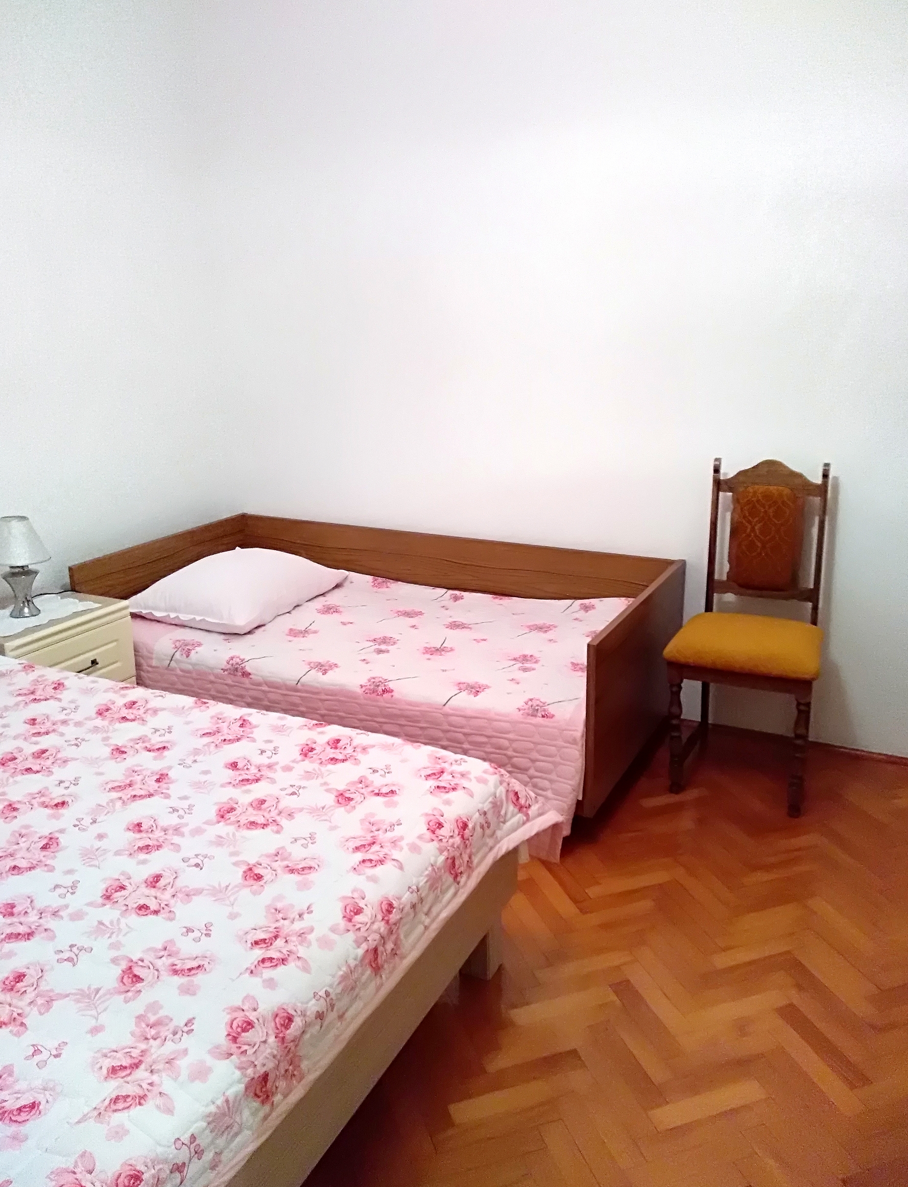 Room can accommodate 2 guests. Beds are situated in 1 sleeping rooms, within 21m2. Use of shared kitchen is possible. Guests can use a private terrace to enjoy the warm summer evenings. The room offers the sea view. Food can be prepared using barbecue which is shared with other guests too. Reserved accommodation unit is a room with its own bathroom and shared kitchen at no additional charge. Some of the rooms of the accommodation unit are not connected with the rest of the unit. INCLUDED IN THE PRICE: tourist tax, final cleaning, air-conditioning, shared kitchen, parking, internet, boat mooring, 1 bed for children (included in the price). OBLIGATORY ADDITIONAL COSTS: short stay fee (surcharge depending on a number of booked nights: 30% - 1, 20% - 2, 10% - 3). The availability of additional services for your chosen dates of stay, as well as their prices (if none are listed) must be checked ahead of time. Any additional services not shown in the price calculation are payable directly to the property owner and only if used by the visitor.