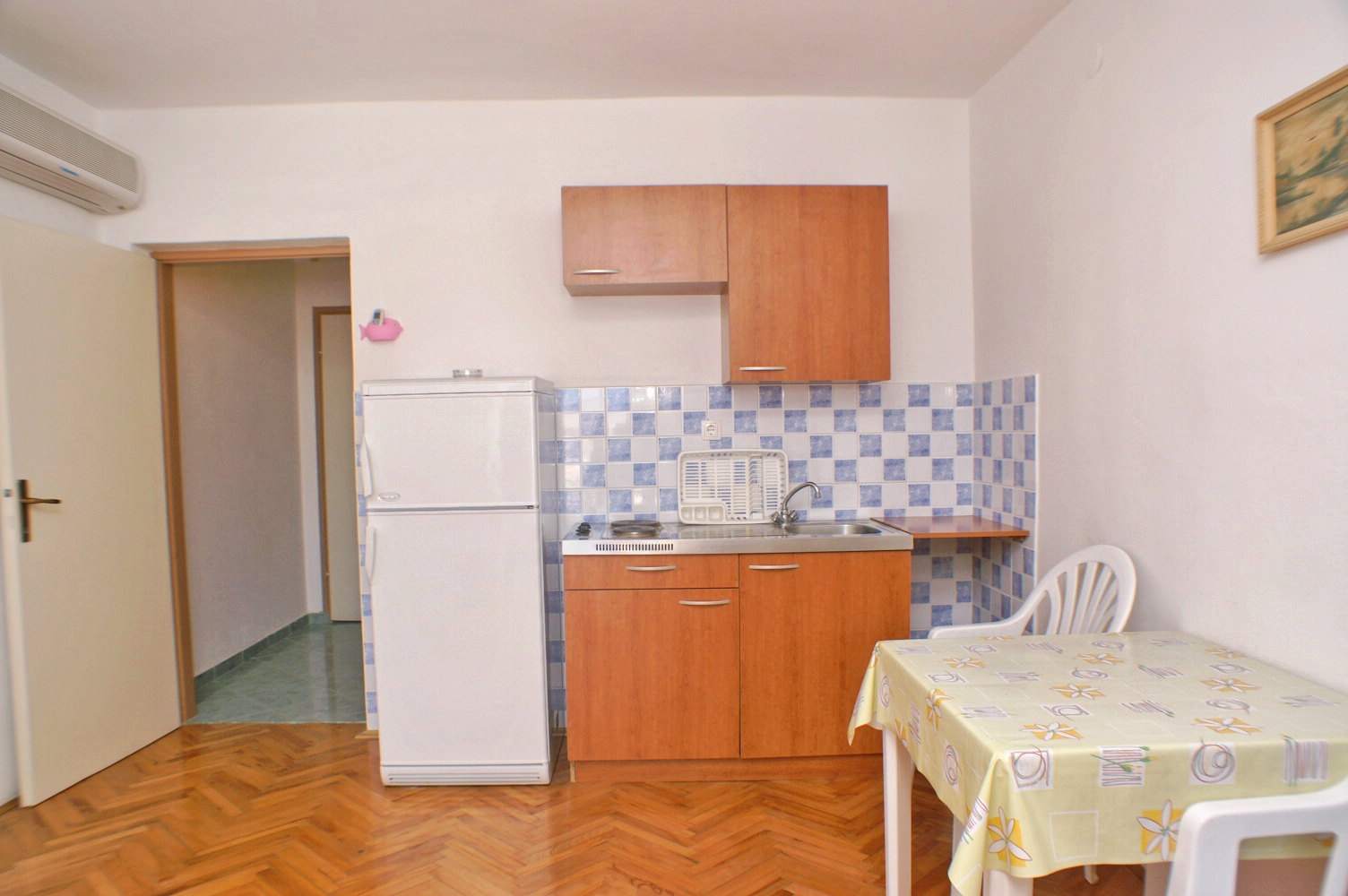 Studio flat can accommodate 4 guests. Beds are situated in 1 sleeping rooms, but also in the dining room, within 32m2. Guests can use a private terrace to enjoy the warm summer evenings. The studio offers the sea view. Food can be prepared using barbecue which is shared with other guests too. This accommodation unit welcomes pets at an additional charge. INCLUDED IN THE PRICE: tourist tax, final cleaning, air-conditioning, parking, internet, laundry, boat mooring, iron, ironing board, hairdryer. OBLIGATORY ADDITIONAL COSTS: short stay fee (surcharge depending on a number of booked nights: 30% - 1, 20% - 2, 10% - 3). OPTIONAL ADDITIONAL COSTS: pets (€5.00 per night), additional bed (€7.00 per night). The availability of additional services for your chosen dates of stay, as well as their prices (if none are listed) must be checked ahead of time. Any additional services not shown in the price calculation are payable directly to the property owner and only if used by the visitor.
