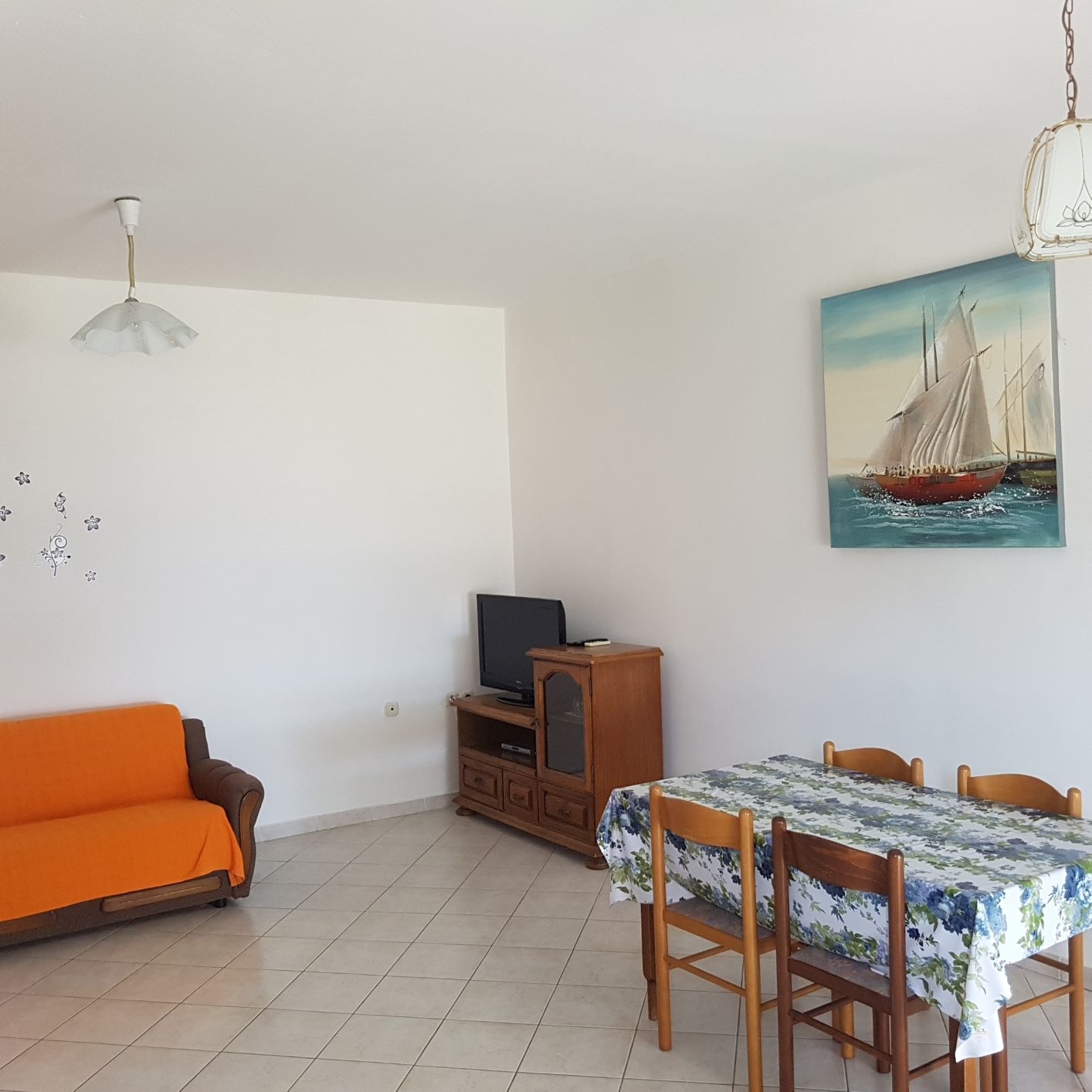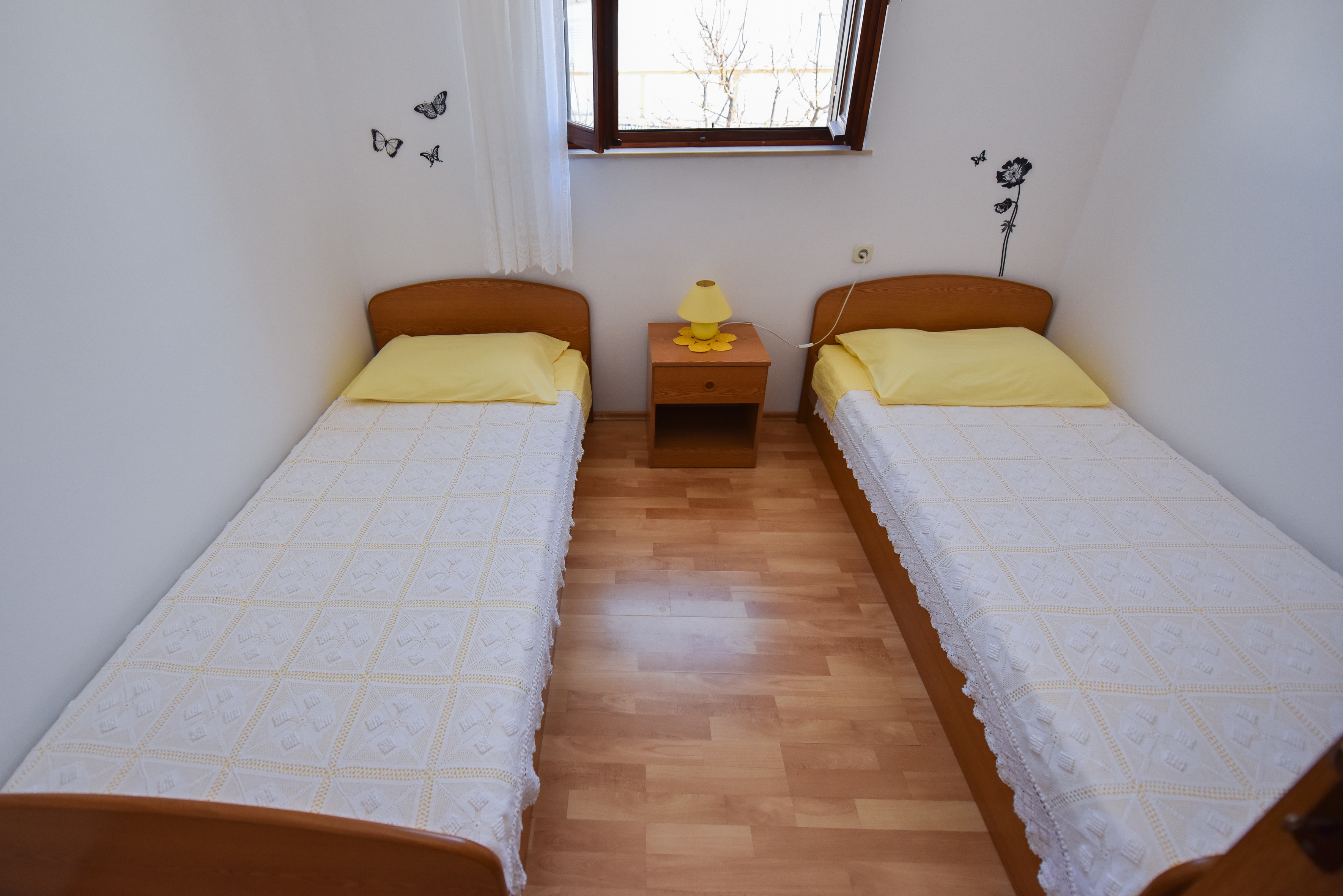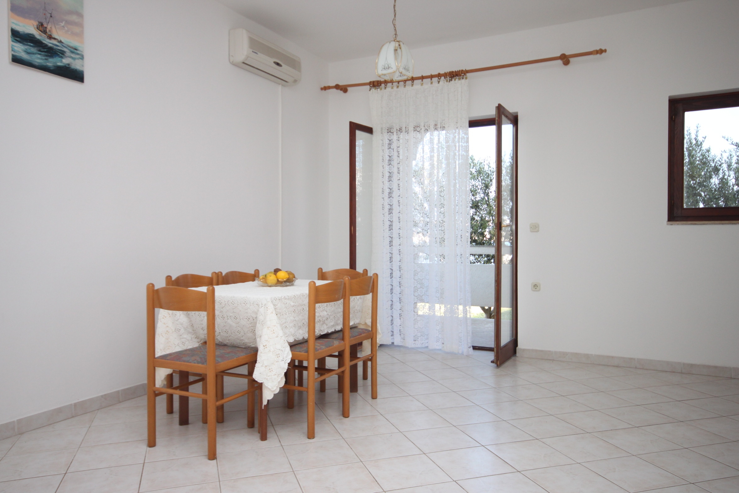 Apartment can accommodate 4 guests. Beds are situated in 2 sleeping rooms, within 56m2. Guests can use a private terrace to enjoy the warm summer evenings. The apartment offers the sea view. Food can be prepared using barbecue which is shared with other guests too. This accommodation unit welcomes pets at an additional charge. INCLUDED IN THE PRICE: final cleaning, air-conditioning, parking, internet, boat mooring, iron, ironing board, hairdryer, 2 beds for children (included in the price). OBLIGATORY ADDITIONAL COSTS: tourist tax (adults €0.93 - €1.60 nightperson, discount for children aged 12 - 17), short stay fee (surcharge depending on a number of booked nights: 30% - 1, 20% - 2, 10% - 3). OPTIONAL ADDITIONAL COSTS: laundry (€5.00 washing), pets (€5.00 per night), additional bed (€5.00 per night). The availability of additional services for your chosen dates of stay, as well as their prices (if none are listed) must be checked ahead of time. Any additional services not shown in the price calculation are payable directly to the property owner and only if used by the visitor.