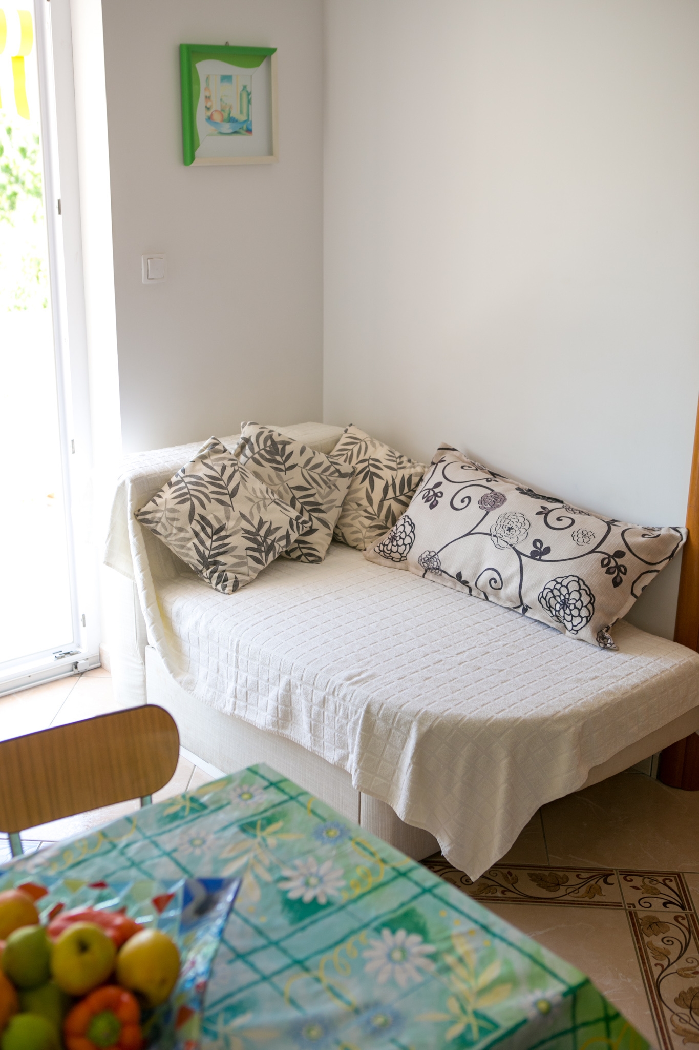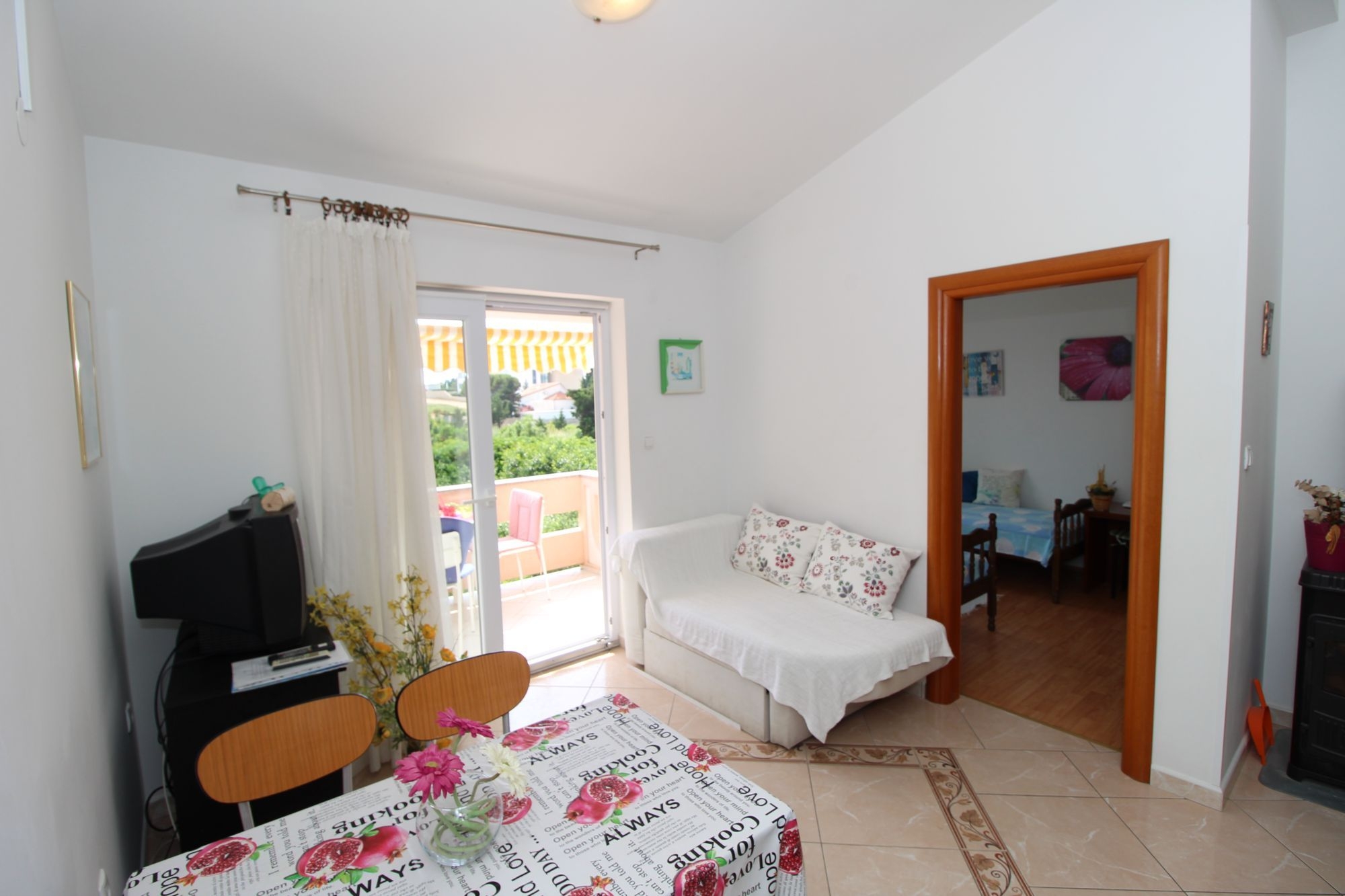 Apartment can accommodate 5 guests. Beds are situated in 2 sleeping rooms, but also in the dining room, within 39m2. Guests can use a private terrace to enjoy the warm summer evenings. Food can be prepared using barbecue which is shared with other guests too. This accommodation unit welcomes pets at an additional charge. For the booked accommodation unit the deposit is paid directly to the owner upon check-in (deposit amount is displayed on the website) INCLUDED IN THE PRICE: tourist tax, final cleaning, air-conditioning, parking, internet, baby cot, iron, ironing board, hairdryer. OBLIGATORY ADDITIONAL COSTS: deposit (€200.00 one-time payment), short stay fee (surcharge depending on a number of booked nights: 30% - 1, 20% - 2, 10% - 3). OPTIONAL ADDITIONAL COSTS: laundry (€10.00 washing), pets (€10.00 per night). The availability of additional services for your chosen dates of stay, as well as their prices (if none are listed) must be checked ahead of time. Any additional services not shown in the price calculation are payable directly to the property owner and only if used by the visitor. Discounts to the base price: free day 28=25 (for stays of 28 days or more, we give you 3 days free of charge for the stay until 31122026).
