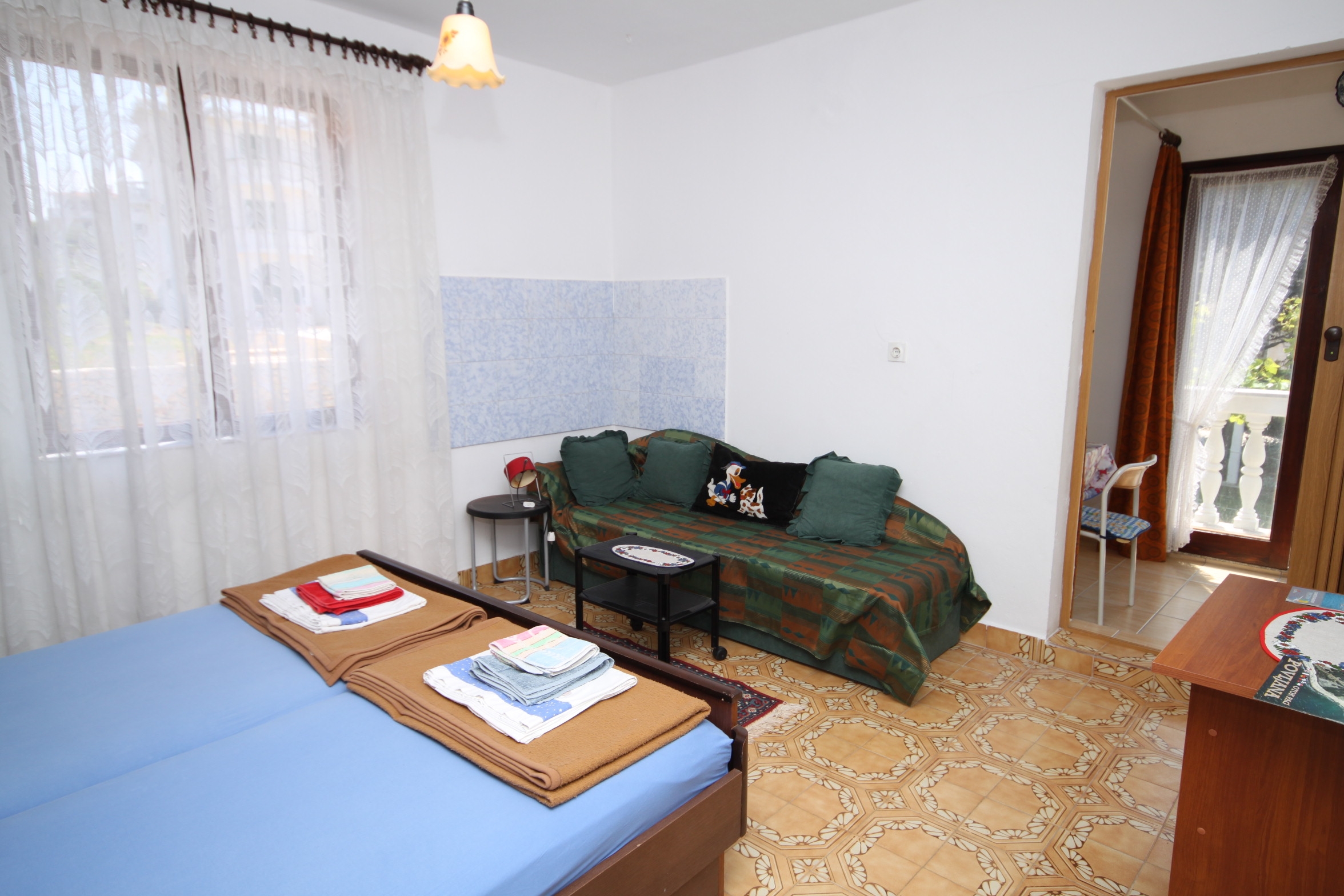 Apartment can accommodate 4 guests. Beds are situated in 1 sleeping rooms, but also in the dining room, within 28m2. Guests can use a private balcony to enjoy the warm summer evenings. The apartment offers the sea view. Food can be prepared using barbecue which is shared with other guests too. This accommodation unit welcomes pets at an additional charge. INCLUDED IN THE PRICE: tourist tax, final cleaning, parking, internet, baby cot, ironing board, hairdryer, portable barbecue. OPTIONAL ADDITIONAL COSTS: air-conditioning (€5.00 per night), laundry (€5.00 washing), pets (€5.00 per night), 2 beds for children (€10.00 personnight). The availability of additional services for your chosen dates of stay, as well as their prices (if none are listed) must be checked ahead of time. Any additional services not shown in the price calculation are payable directly to the property owner and only if used by the visitor.