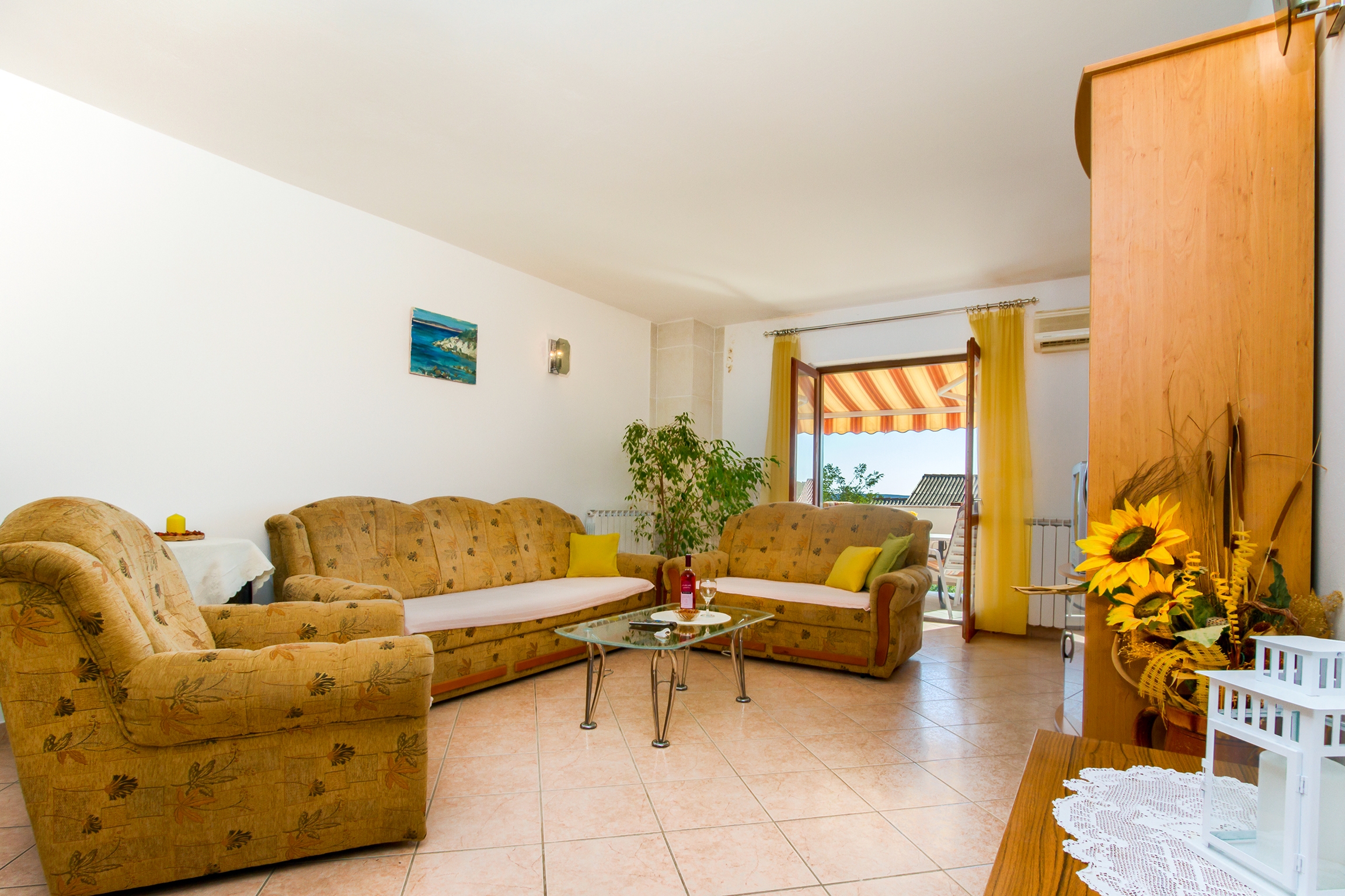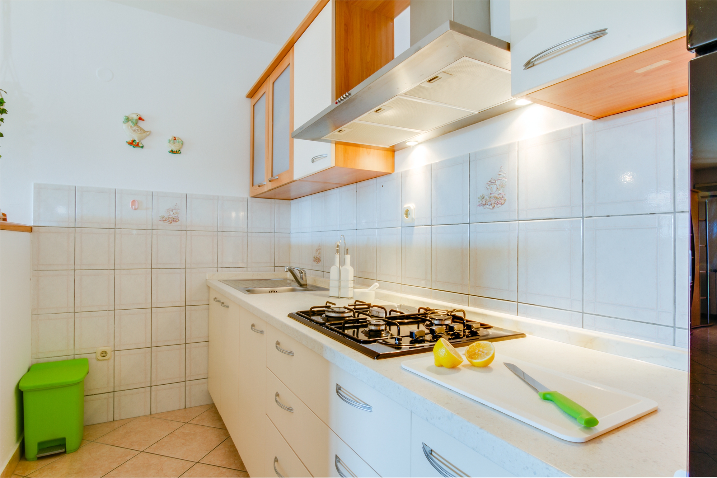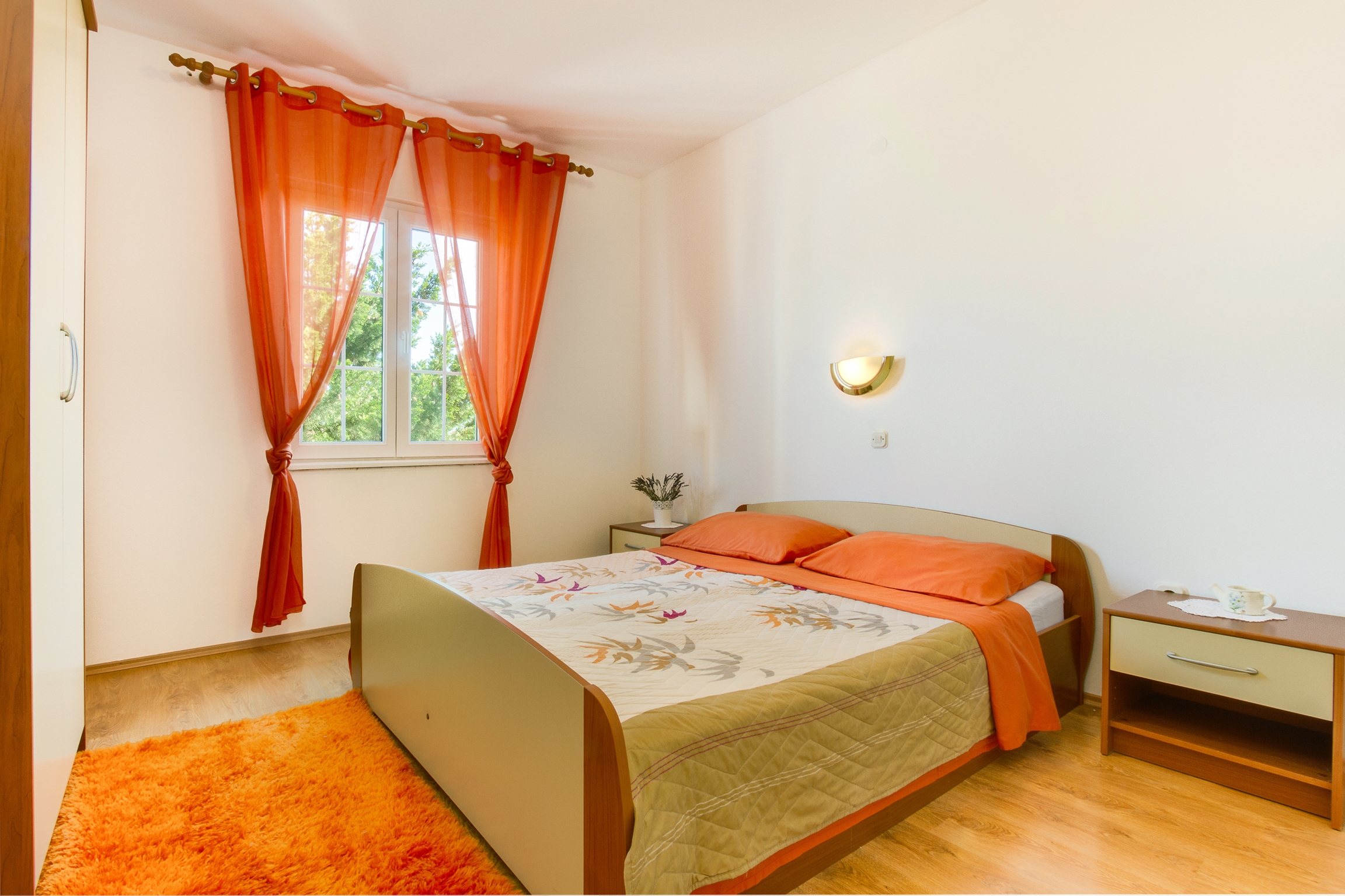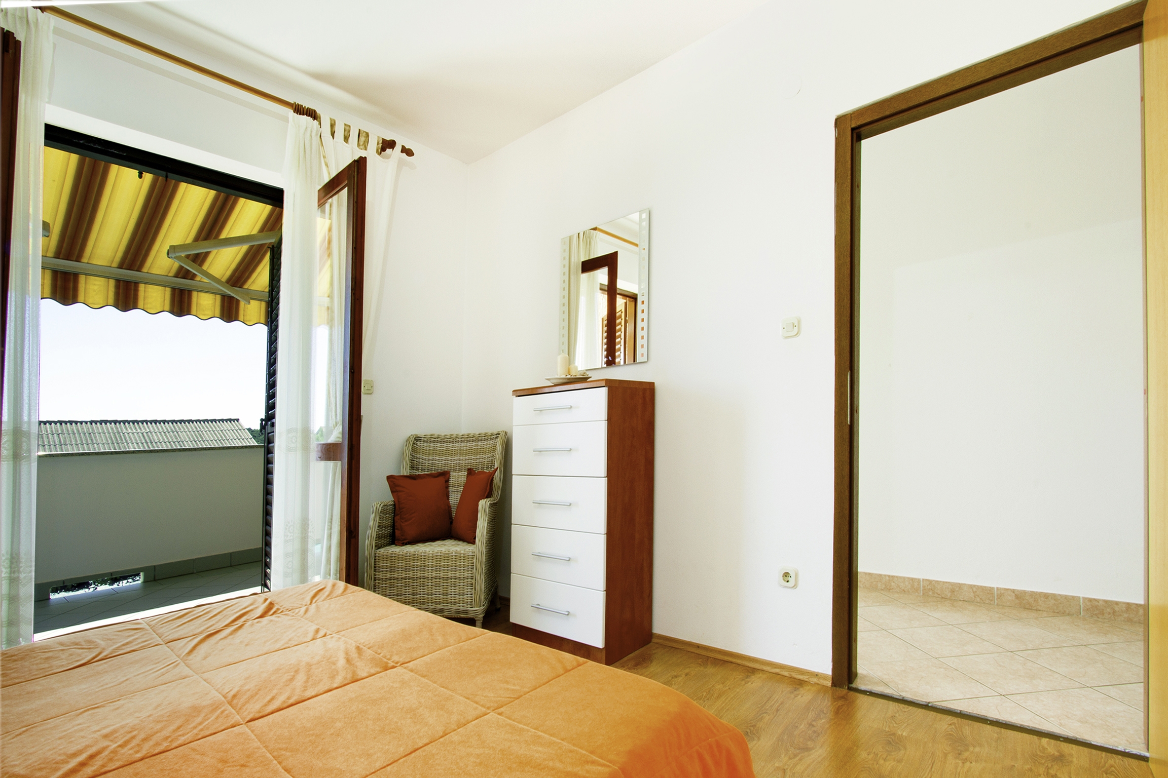 Apartment can accommodate 4 guests. Beds are situated in 2 sleeping rooms, within 77m2. Guests can use a private terrace to enjoy the warm summer evenings. The apartment offers the sea view. Food can be prepared using barbecue which is shared with other guests too. This accommodation unit welcomes pets at an additional charge. INCLUDED IN THE PRICE: tourist tax, final cleaning, air-conditioning, central heating, parking, internet, baby cot, hairdryer. OBLIGATORY ADDITIONAL COSTS: short stay fee (surcharge depending on a number of booked nights: 30% - 1, 20% - 2, 10% - 3). OPTIONAL ADDITIONAL COSTS: pets (€9.00 per night), additional bed (€12.00 per night). The availability of additional services for your chosen dates of stay, as well as their prices (if none are listed) must be checked ahead of time. Any additional services not shown in the price calculation are payable directly to the property owner and only if used by the visitor.