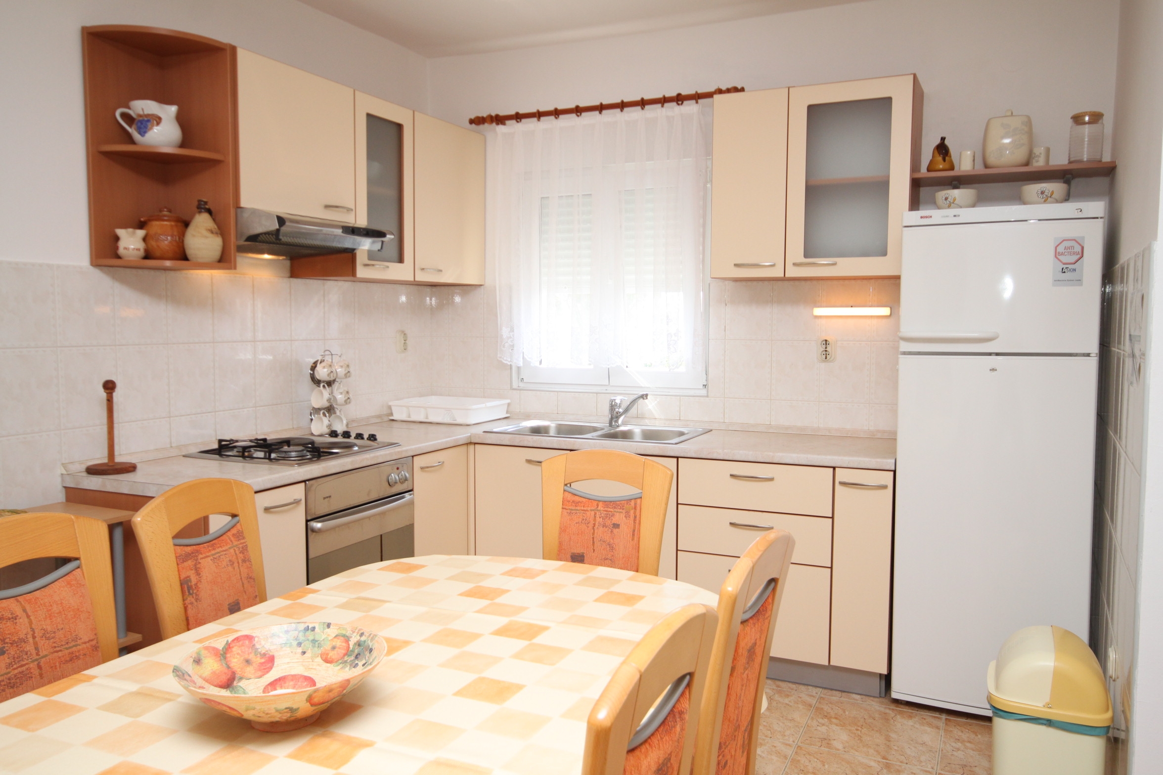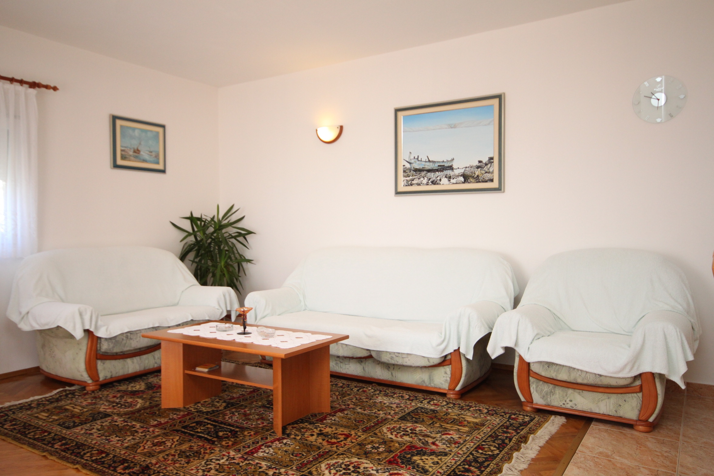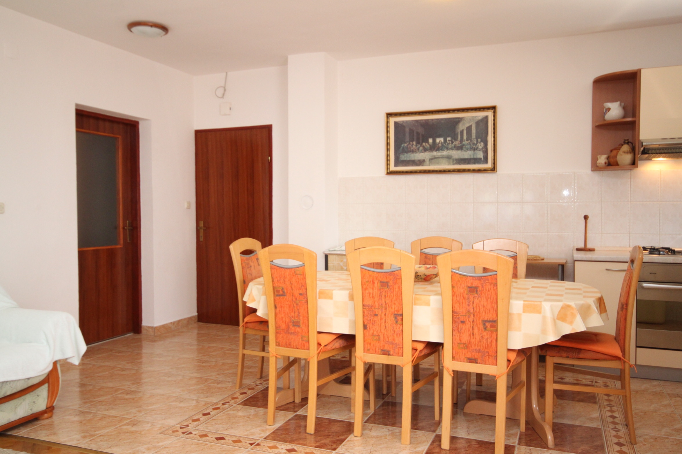 Apartment can accommodate 8 guests. Beds are situated in 3 sleeping rooms, within 87m2. Guests can use a private terrace to enjoy the warm summer evenings. The apartment offers the sea view. Food can be prepared using barbecue which is shared with other guests too. INCLUDED IN THE PRICE: tourist tax, final cleaning, parking, internet, baby cot, iron, ironing board, hairdryer. OPTIONAL ADDITIONAL COSTS: air-conditioning (€7.00 per night), laundry (€5.00 washing). The availability of additional services for your chosen dates of stay, as well as their prices (if none are listed) must be checked ahead of time. Any additional services not shown in the price calculation are payable directly to the property owner and only if used by the visitor.