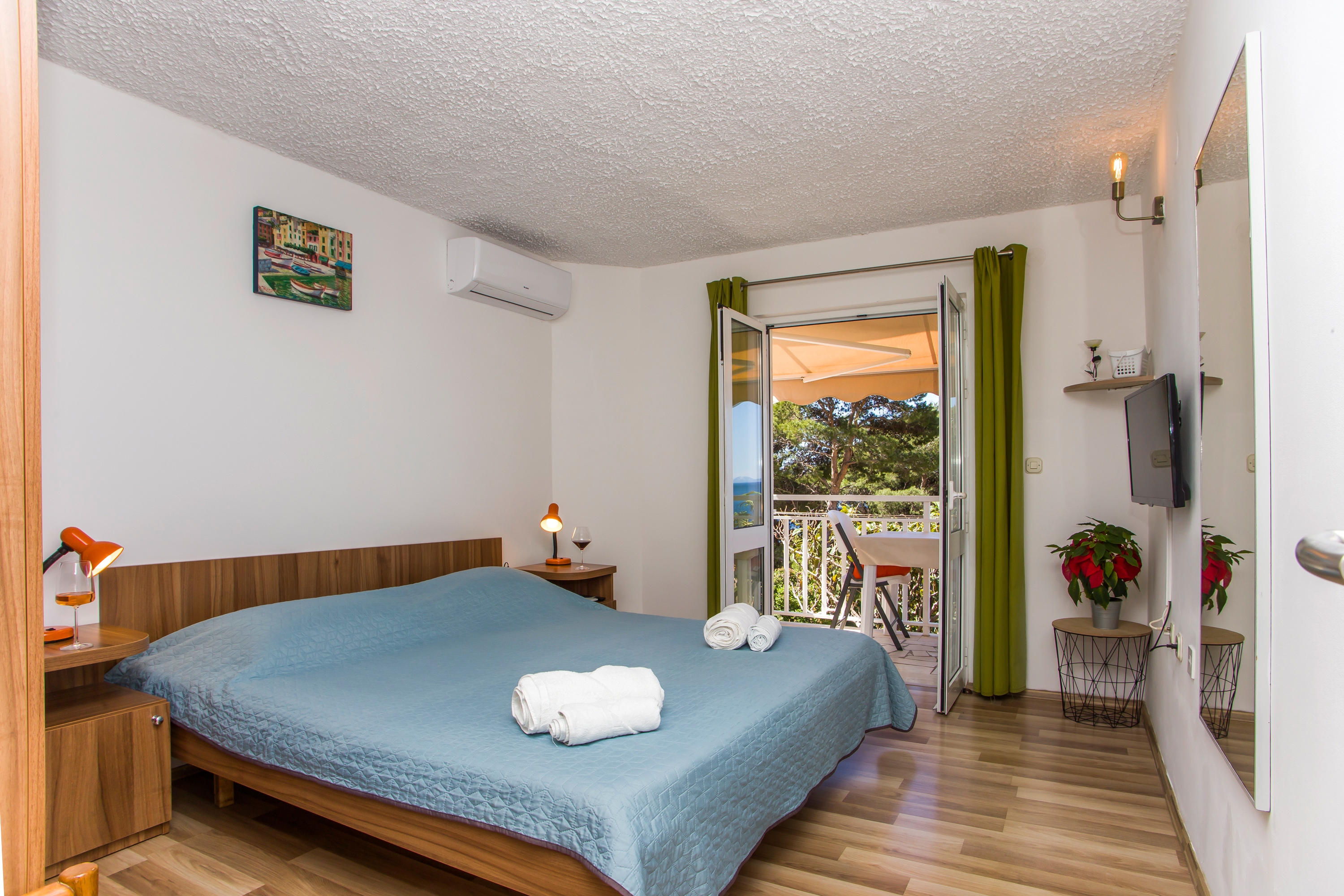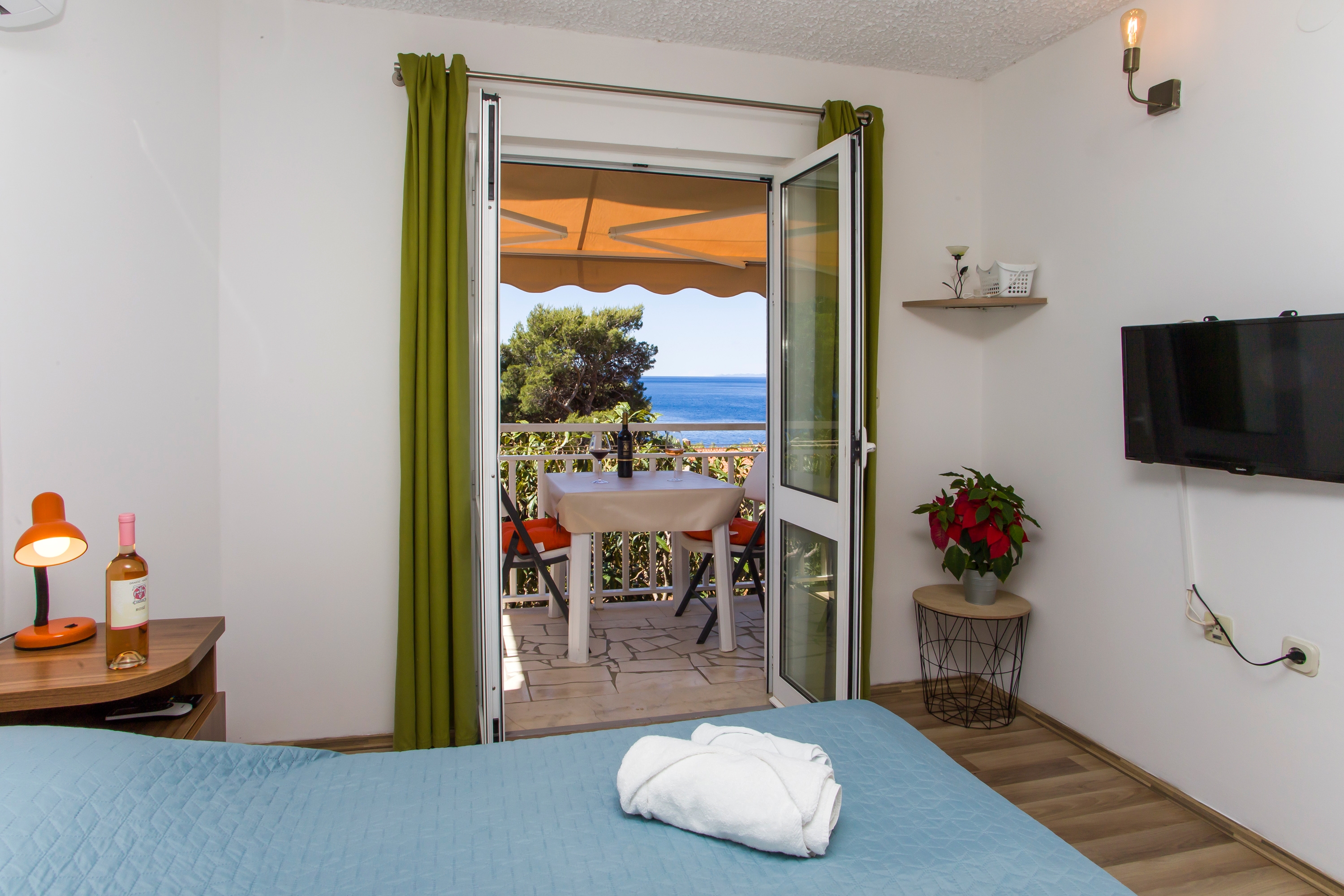 Apartment can accommodate 3 guests. Beds are situated in 1 sleeping rooms, but also in the dining room, within 30m2. Guests can use a private balcony to enjoy the warm summer evenings. The apartment offers the sea view. Food can be prepared using barbecue which is shared with other guests too. INCLUDED IN THE PRICE: tourist tax, final cleaning, air-conditioning, parking, internet, boat mooring, baby cot, sunchairs. OBLIGATORY ADDITIONAL COSTS: short stay fee (surcharge depending on a number of booked nights: 30% - 1, 20% - 2, 10% - 3). OPTIONAL ADDITIONAL COSTS: laundry (€3.00 washing). The availability of additional services for your chosen dates of stay, as well as their prices (if none are listed) must be checked ahead of time. Any additional services not shown in the price calculation are payable directly to the property owner and only if used by the visitor. Discounts to the base price: free day 14=13 (for reservations of 14 or more days you get one free day for the stay until 31122026).