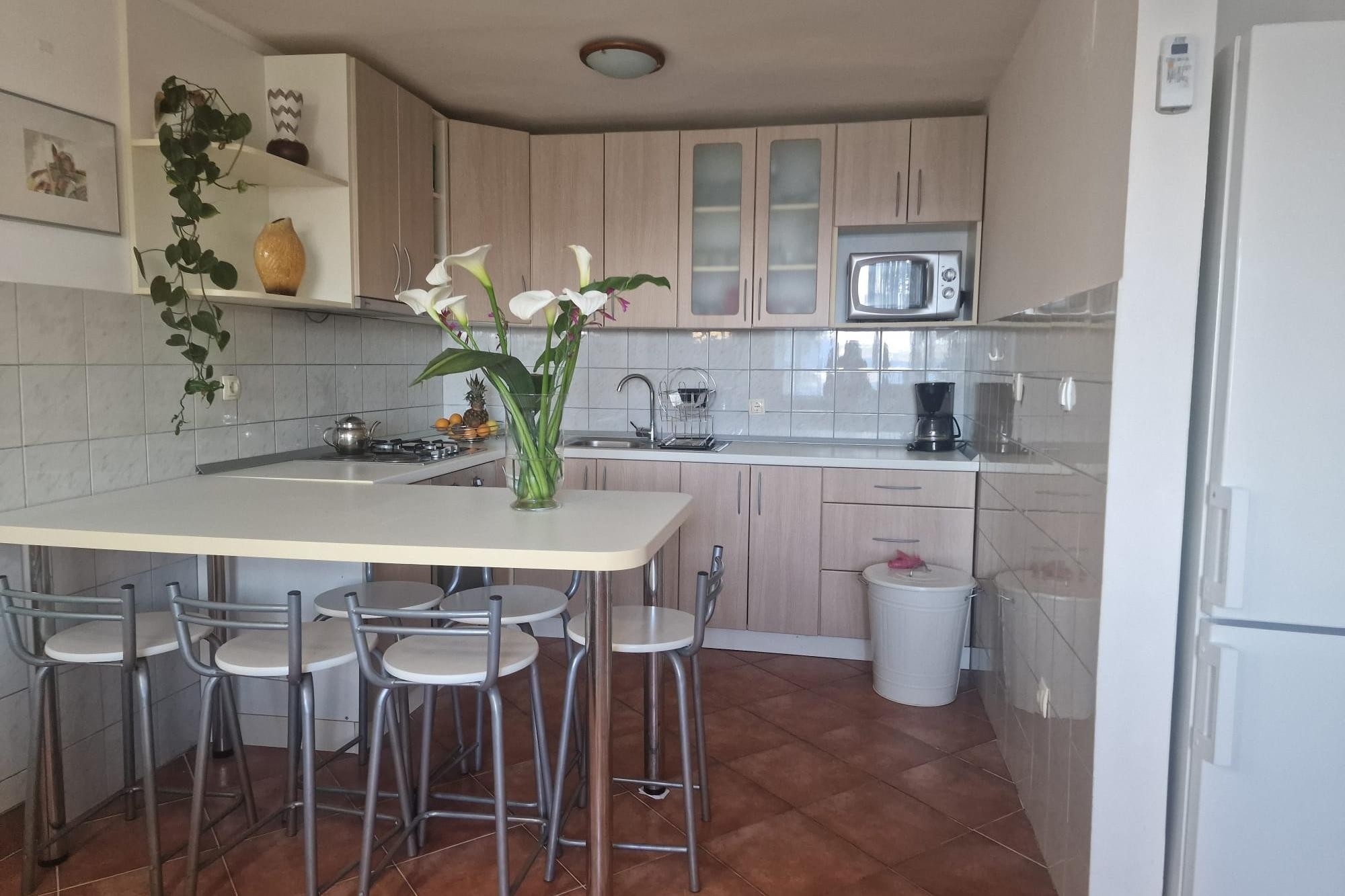 Apartment can accommodate 4 guests. Beds are situated in 3 sleeping rooms, within 75m2. Guests can use a private terrace to enjoy the warm summer evenings. The apartment offers the sea view. Food can be prepared using barbecue which is shared with other guests too. This accommodation unit welcomes pets at an additional charge. INCLUDED IN THE PRICE: tourist tax, final cleaning, air-conditioning, parking, internet, boat mooring, iron, ironing board, hairdryer, sunshade, sunchairs. OBLIGATORY ADDITIONAL COSTS: short stay fee (surcharge depending on a number of booked nights: 30% - 1, 20% - 2, 10% - 3). OPTIONAL ADDITIONAL COSTS: laundry (€5.00 washing), pets (€3.00 per night), 2 beds for children (€10.00 personnight). The availability of additional services for your chosen dates of stay, as well as their prices (if none are listed) must be checked ahead of time. Any additional services not shown in the price calculation are payable directly to the property owner and only if used by the visitor. Discounts to the base price: free day 14=13 (for reservations of 14 or more days you get one free day for the stay until 31122026).