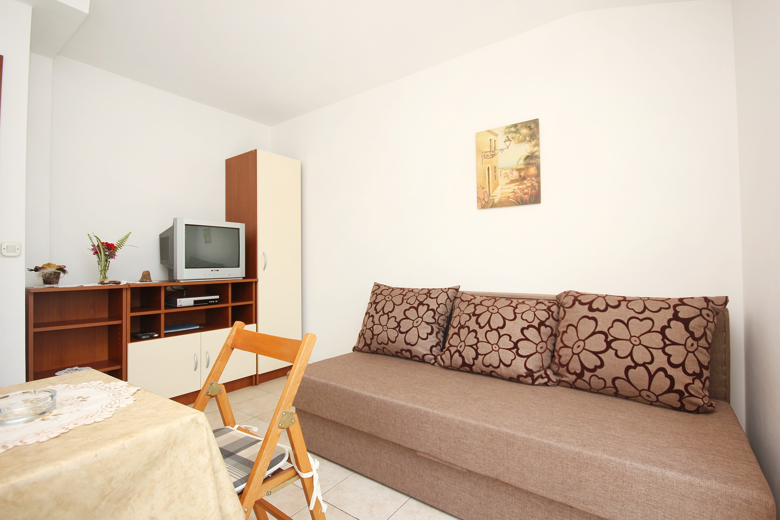 Apartment can accommodate 3 guests. Beds are situated in 1 sleeping rooms, but also in the dining room, within 28m2. Guests can use a private balcony to enjoy the warm summer evenings. The apartment offers the sea view. Food can be prepared using barbecue which is shared with other guests too. INCLUDED IN THE PRICE: tourist tax, final cleaning, air-conditioning, parking, internet, iron, ironing board, hairdryer. OBLIGATORY ADDITIONAL COSTS: short stay fee (surcharge depending on a number of booked nights: 30% - 1, 20% - 2, 10% - 3). The availability of additional services for your chosen dates of stay, as well as their prices (if none are listed) must be checked ahead of time. Any additional services not shown in the price calculation are payable directly to the property owner and only if used by the visitor.