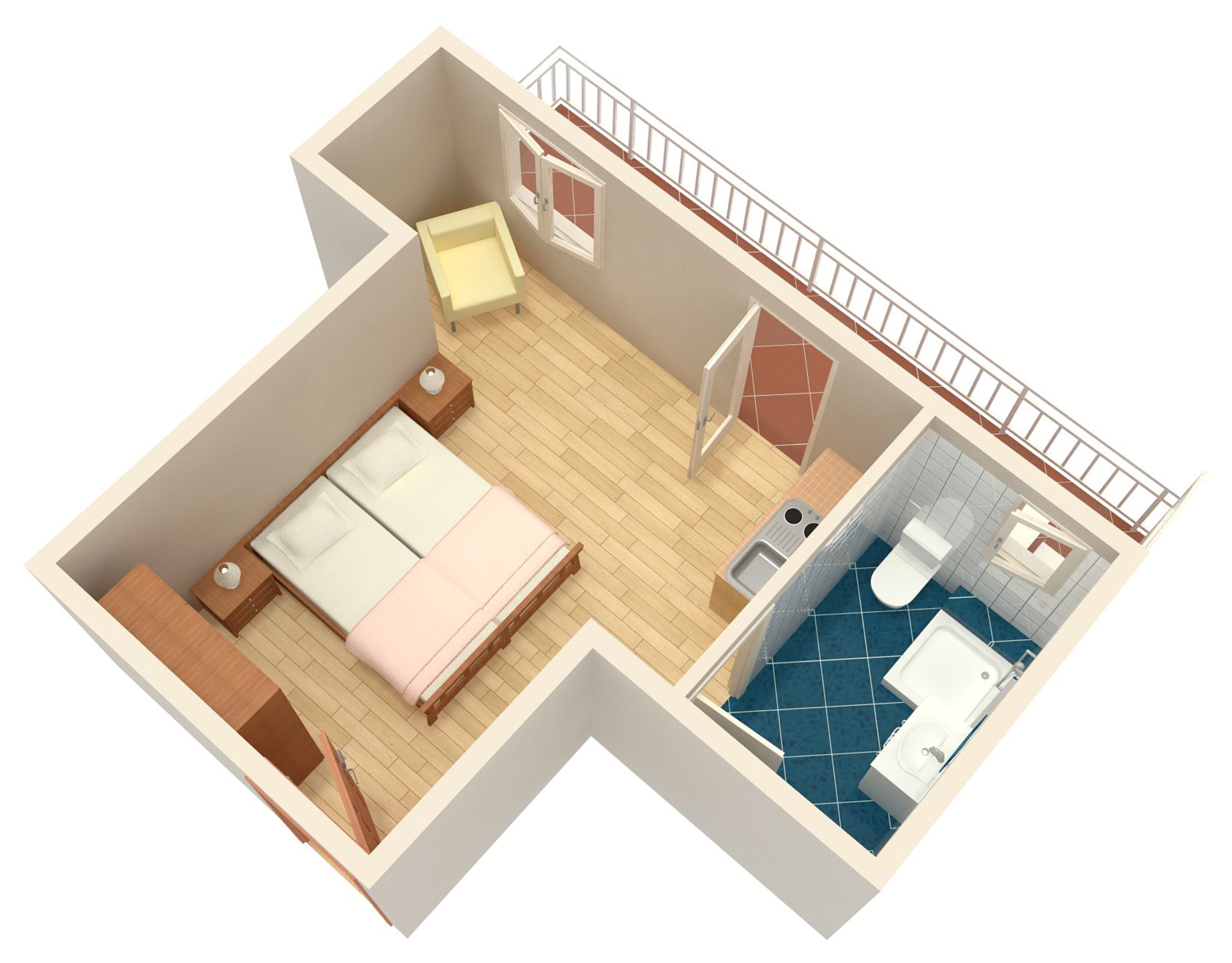Studio flat can accommodate 2 guests. Beds are situated in 1 sleeping rooms, within 22m2. Guests can use a private balcony to enjoy the warm summer evenings. The studio offers the sea view. Food can be prepared using barbecue which is shared with other guests too. This accommodation unit welcomes pets at an additional charge. INCLUDED IN THE PRICE: tourist tax, final cleaning, air-conditioning, parking, internet, baby cot, iron, ironing board, hairdryer, portable barbecue. OBLIGATORY ADDITIONAL COSTS: short stay fee (surcharge depending on a number of booked nights: 30% - 1, 20% - 2, 10% - 3). OPTIONAL ADDITIONAL COSTS: laundry (€5.00 washing), boat mooring (€3.00 per night), pets (€10.00 per night), 1 bed for children (€6.00 personnight). The availability of additional services for your chosen dates of stay, as well as their prices (if none are listed) must be checked ahead of time. Any additional services not shown in the price calculation are payable directly to the property owner and only if used by the visitor.