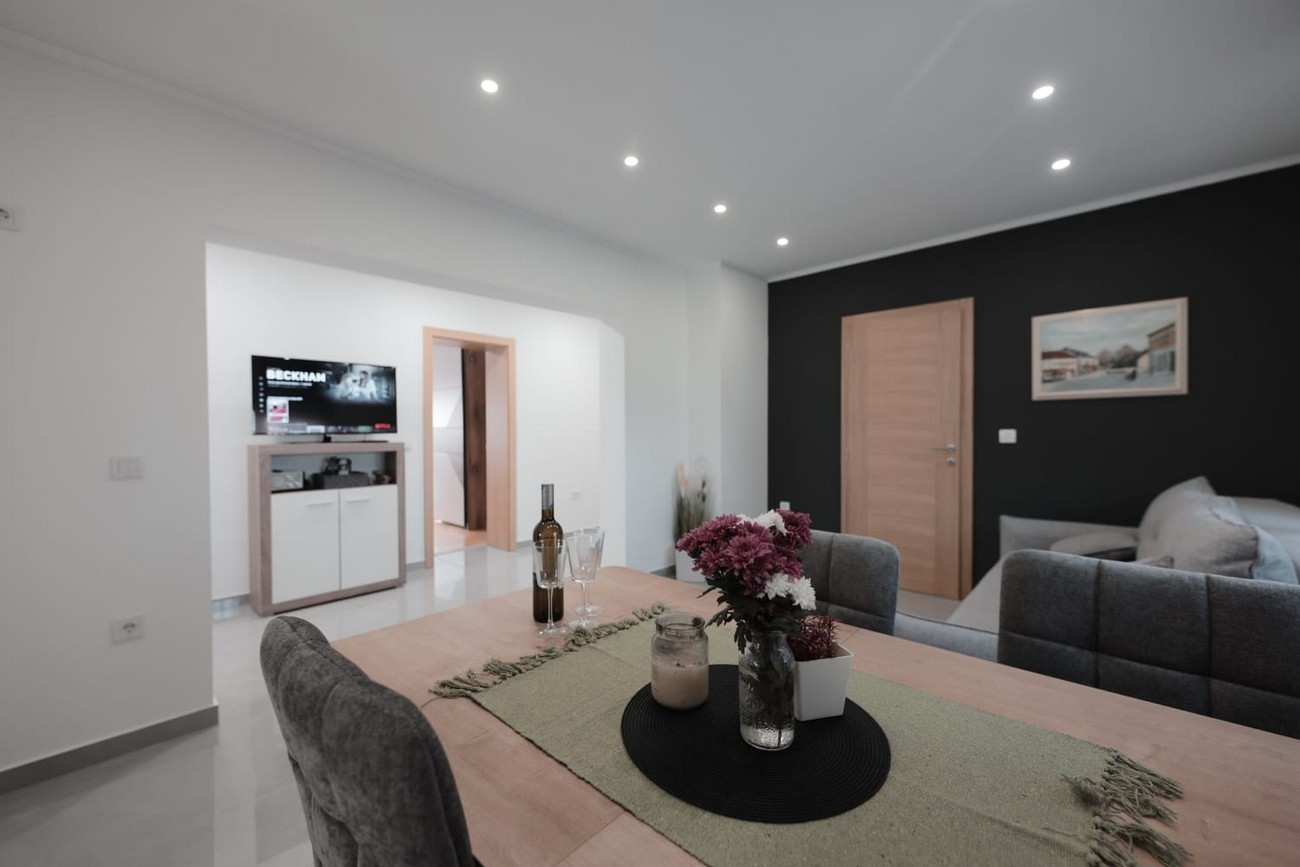Apartment can accommodate 4 guests. Beds are situated in 1 sleeping rooms, but also in the living room, within 67m2. For full enjoyment and relaxation there is a private barbecue for this accommodation guests only. There is no balcony or terrace in the reserved accommodation unit. INCLUDED IN THE PRICE: tourist tax, final cleaning, air-conditioning, central heating, parking, internet, baby cot, iron, ironing board, hairdryer. The availability of additional services for your chosen dates of stay, as well as their prices (if none are listed) must be checked ahead of time. Any additional services not shown in the price calculation are payable directly to the property owner and only if used by the visitor. Discounts to the base price: free day 14=13 (for reservations of 14 or more days you get one free day for the stay until 31122026).