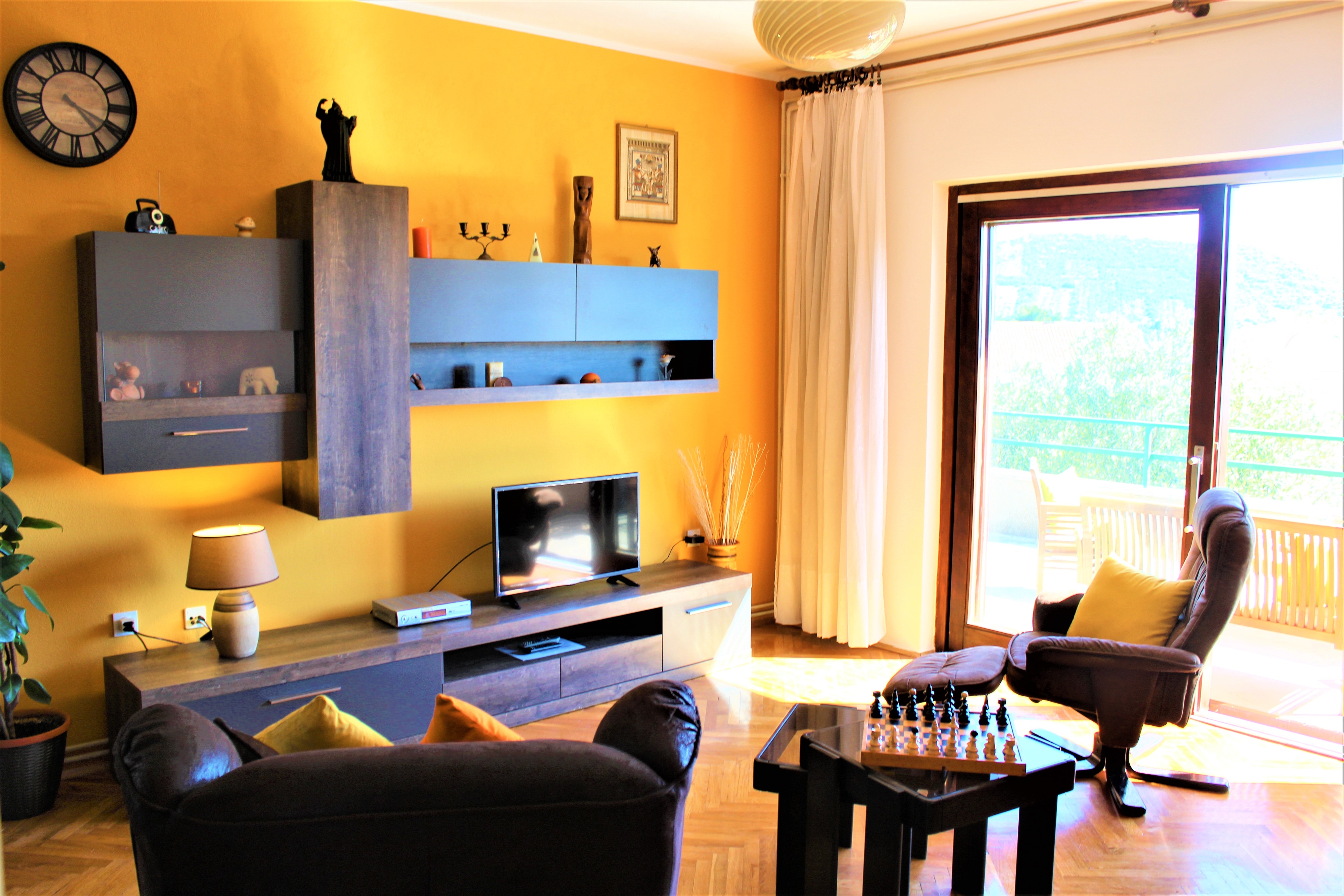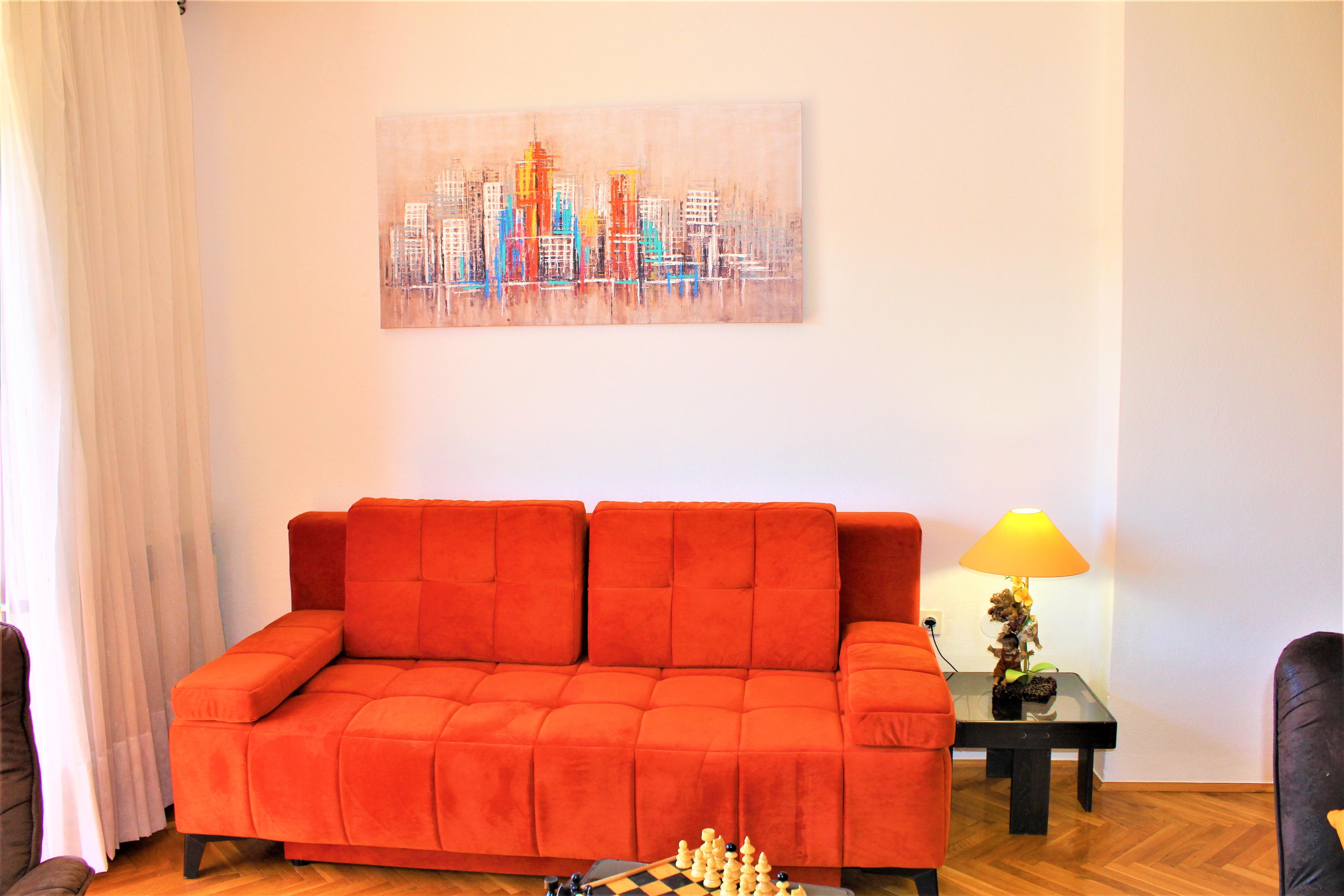 Apartment can accommodate 4 guests. Beds are situated in 1 sleeping rooms, but also in the living room, within 72m2. Guests can use a private terrace to enjoy the warm summer evenings. The apartment offers the sea view. Food can be prepared using barbecue which is shared with other guests too. This accommodation unit welcomes pets at an additional charge. INCLUDED IN THE PRICE: tourist tax, final cleaning, air-conditioning, parking, internet, baby cot, iron, ironing board, hairdryer. OBLIGATORY ADDITIONAL COSTS: short stay fee (surcharge depending on a number of booked nights: 30% - 1, 20% - 2, 10% - 3). OPTIONAL ADDITIONAL COSTS: pets (€10.00 per night). The availability of additional services for your chosen dates of stay, as well as their prices (if none are listed) must be checked ahead of time. Any additional services not shown in the price calculation are payable directly to the property owner and only if used by the visitor.