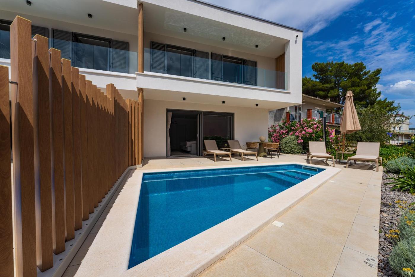 Villa with Private Pool. The private pool is the standout feature of this villa. Boasting a private entrance, this air-conditioned villa includes 1 living room, 3 separate bedrooms and 2 bathrooms with a walk-in shower and a hairdryer. In the fully equipped kitchen, guests will find a refrigerator, a dishwasher, kitchenware and an oven. Featuring a terrace with sea views, this villa also offers a washing machine and a flat-screen TV with streaming services. The unit has 3 beds. ;