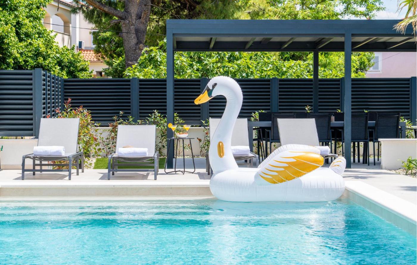 Boasting air-conditioned accommodation with a private pool, Cozy Home In Privlaka With Sauna is situated in Privlaka. This property offers access to a terrace, free private parking and free WiFi. Guests have access to a sauna and hot tub.