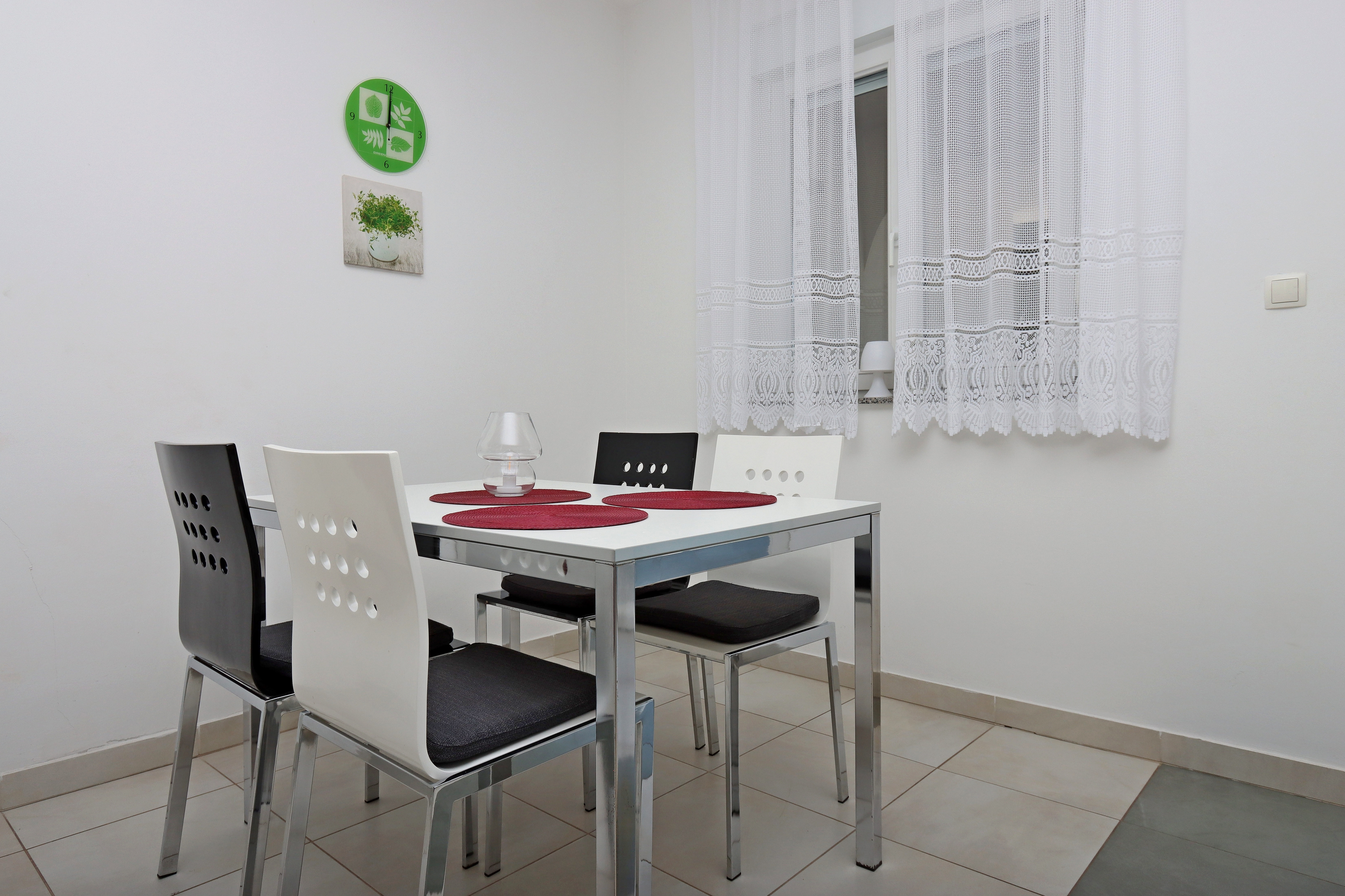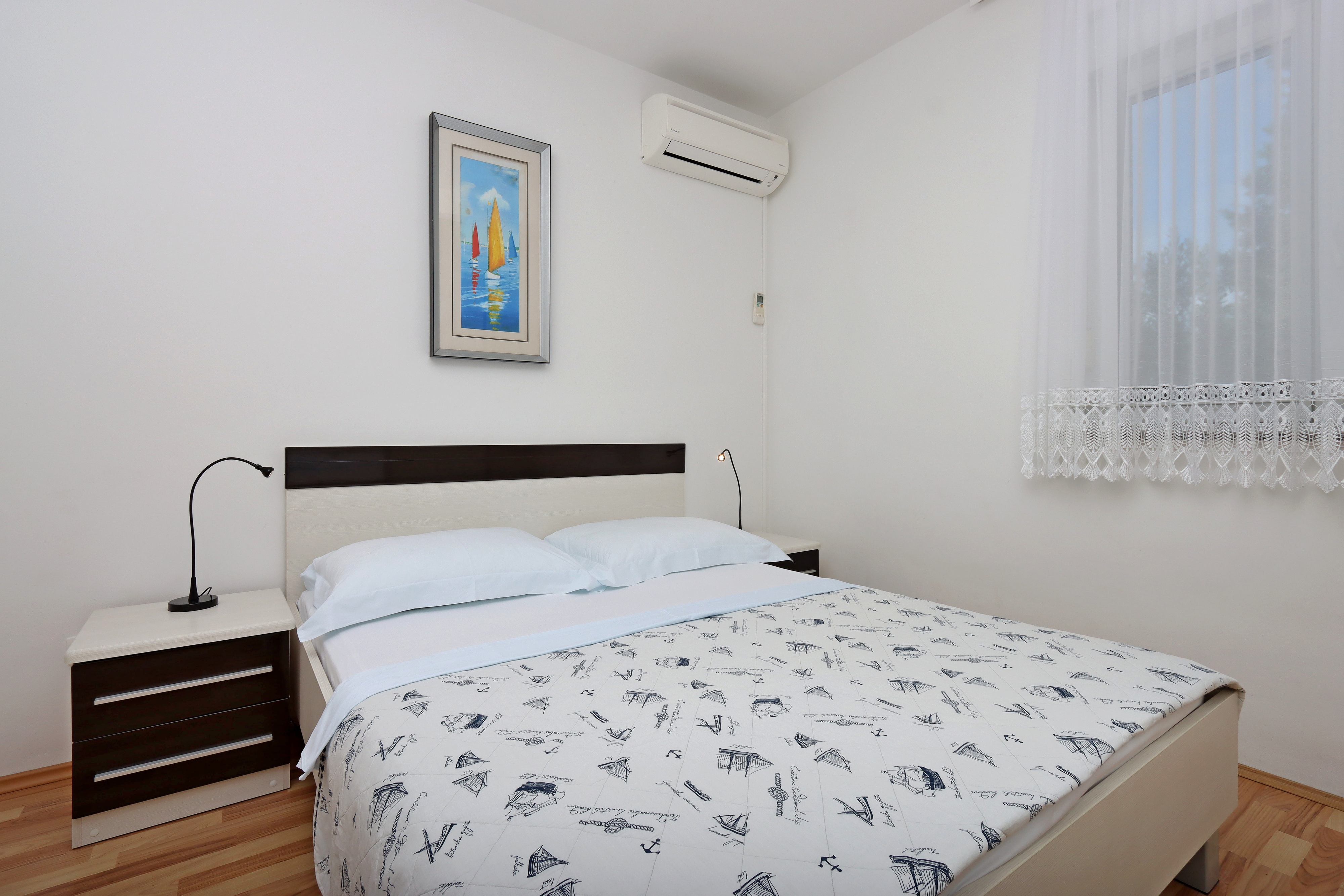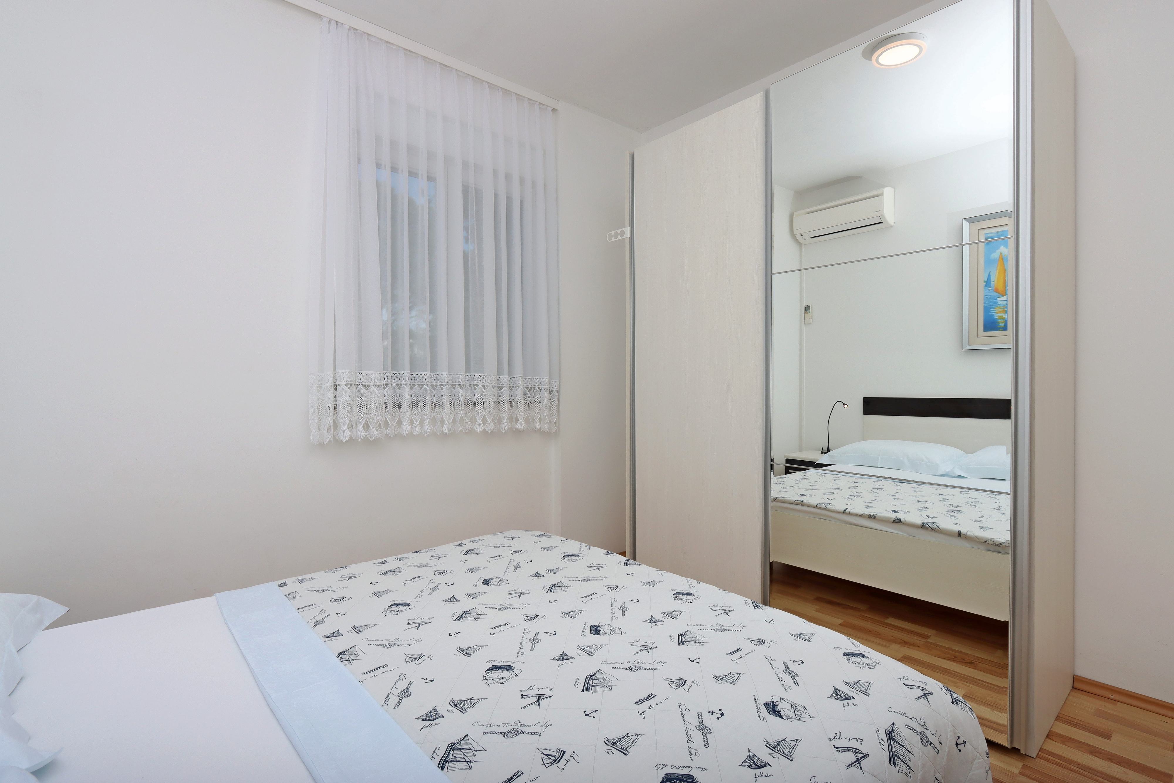 Apartment can accommodate 4 guests. Beds are situated in 2 sleeping rooms, within 50m2. Guests can use a private terrace to enjoy the warm summer evenings. Food can be prepared using barbecue which is shared with other guests too. For the booked accommodation unit the deposit is paid directly to the owner upon check-in (deposit amount is displayed on the website) INCLUDED IN THE PRICE: tourist tax, final cleaning, parking, internet, baby cot, portable barbecue. OBLIGATORY ADDITIONAL COSTS: deposit (€100.00 one-time payment), short stay fee (surcharge depending on a number of booked nights: 30% - 1, 20% - 2, 10% - 3). OPTIONAL ADDITIONAL COSTS: air-conditioning (€5.00 per night), laundry (€5.00 washing), boat mooring (€5.00 per night). The availability of additional services for your chosen dates of stay, as well as their prices (if none are listed) must be checked ahead of time. Any additional services not shown in the price calculation are payable directly to the property owner and only if used by the visitor.